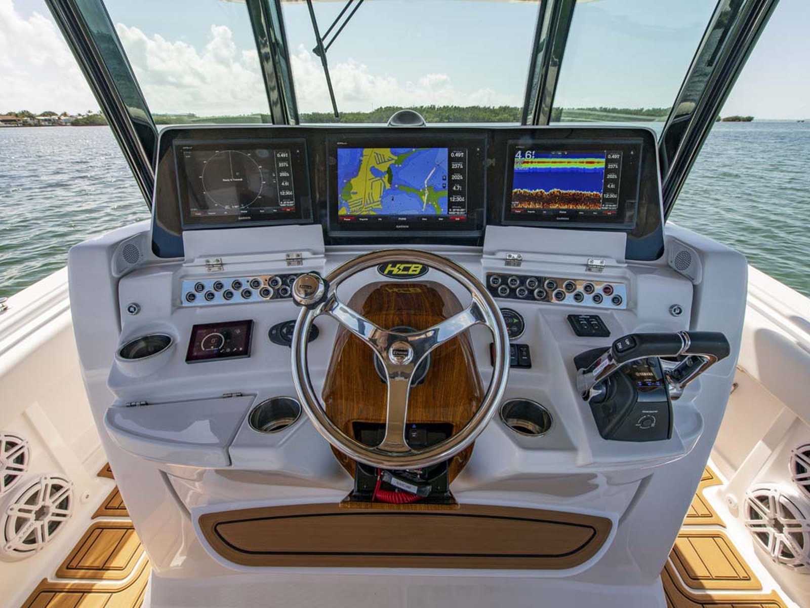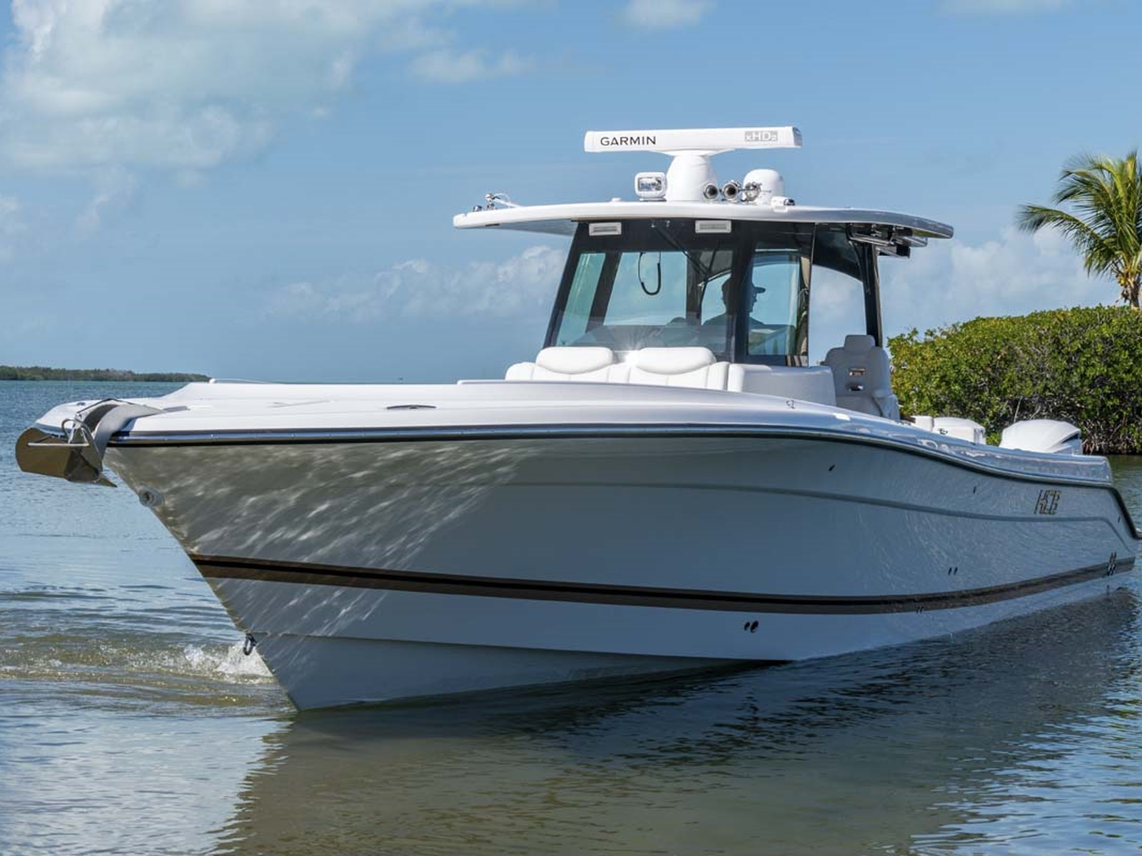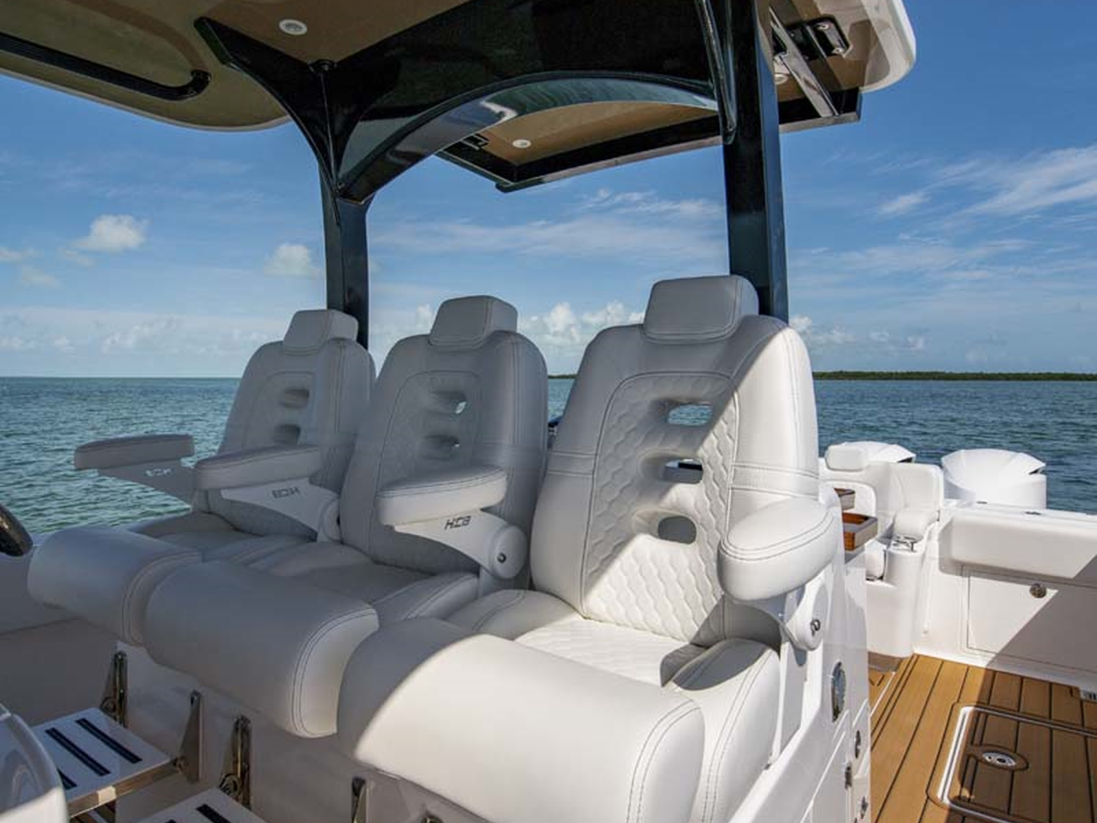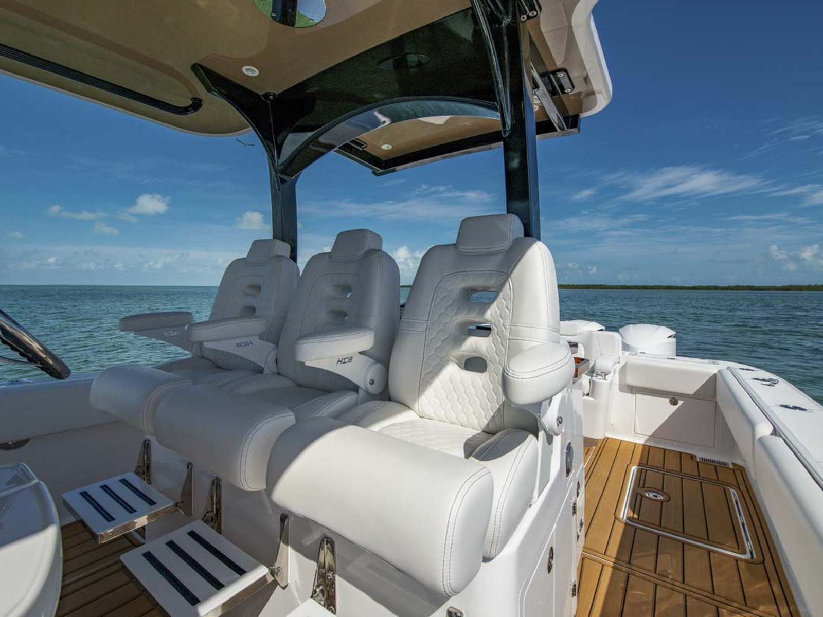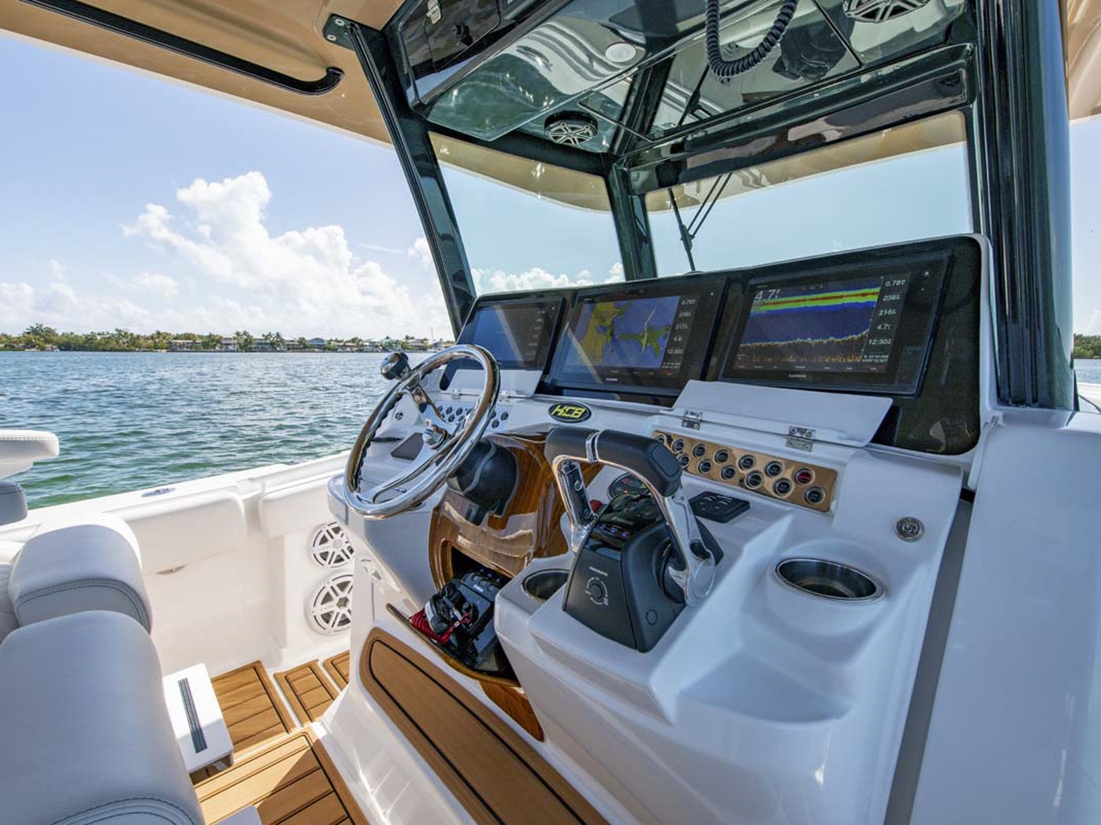 This family-friendly center console yacht is a comparison shoppers dream, with the all of the desired standard features and comfort you expect from HCB.