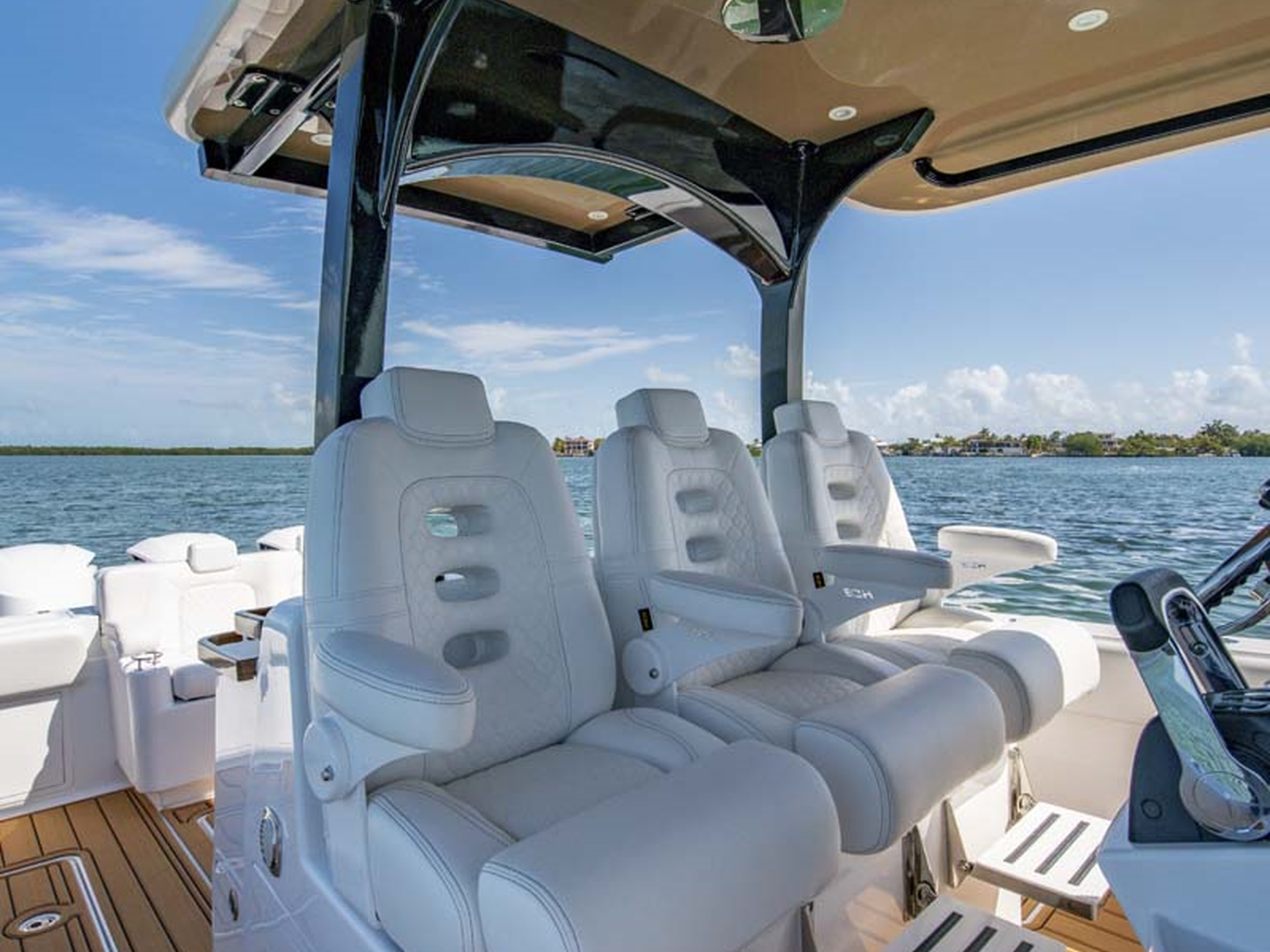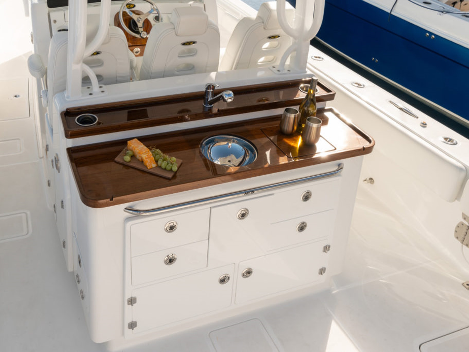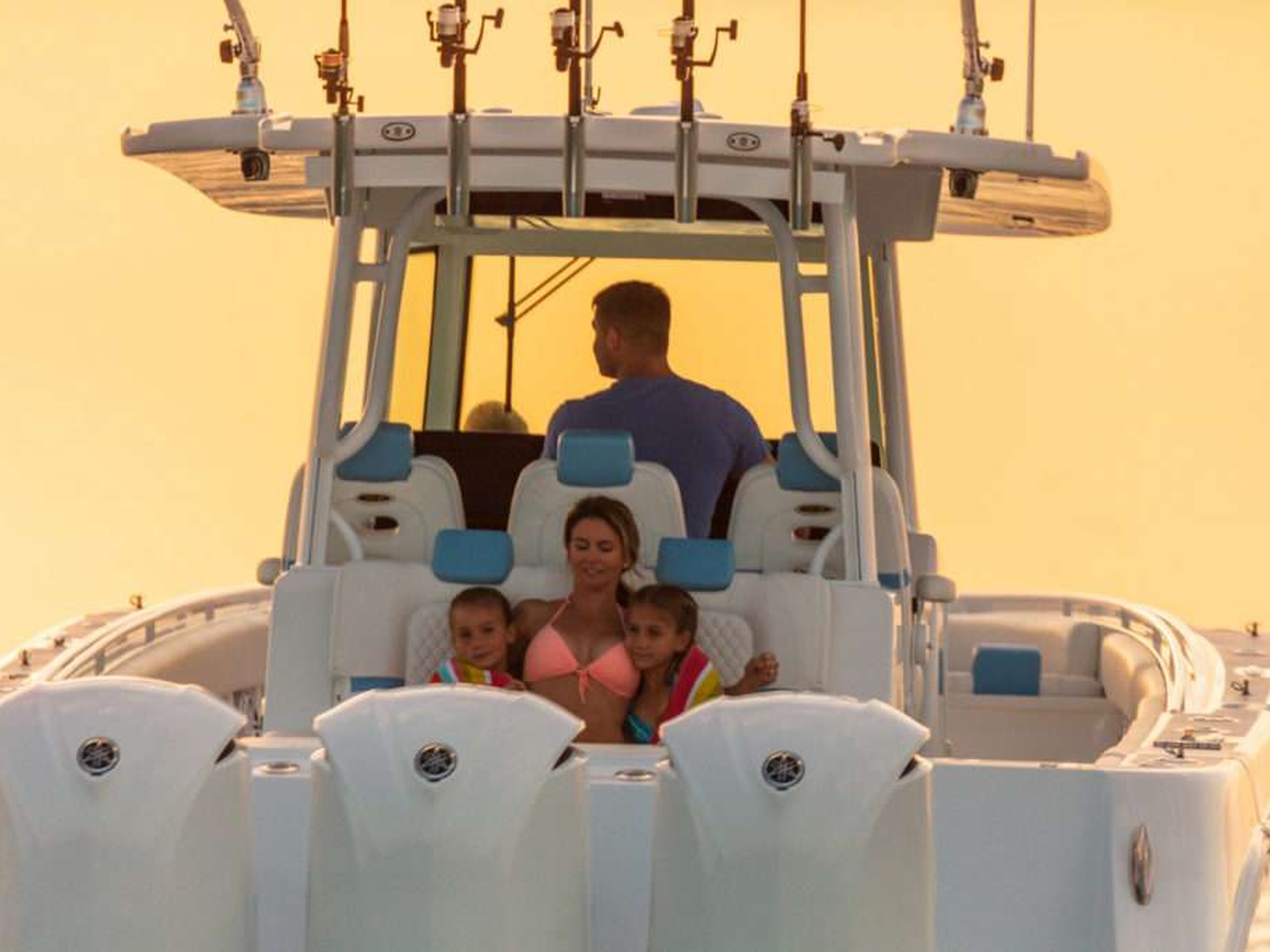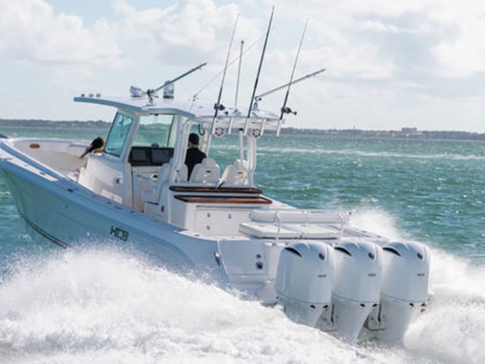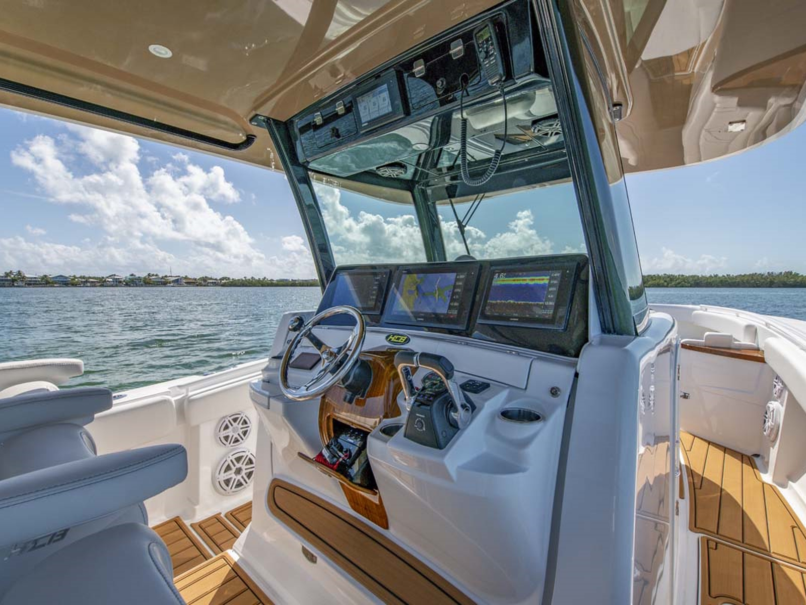 This family-friendly center console yacht is a comparison shoppers dream, with the all of the desired standard features and comfort you expect from HCB.
