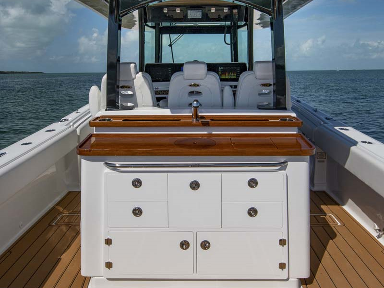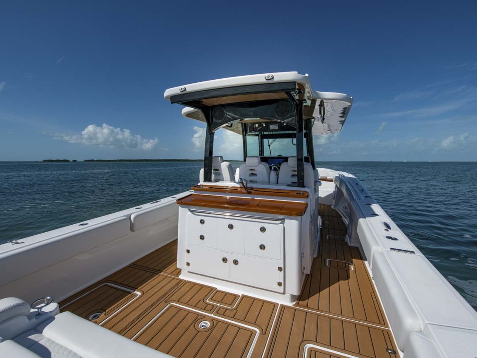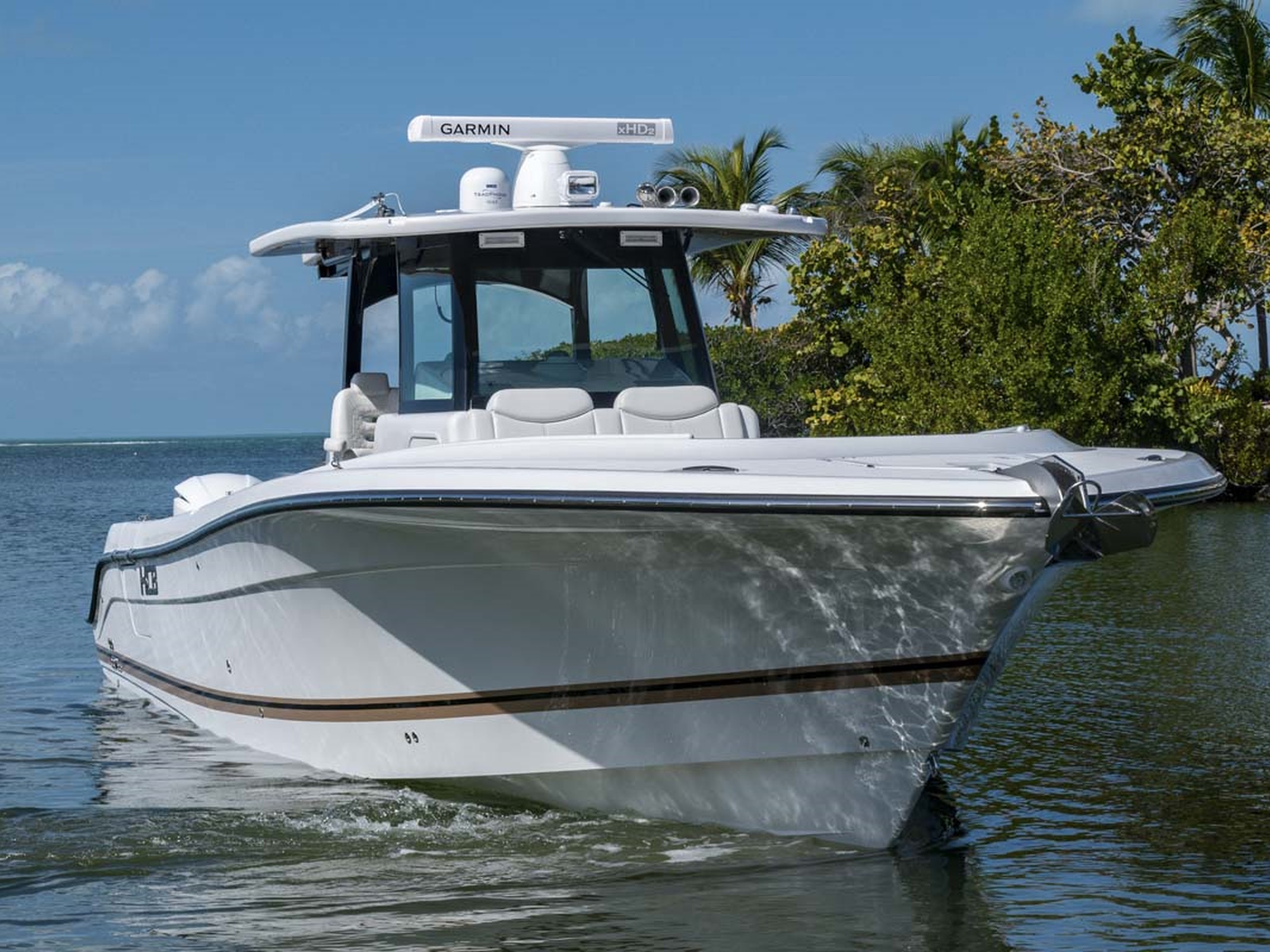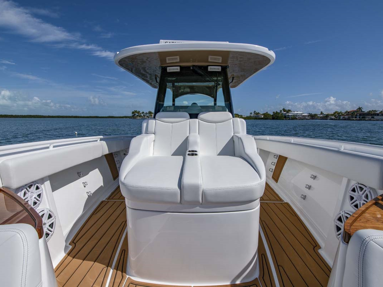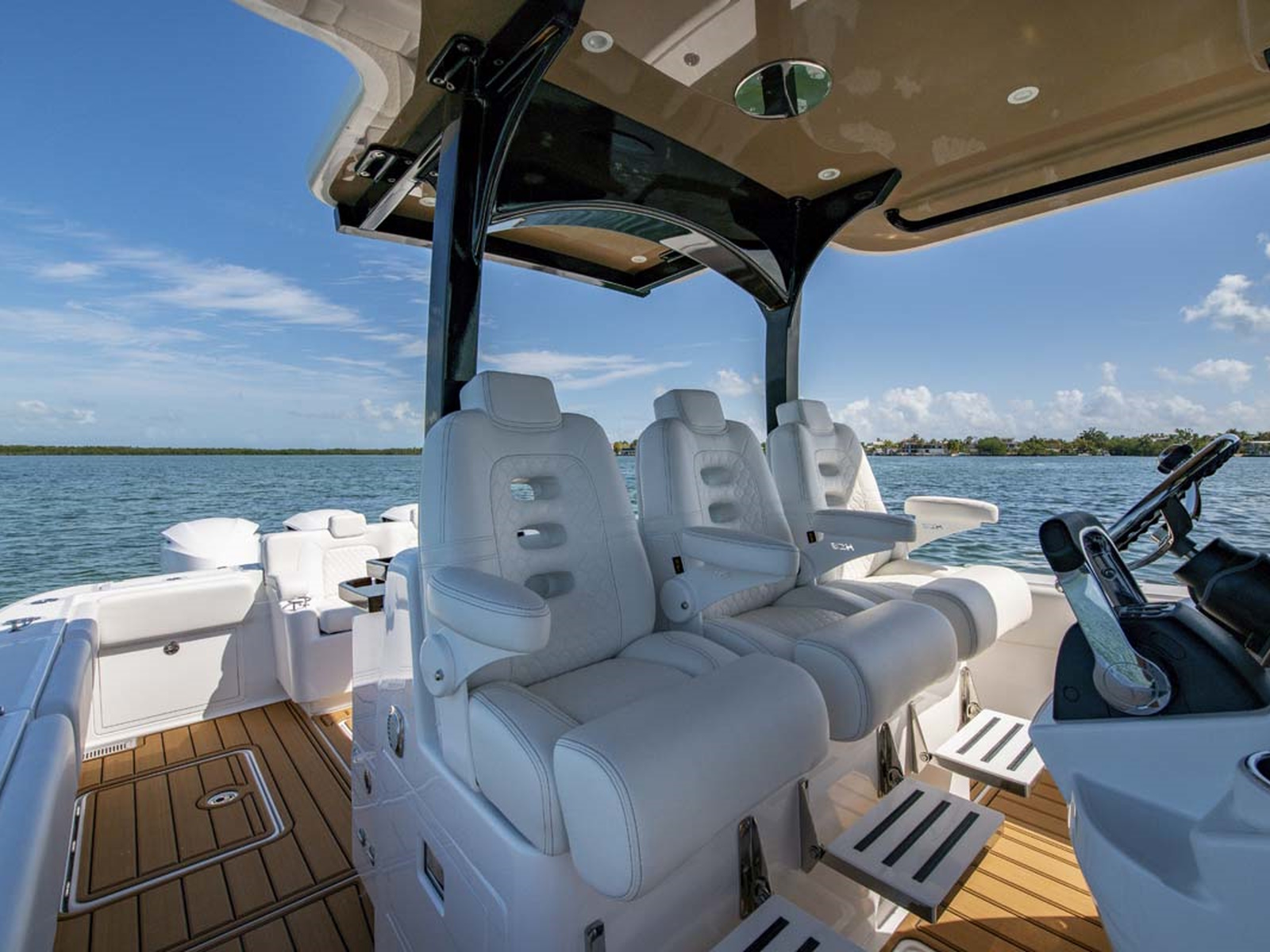 This family-friendly center console yacht is a comparison shoppers dream, with the all of the desired standard features and comfort you expect from HCB.