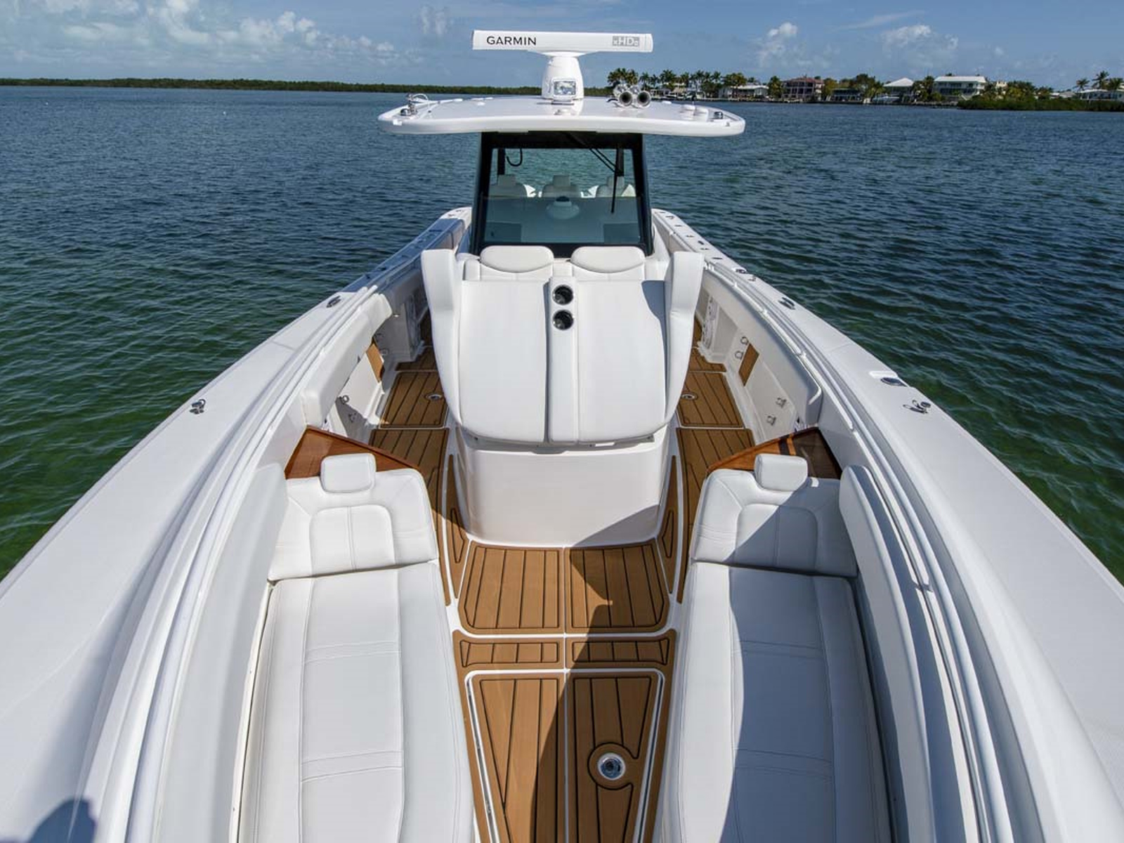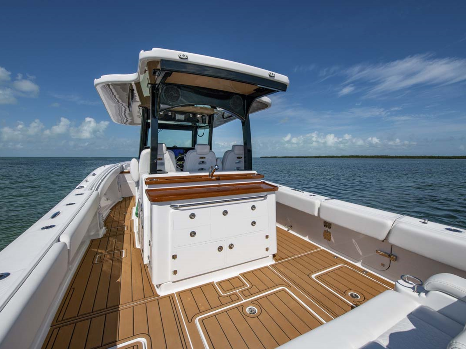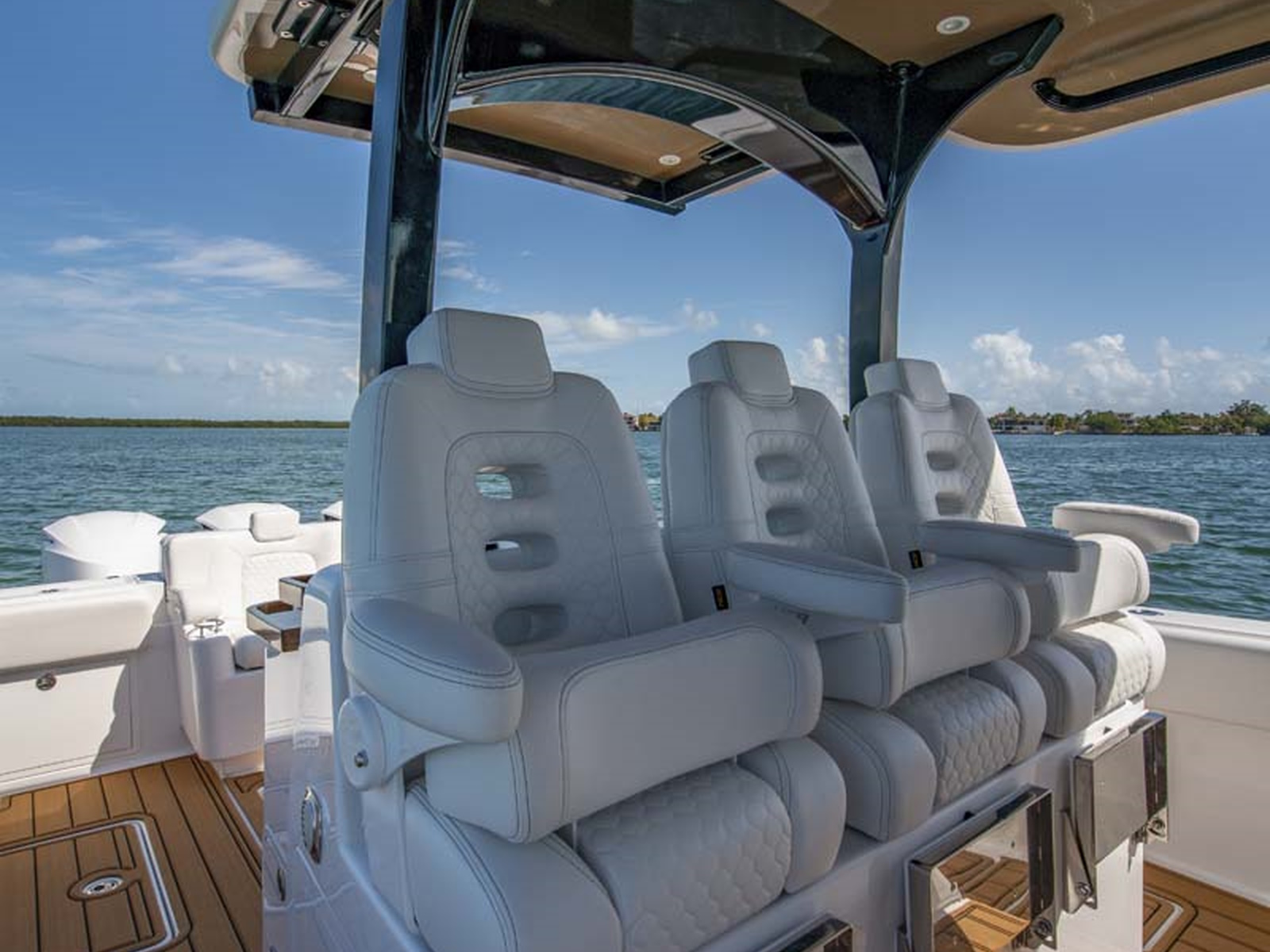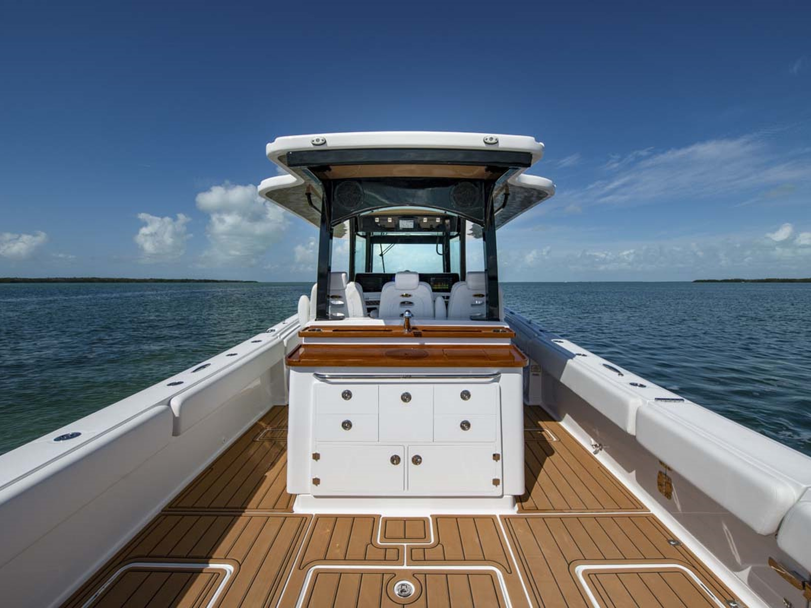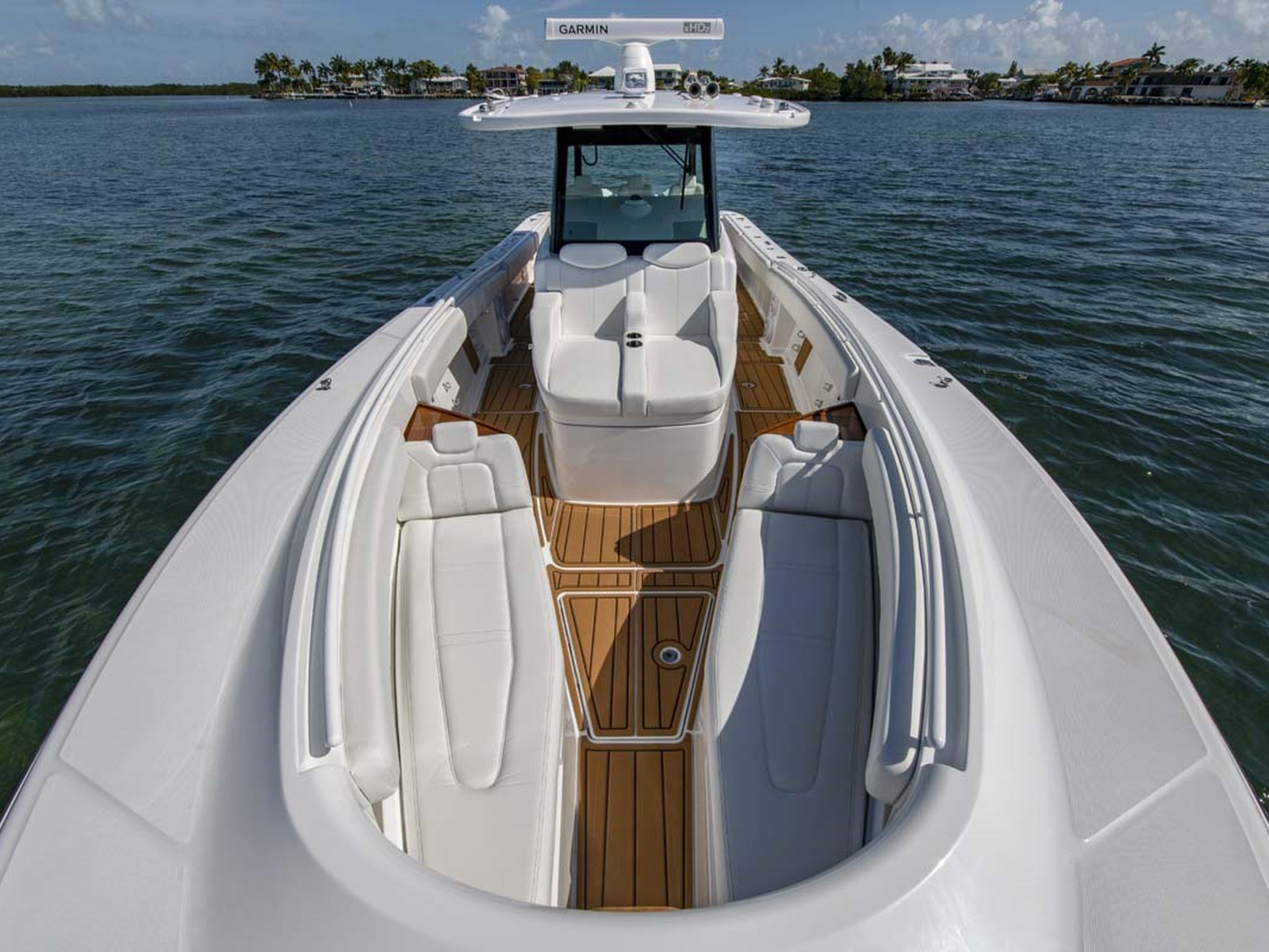This family-friendly center console yacht is a comparison shoppers dream, with the all of the desired standard features and comfort you expect from HCB.