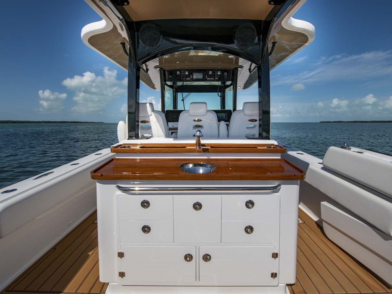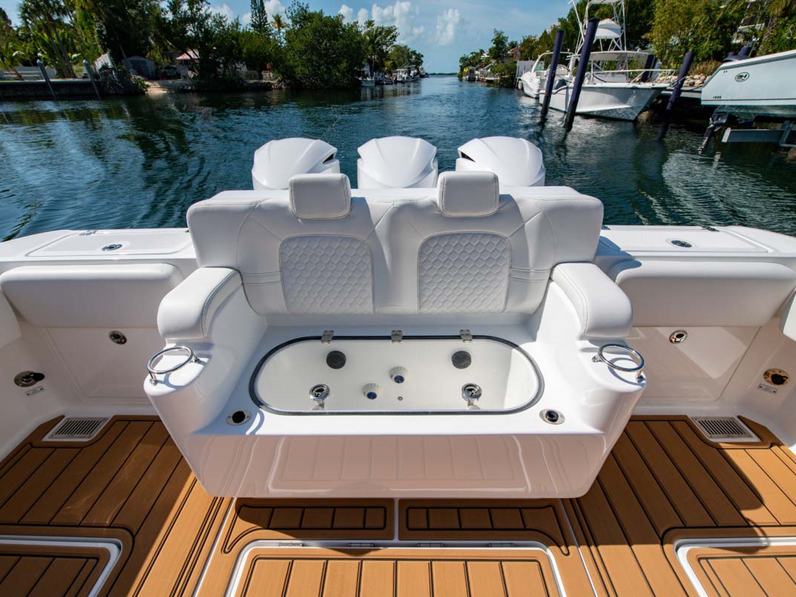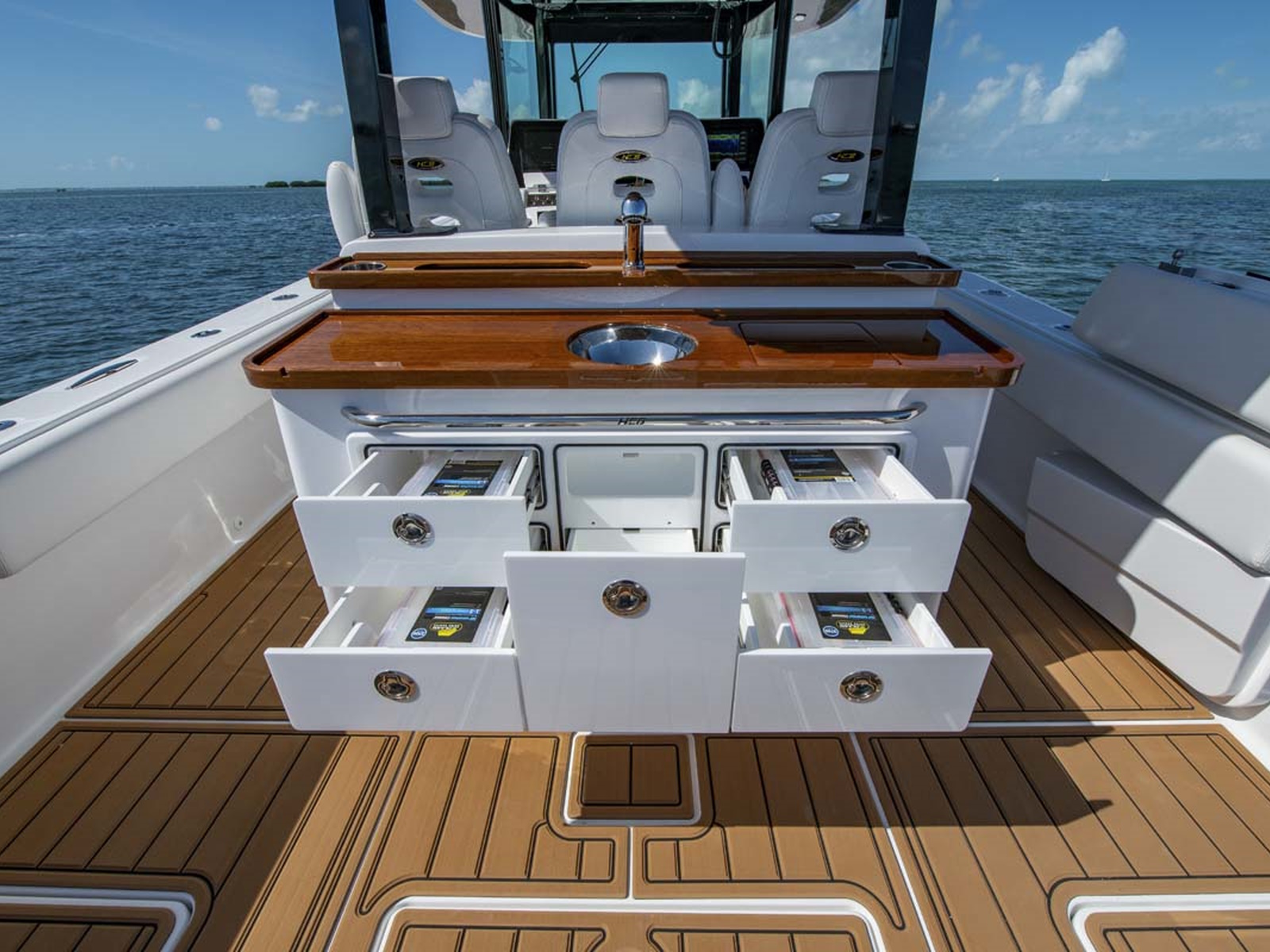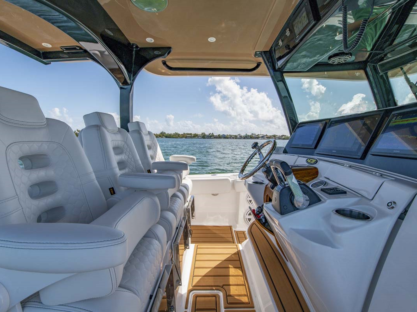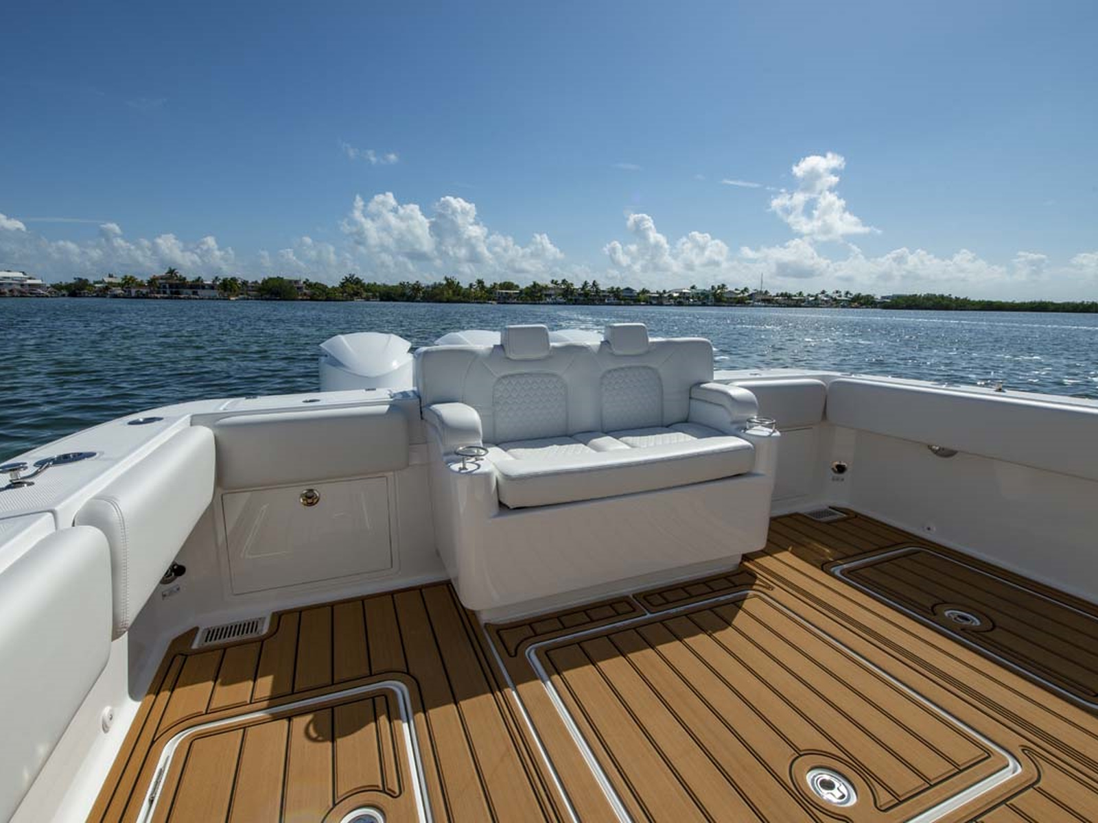 This family-friendly center console yacht is a comparison shoppers dream, with the all of the desired standard features and comfort you expect from HCB.