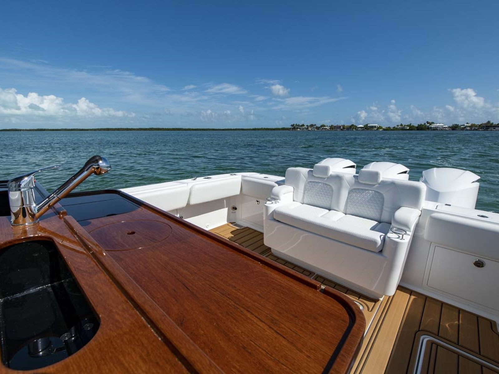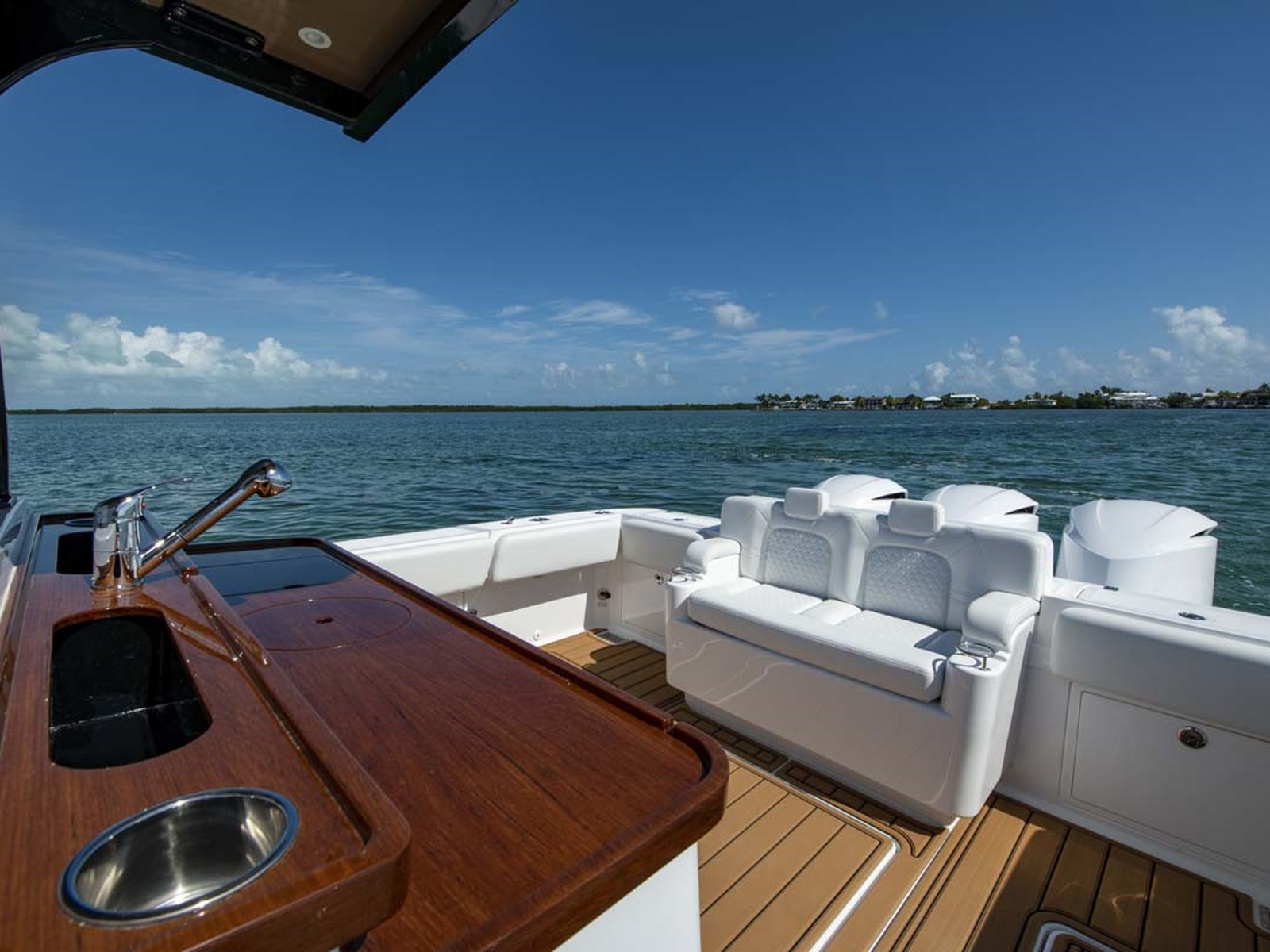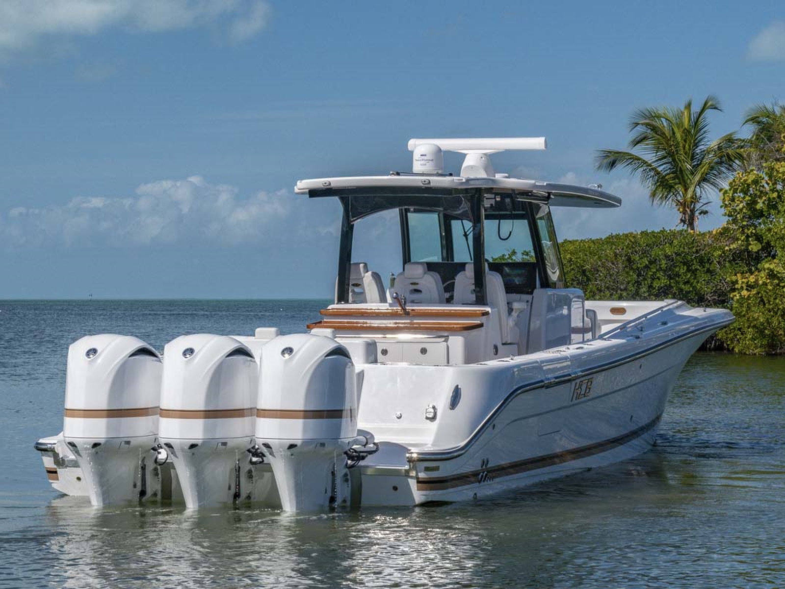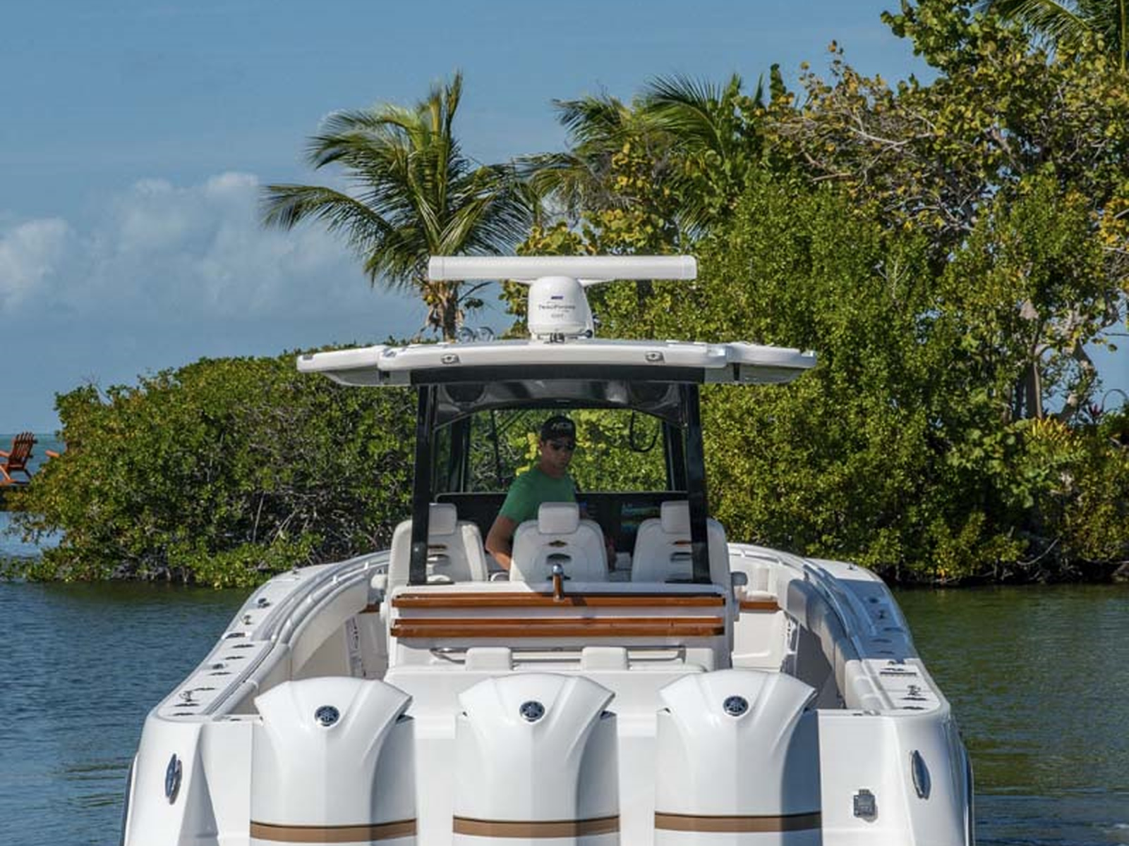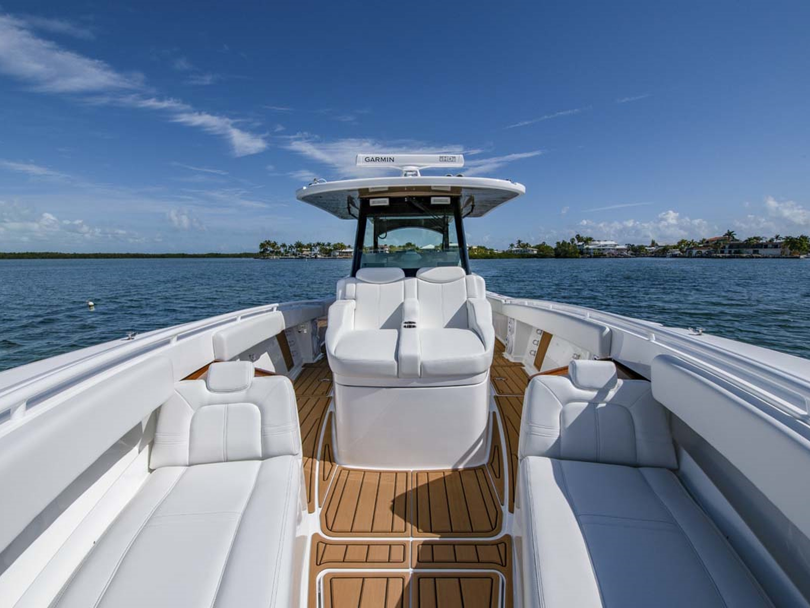 This family-friendly center console yacht is a comparison shoppers dream, with the all of the desired standard features and comfort you expect from HCB.