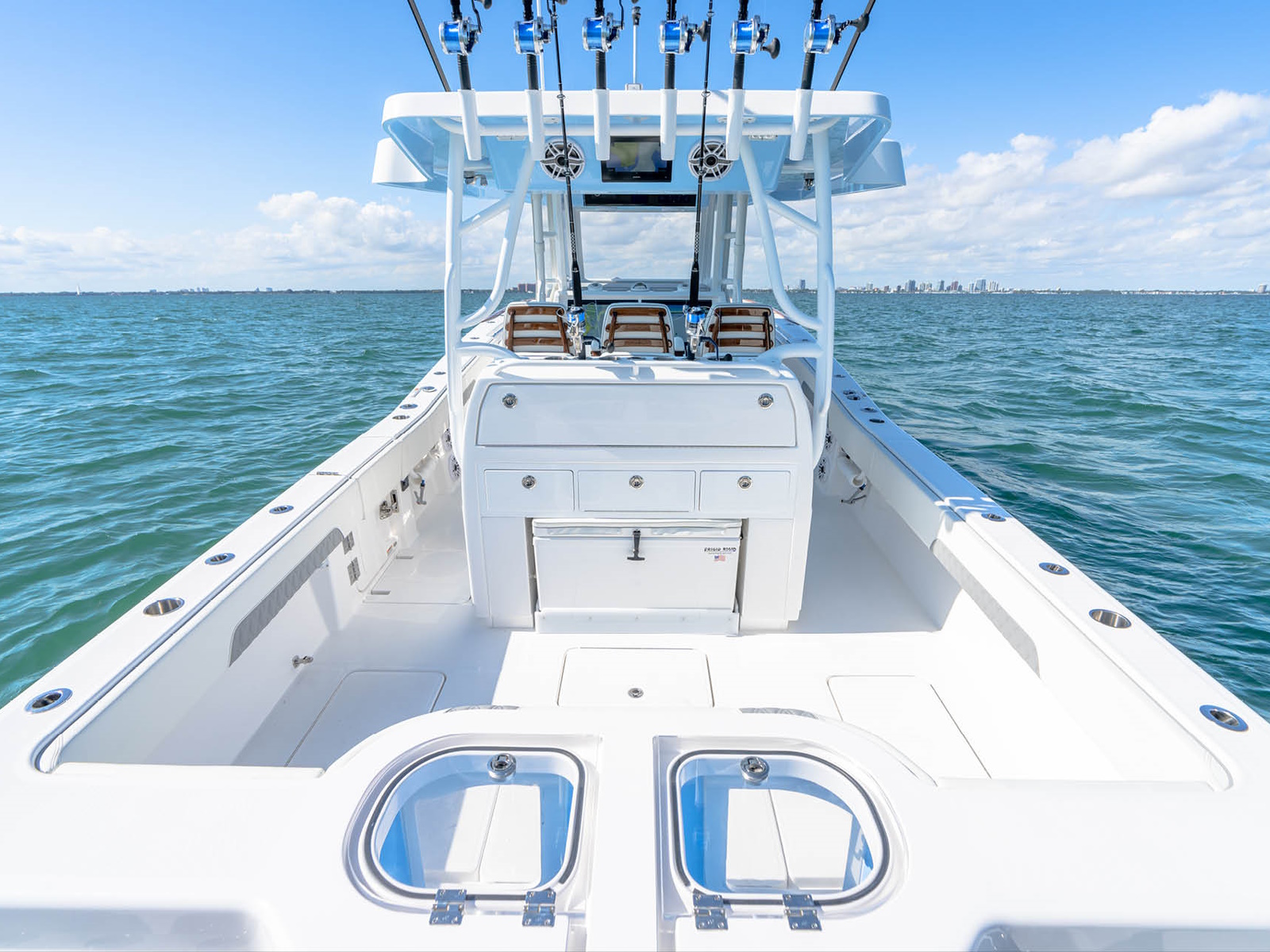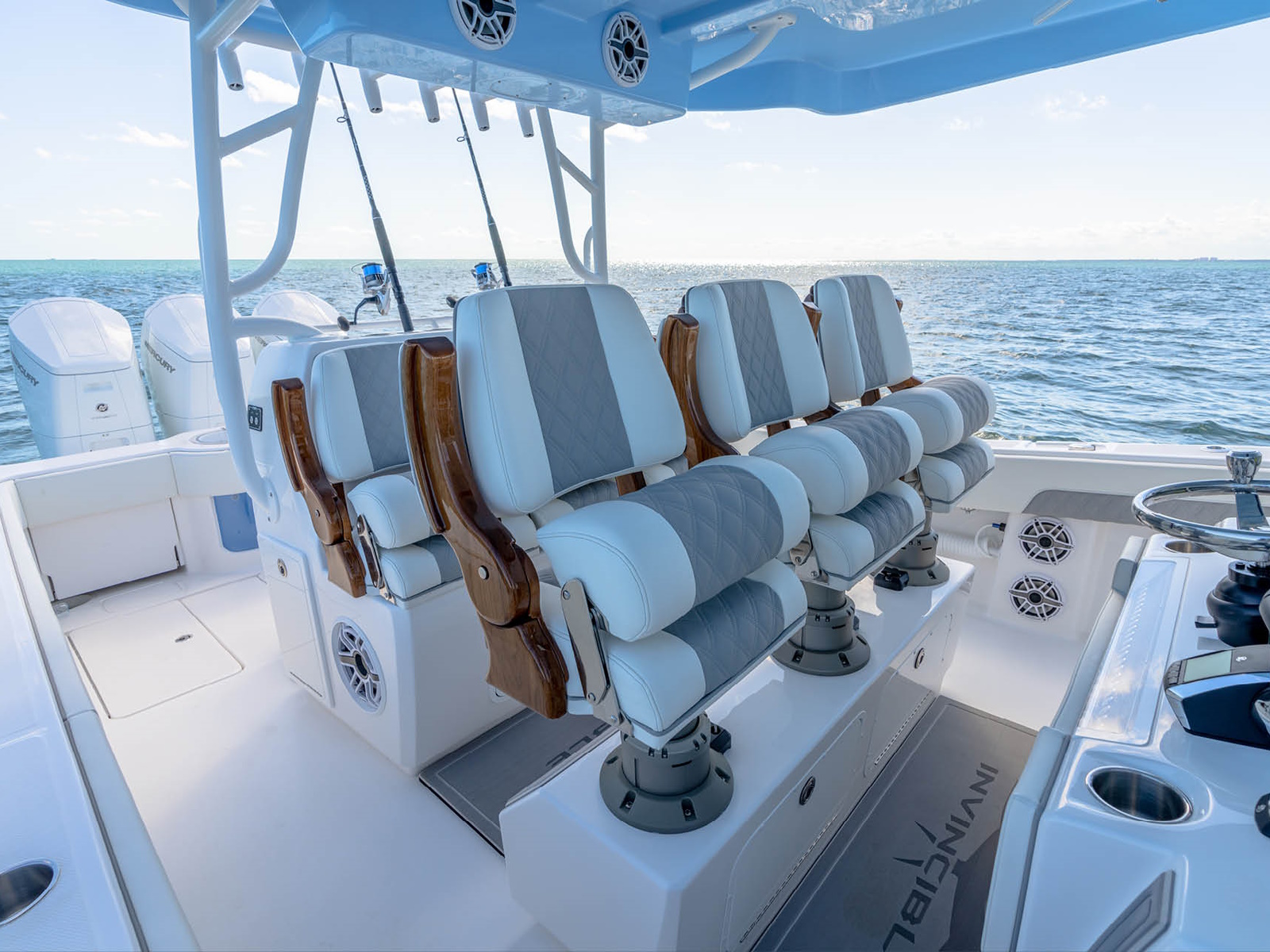 Born from a line of tournament winning predecessors, the 43’ Open Fisherman carries on the legacy of the Invincible Monohull. Using patented Michael Peters design, the 43’ Open Fisherman not only boasts power and agility, but also room for every situation. Bring your crew out comfortably, with dual-row seating, and never let capacity be the deciding factor again.
