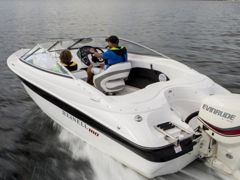 This 18 Reinell OB Bowrider delivers polish and performance. An elegant eye catcher on and off the water, this boat will delight.