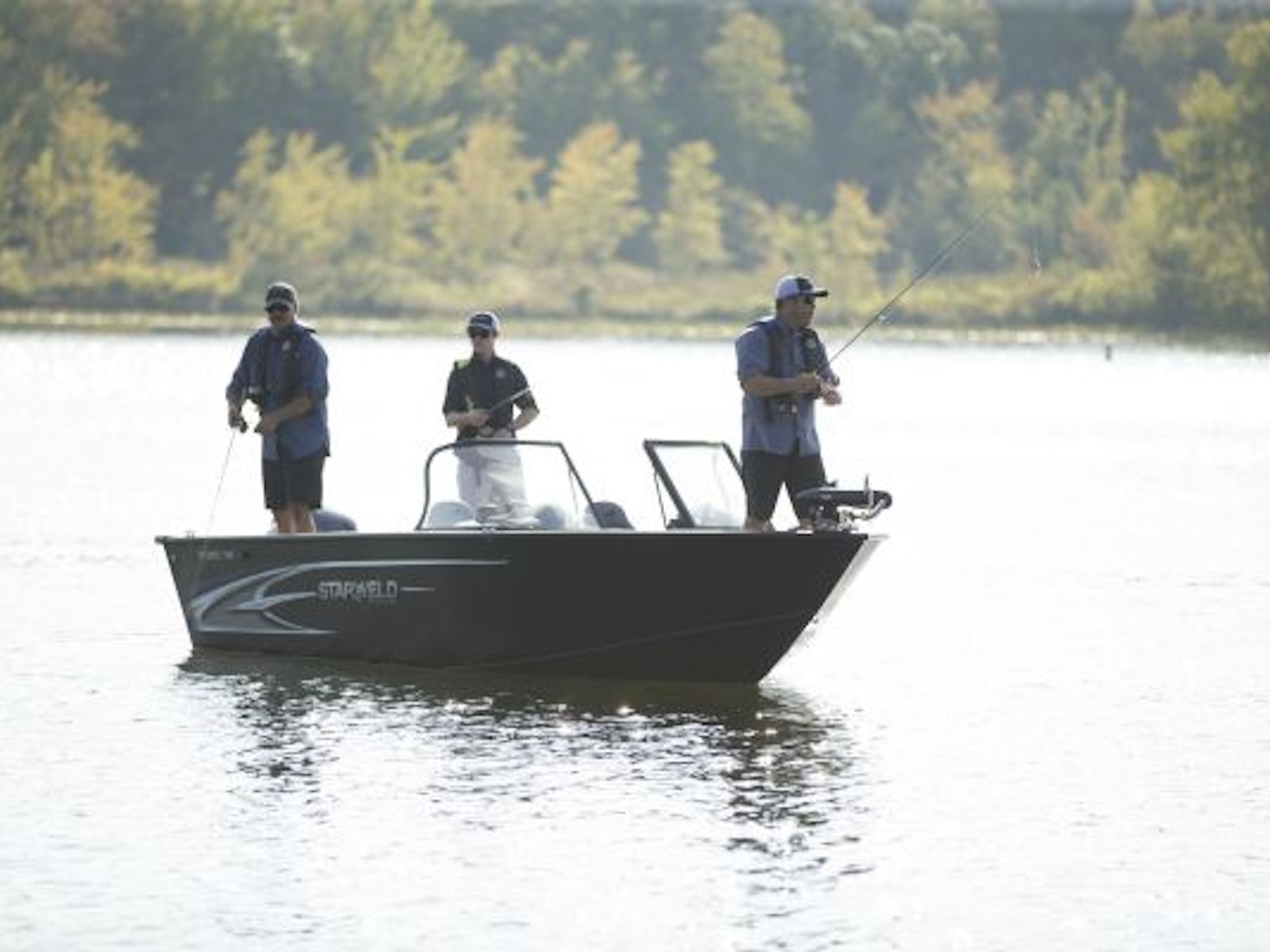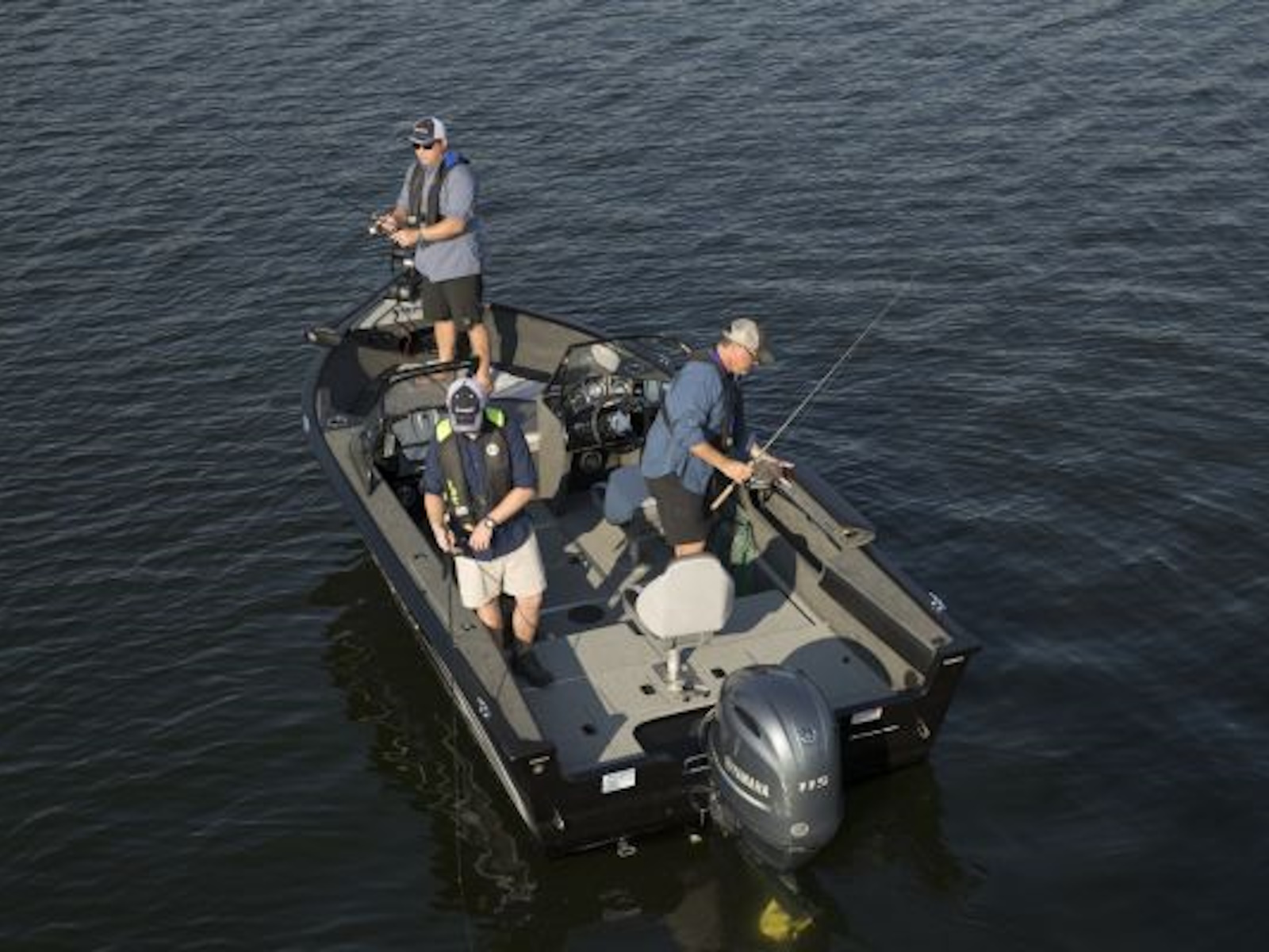 The Starcraft Flex 19 DC aluminum fishing boat is a feature-packed machine designed for serious anglers who value both functionality and comfort. Standard features ensure you're well-equipped for a productive day on the water. Lockable in-floor rod lockers keep your fishing rods, up to six 6'6" ones, secure and organized. Strategically placed top-mounted port and starboard storage compartments provide additional space for essential gear. The full vinyl floor and casting platforms offer a comfortable and secure footing when fighting a fish. Removable bow cushions allow for customizable seating, while the convertible rear flip-down bench provides flexible seating options for your crew. Dual livewells cater to both bait and catch: a spacious 30-gallon bow livewell keeps your baitfish healthy and lively, and a 12-gallon stern livewell with a built-in bait bucket ensures your prized catch stays in top condition until you're ready to weigh them in. With its focus on functionality, storage, comfort, and fish care, the Starcraft Flex 19 DC aluminum fishing boat is the ideal choice for creating unforgettable fishing adventures.
