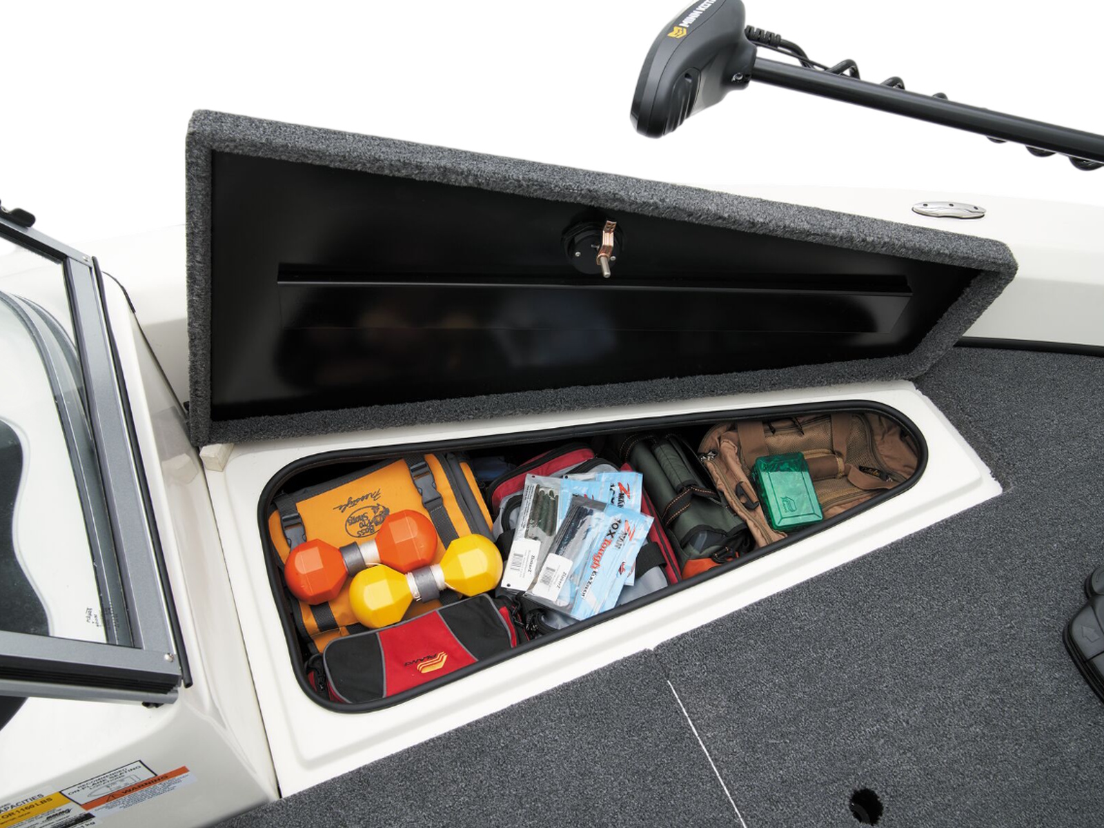 Front Starboard Storage Box: 270 Qt (255.52 L) | Built-In Ice Chest: 12 Qt (11.36 L) | Front Storage Box: 190 Qt (179.81 L) | Front Port Storage Box: 270 Qt (255.52 L)