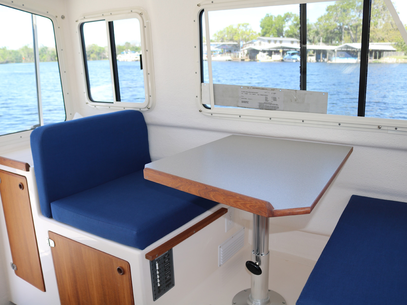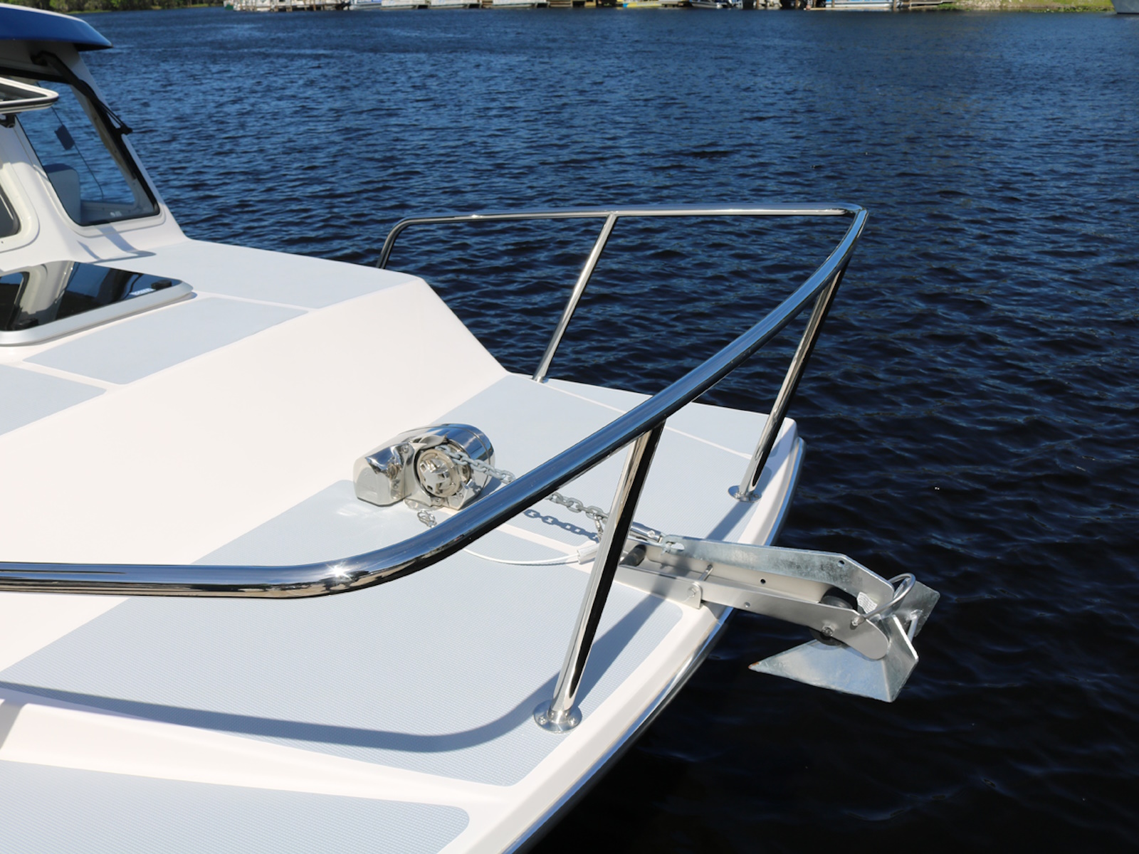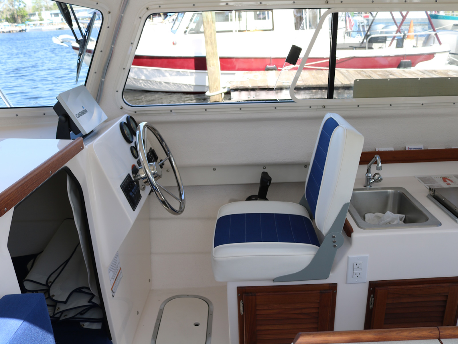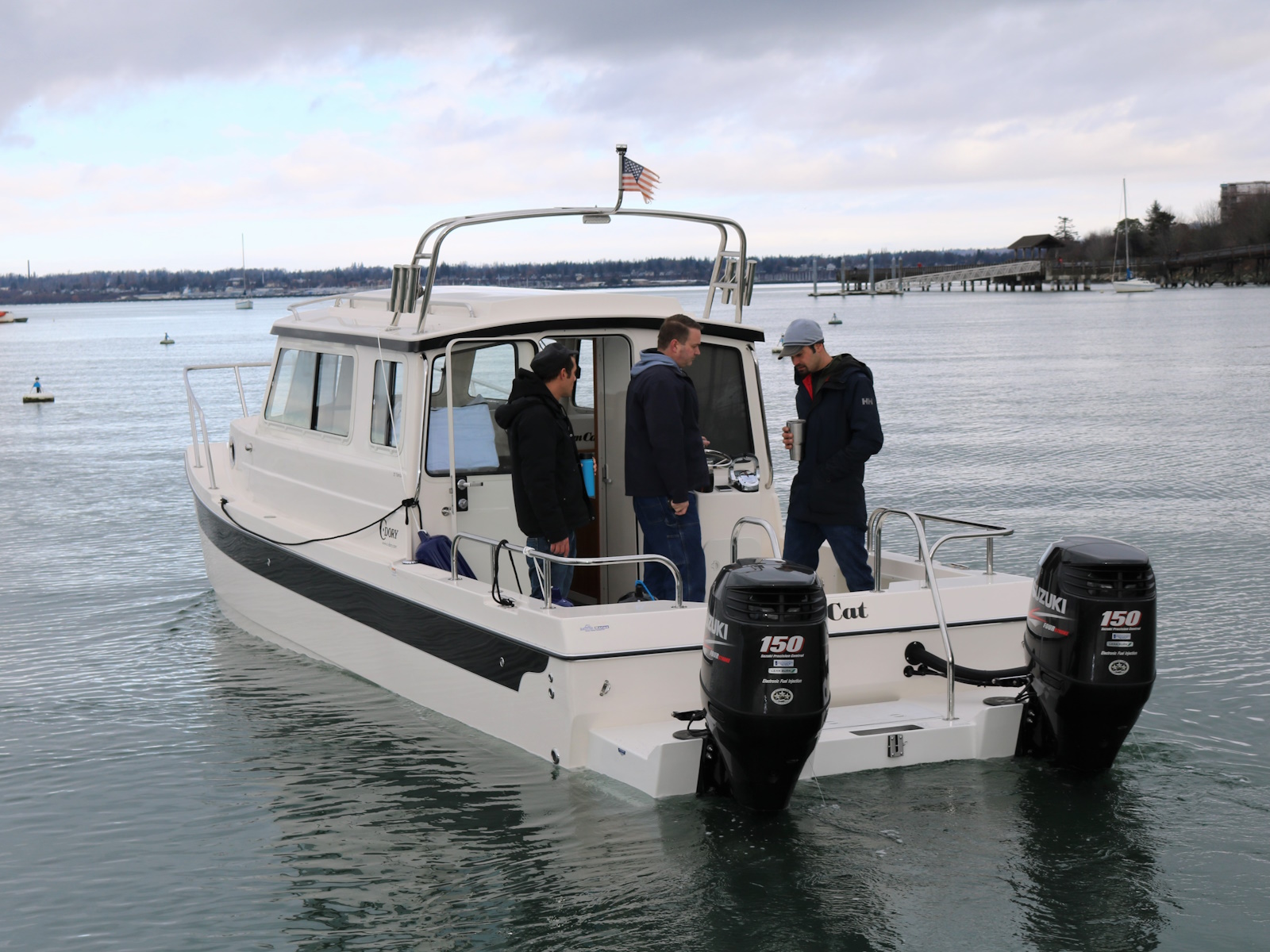 The Tomcat 255 rides and corners smoothly without any roll. It tracks straight at all speeds and runs flat and dry. The railings are all made of the highest grade 316 stainless steel and are oversized for extra strength and safety! Four foot insulated fish boxes with macerators provide plenty of room for the days catch. They also serve well as additional cockpit storage. The Tomcat 255 rides and corners smoothly without any roll. It tracks straight at all speeds and runs flat and dry. Twin engines provide maneuverability around the dock and peace of mind when out on the water. A spacious all weather pilothouse with an enclosed head and shower, make the Tomcat 255 a very smart trailer able vessel.