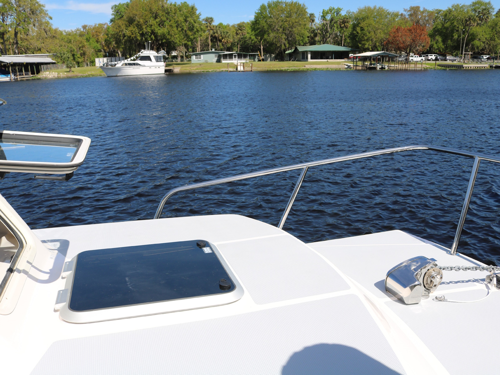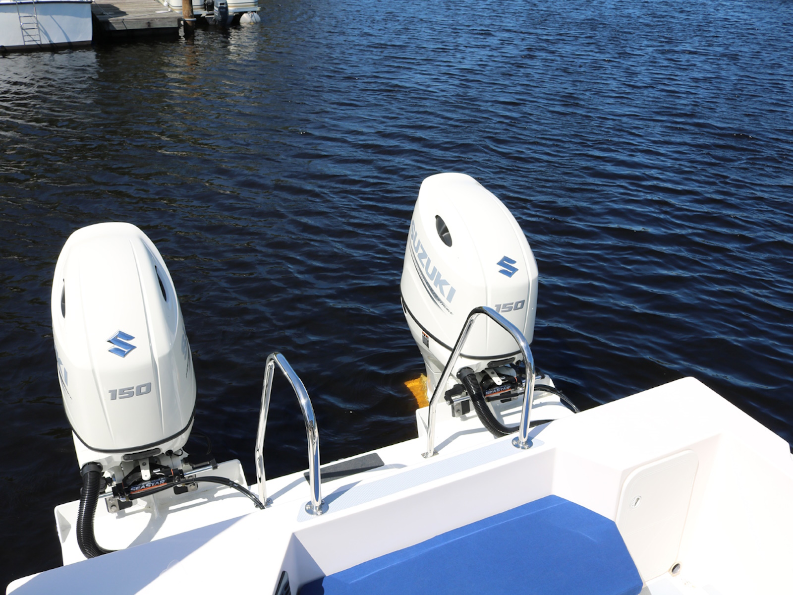 WIDELY SPACED TWIN ENGINES PROVIDE MANEUVERABILITY AROUND THE DOCK AND PEACE OF MIND WHEN OUT ON THE WATER