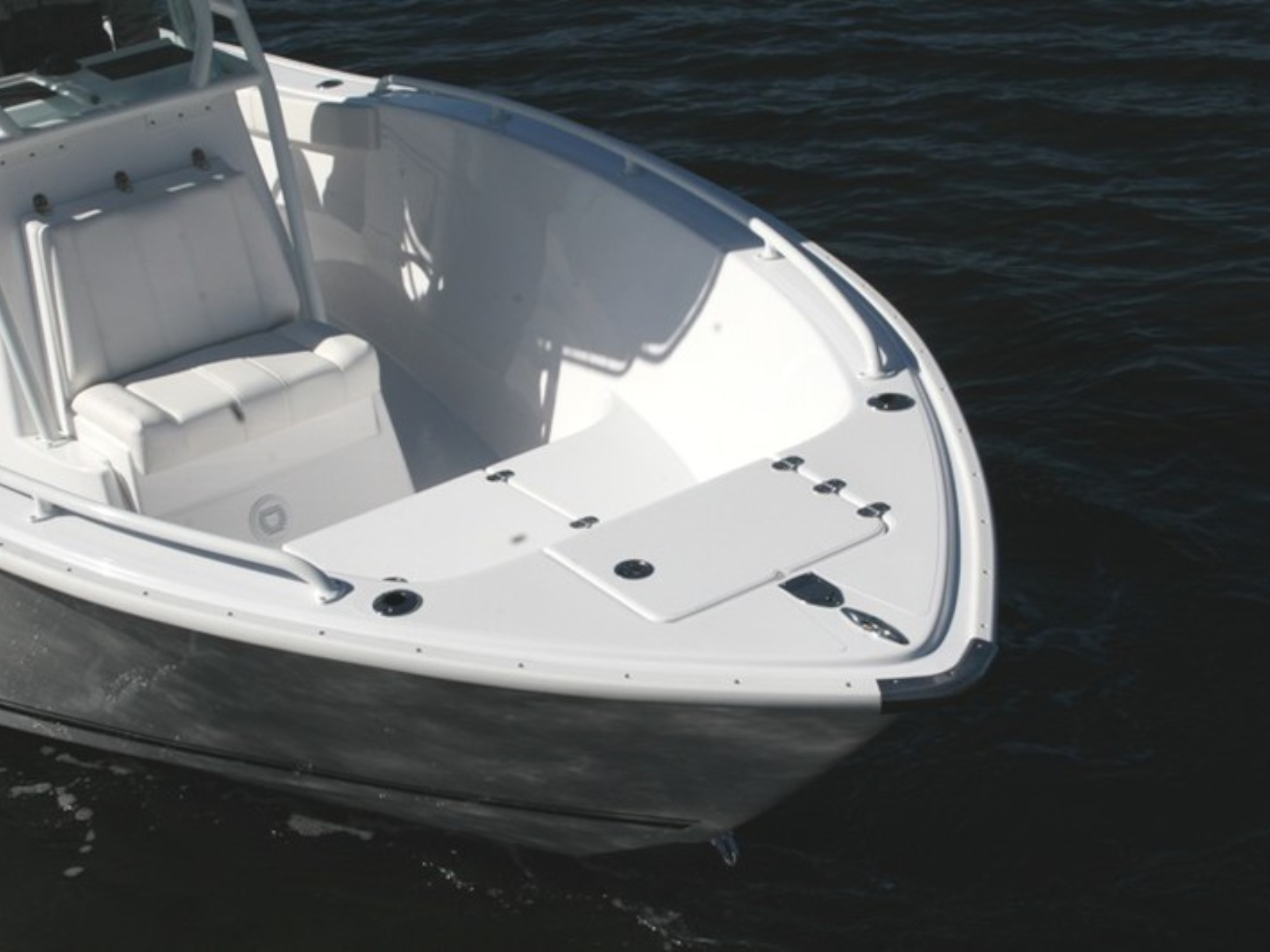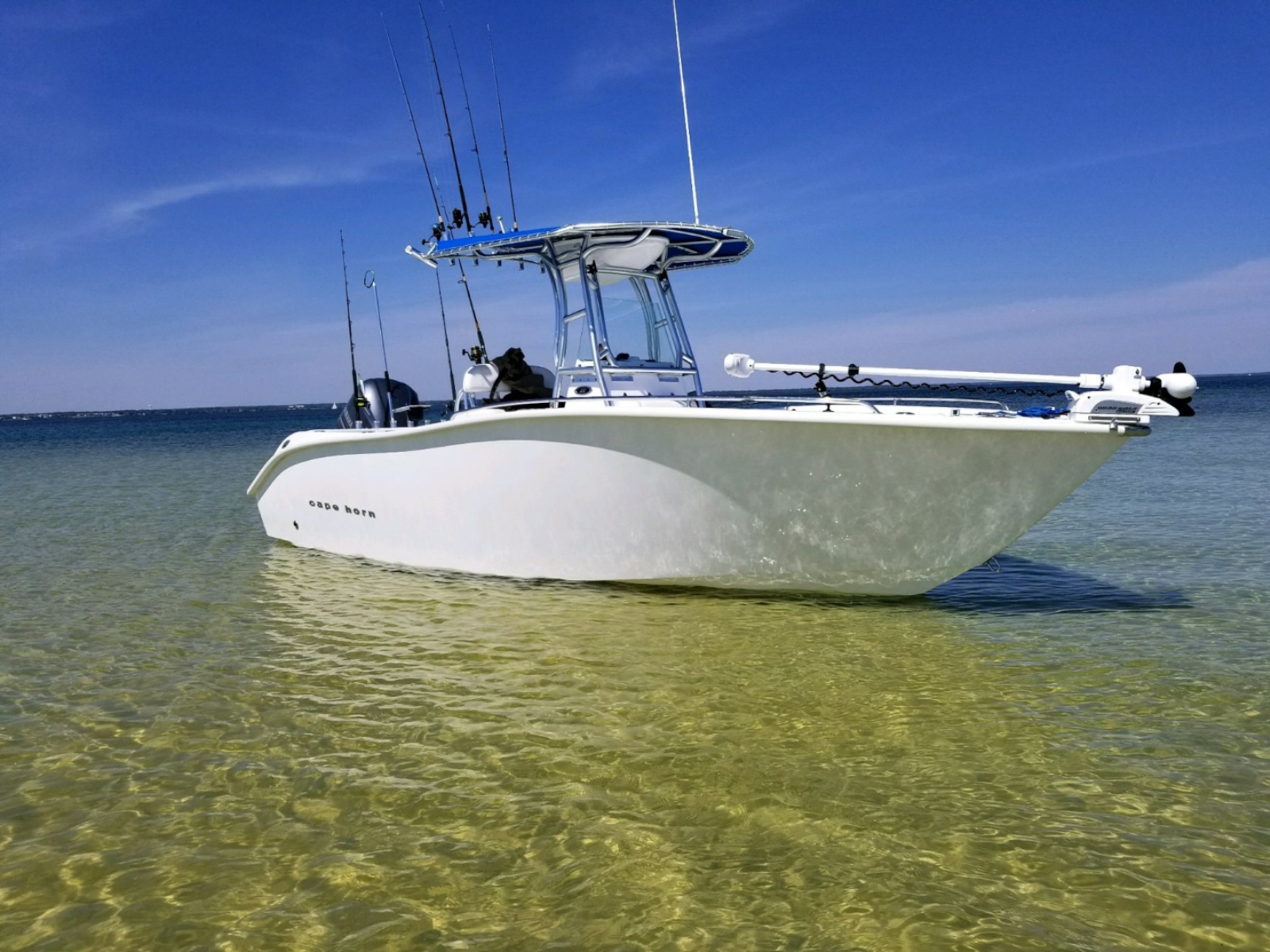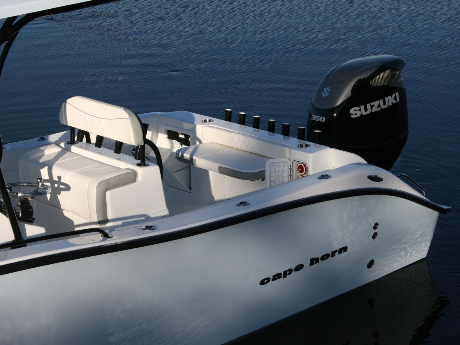 If you think it looks good, wait until you drive it. One look into the huge floor plan of the all new Cape Horn 22 and you realize it is something special. Flip up the front seat and you can step down into the center console with 5 ‘ 4″ of headroom and standard manual flush toilet. The huge 40 gal. live well behind the leaning post will make sure you never run out of bait. The aft cockpit boasts one of the largest work stations of any other in this size class. It has plenty of room for multiple anglers to go toe to toe without getting in each others way. The removable cooler with top cushion is a nice optional addition if more seating or cooler space is a must. Add the front bow cushion to create a relaxing spot when your ready for a break. All veteran anglers will appreciate the 27 rod holders located where you need them. Rod boxes in the sides allow for (4) more rods to be in storage. The step-up in the bow makes throwing a cast-net easy and also adds the space for a huge storage box forward.