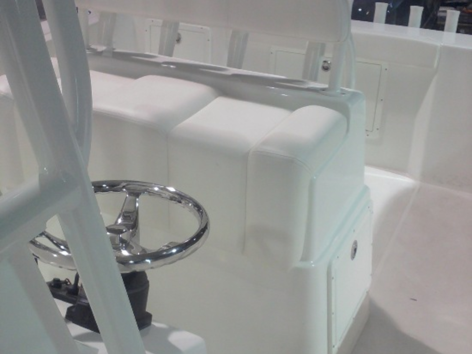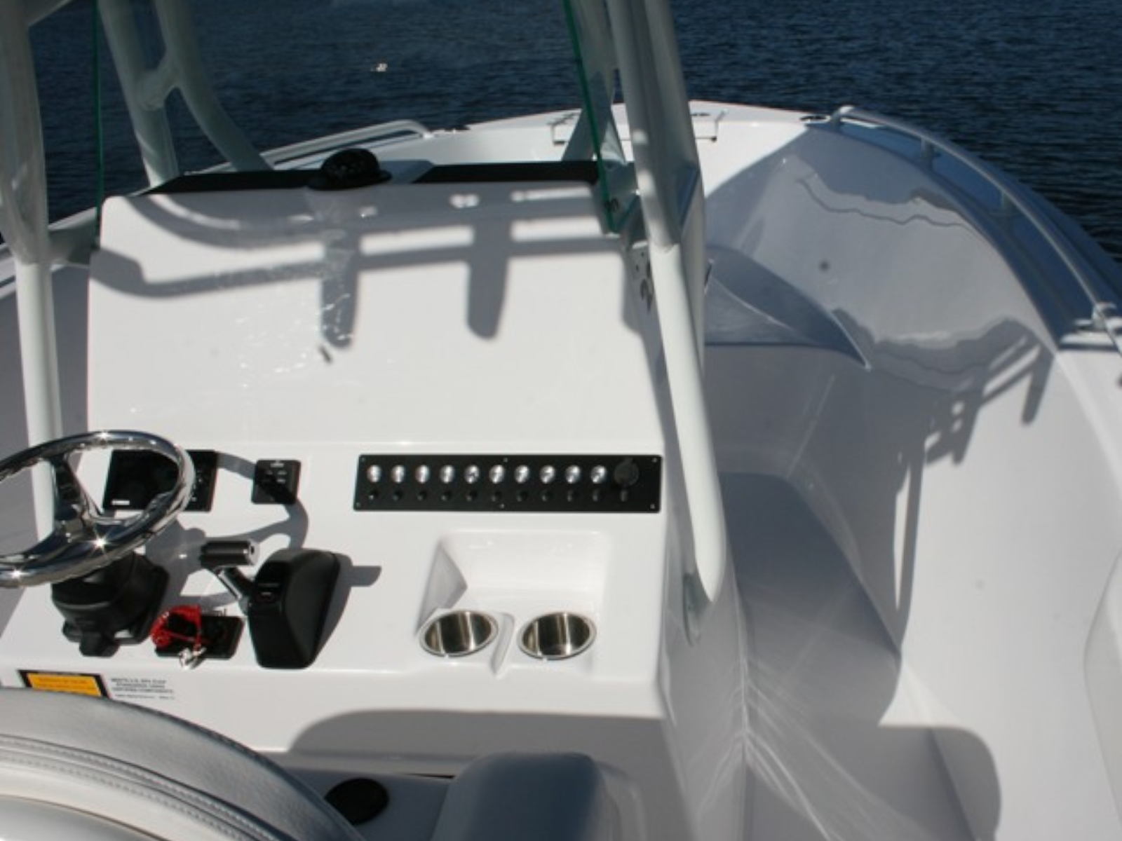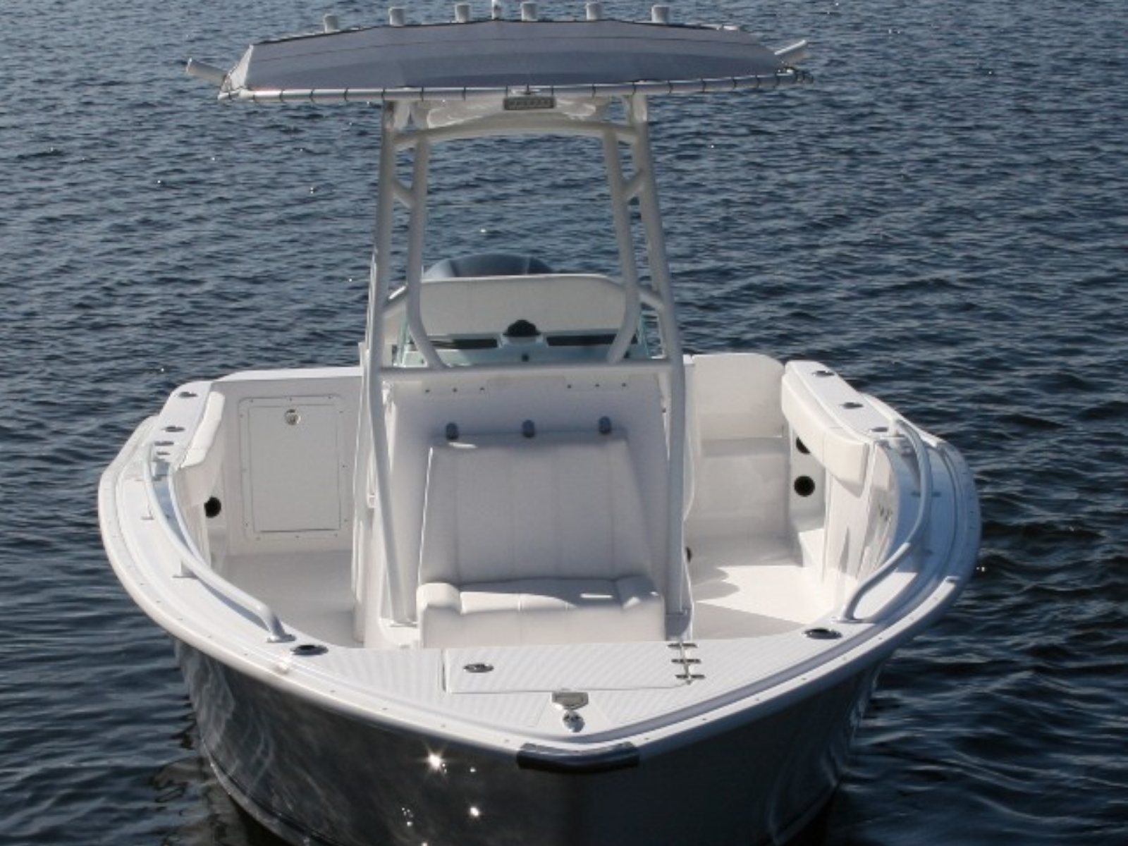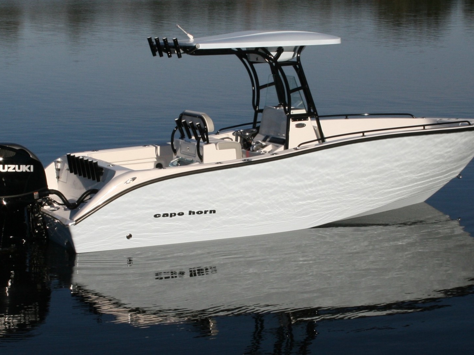 If you think it looks good, wait until you drive it. One look into the huge floor plan of the all new Cape Horn 22 and you realize it is something special. Flip up the front seat and you can step down into the center console with 5 ‘ 4″ of headroom and standard manual flush toilet. The huge 40 gal. live well behind the leaning post will make sure you never run out of bait. The aft cockpit boasts one of the largest work stations of any other in this size class. It has plenty of room for multiple anglers to go toe to toe without getting in each others way. The removable cooler with top cushion is a nice optional addition if more seating or cooler space is a must. Add the front bow cushion to create a relaxing spot when your ready for a break. All veteran anglers will appreciate the 27 rod holders located where you need them. Rod boxes in the sides allow for (4) more rods to be in storage. The step-up in the bow makes throwing a cast-net easy and also adds the space for a huge storage box forward.