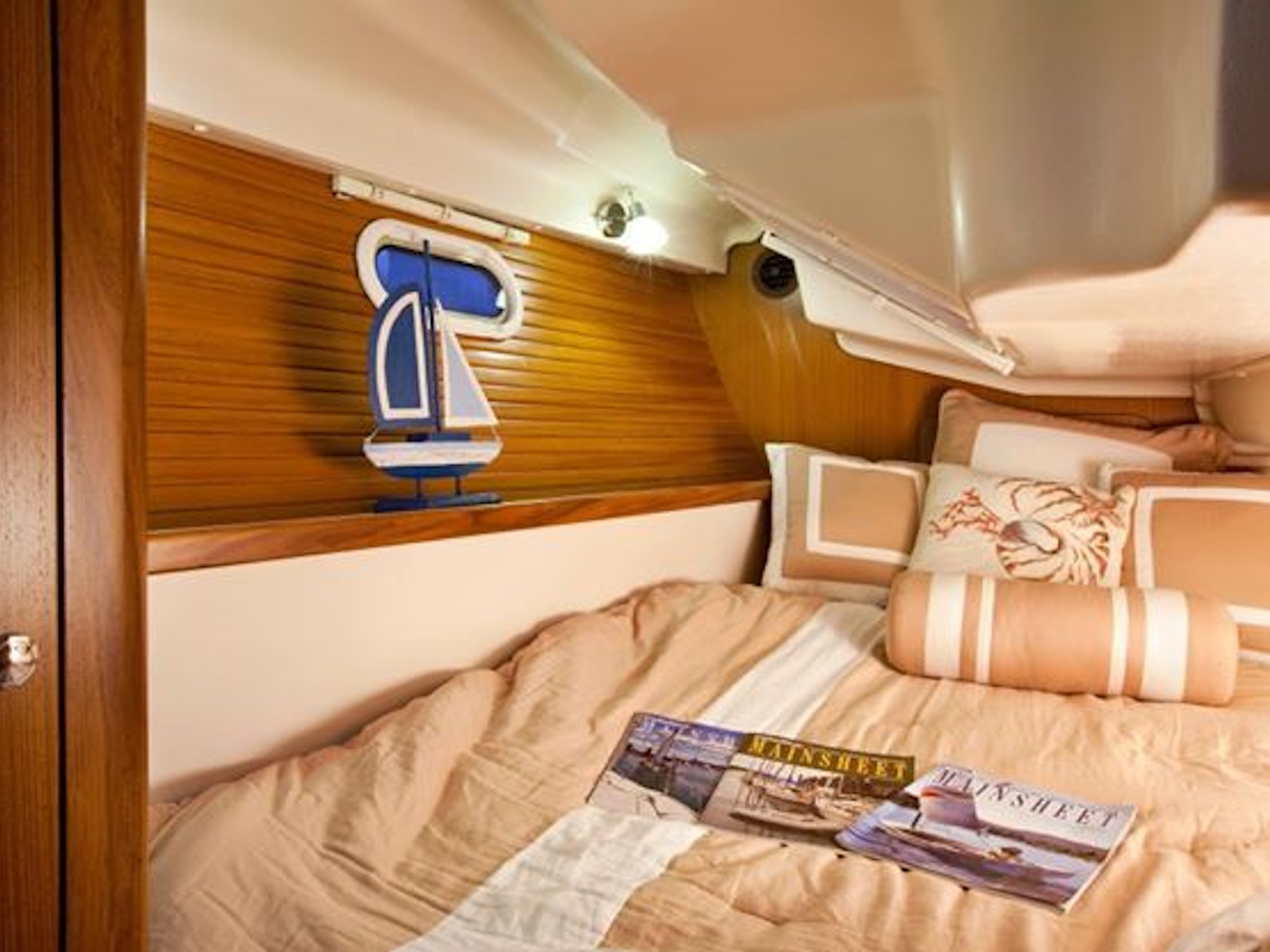 Inner-Spring Mattresses in Fore and Aft Berths with Custom Fitted Sheets
