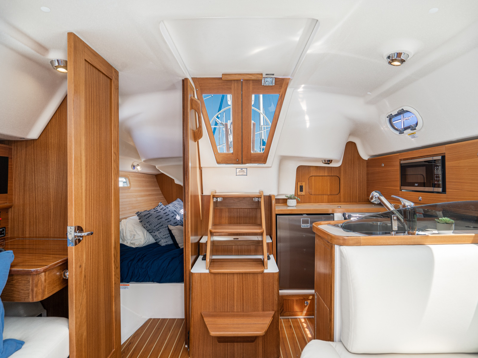 With core attributes of the award-winning 445 and 355, the 315 includes features that are not found in many of the world’s yachts, yet come standard with the Catalina 5 Series: a watertight StrikeZone™ collision bulkhead, the SecureSocket™ mast support system that affords superior load resolution and watertight integrity; the DeepDefense™ rudder system for failsafe steering, and the T-Beam MastStep™ structure that has all the benefits of a deck-stepped mast and the strength of a keel-stepped mast.