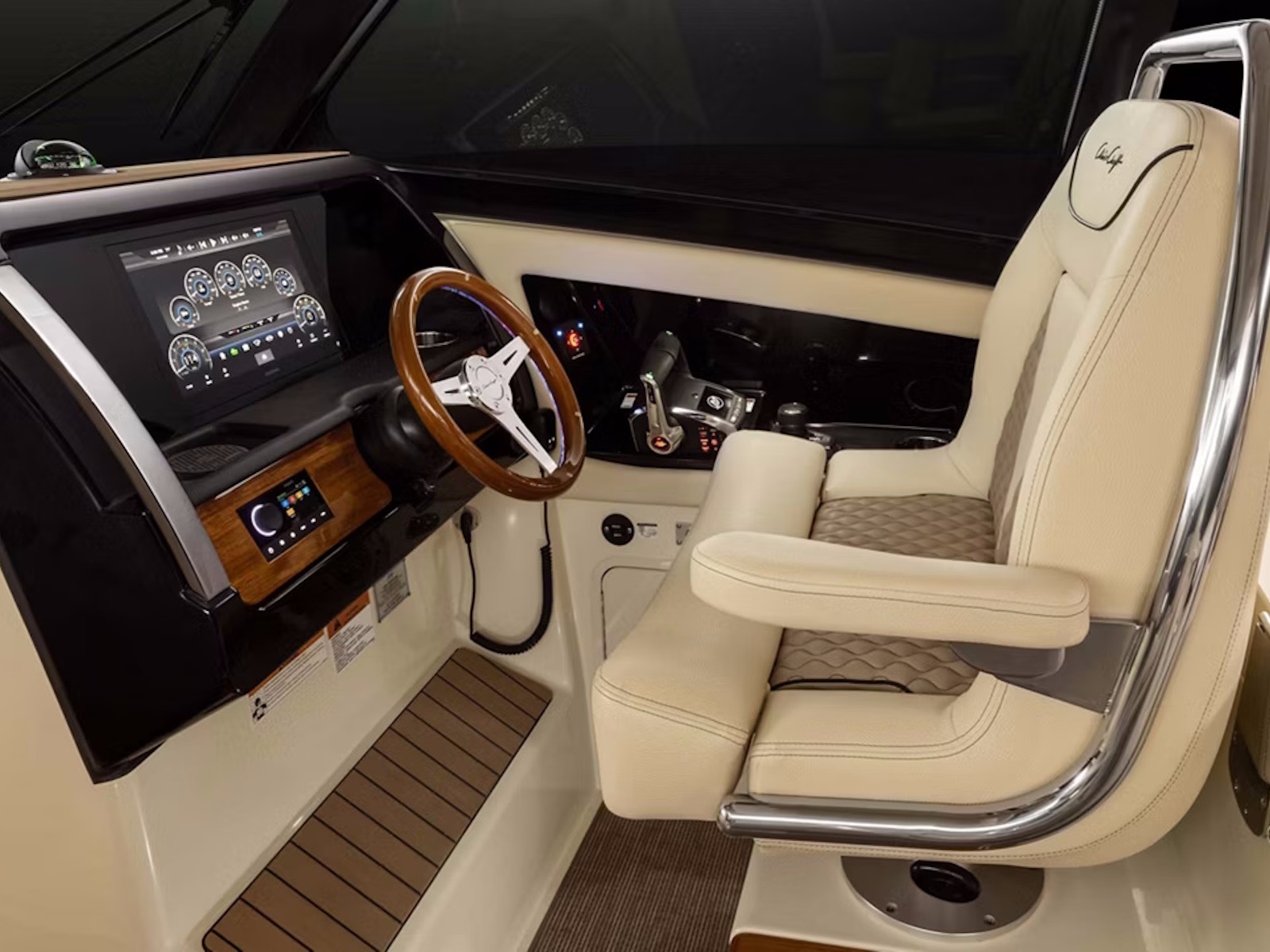 The Calypso 32 blends sophistication and style with the latest marine technology. Classic Chris-Craft styling runs from bow to stern, with stainless steel hardware, custom appointments, and our signature flared bow and deep-v hull. With Seakeeper Ride technology, inductive phone charging, and connectivity to the MyChris-Craft App all standard, this is truly a boat to marvel.