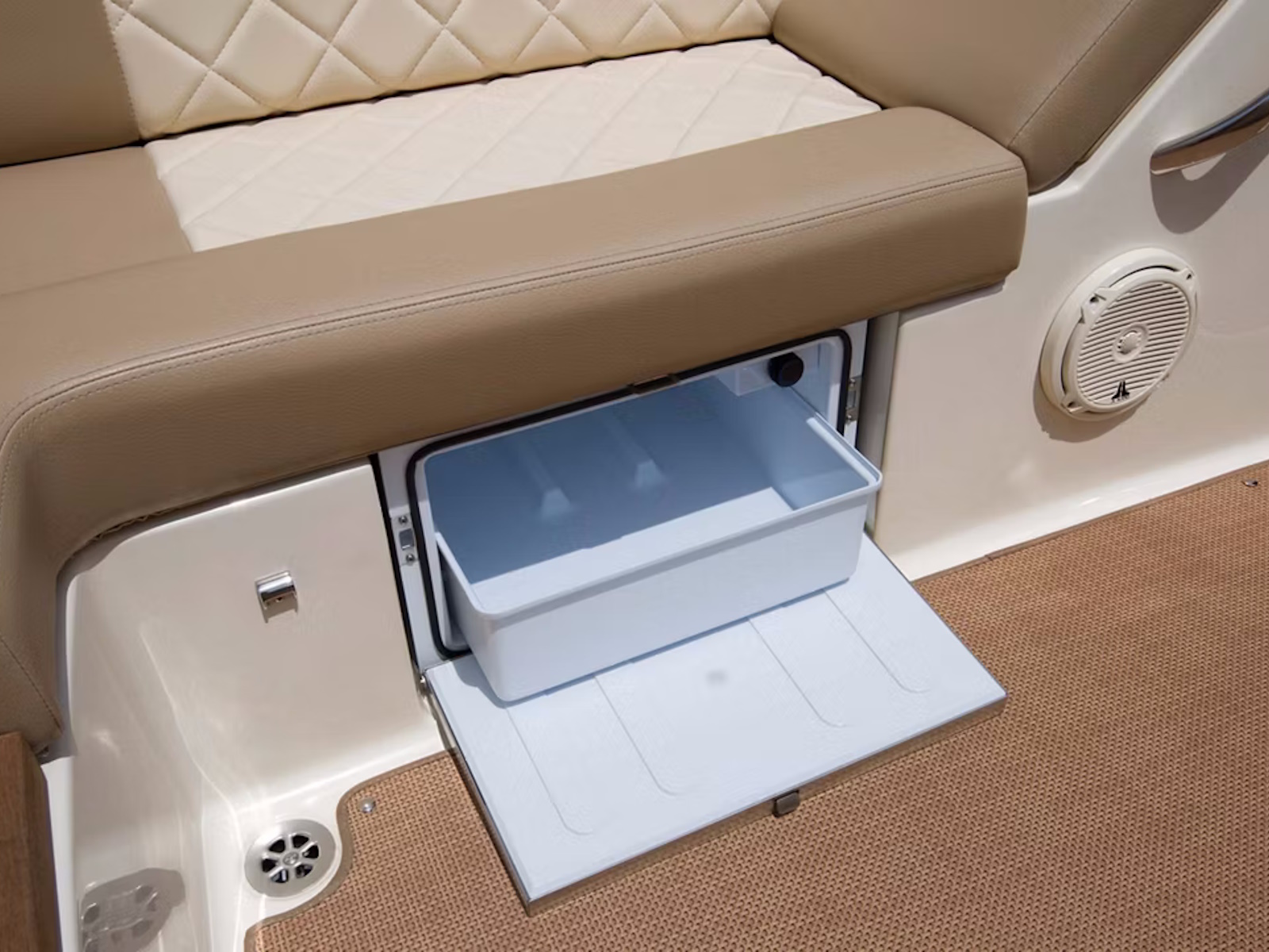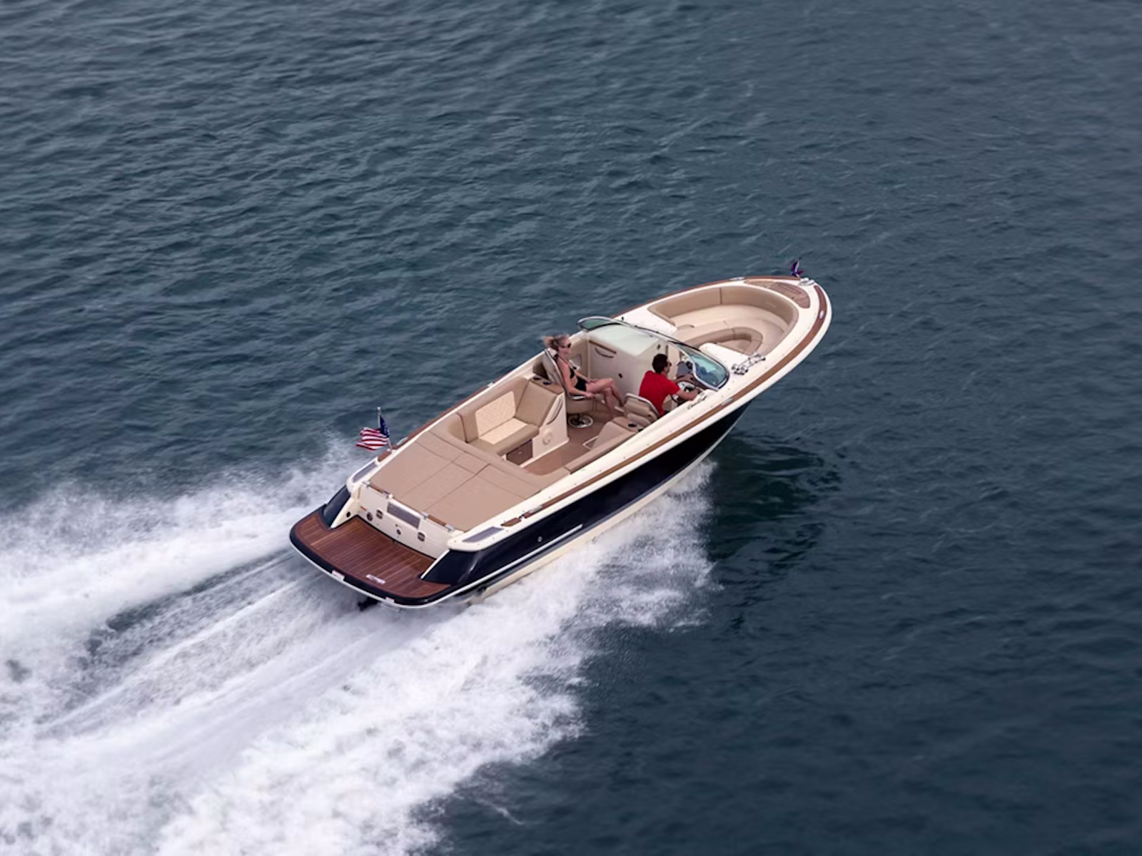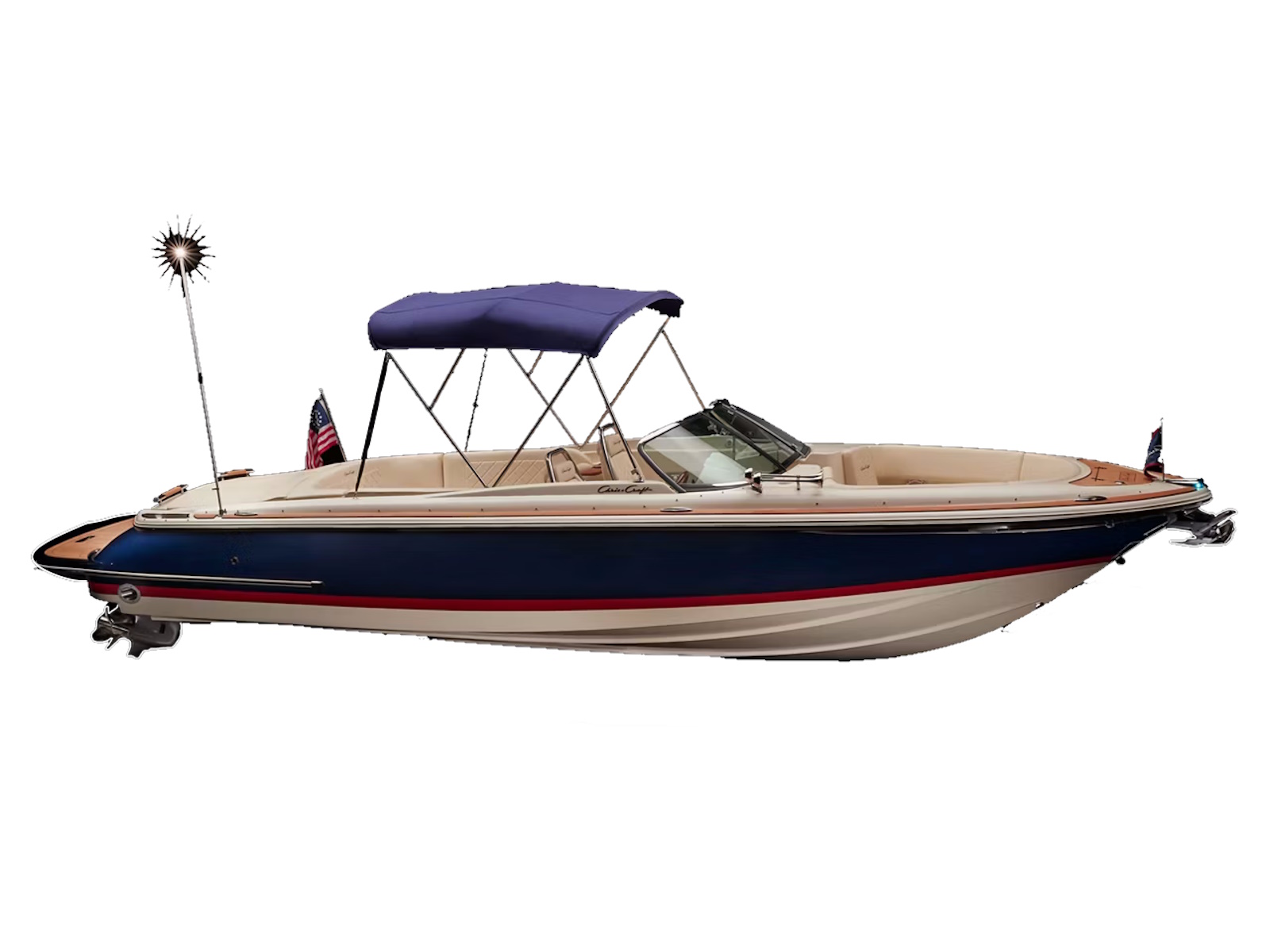 Enjoy plenty of storage, including areas specially designed to stow your fenders, anchor, and cooler. Integrated cupholders, flush-mounted stainless steel deck plates, teak grab rails, sleek pop-up cleats, and the classic dual trumpet horns all exemplify its Chris-Craft heritage.