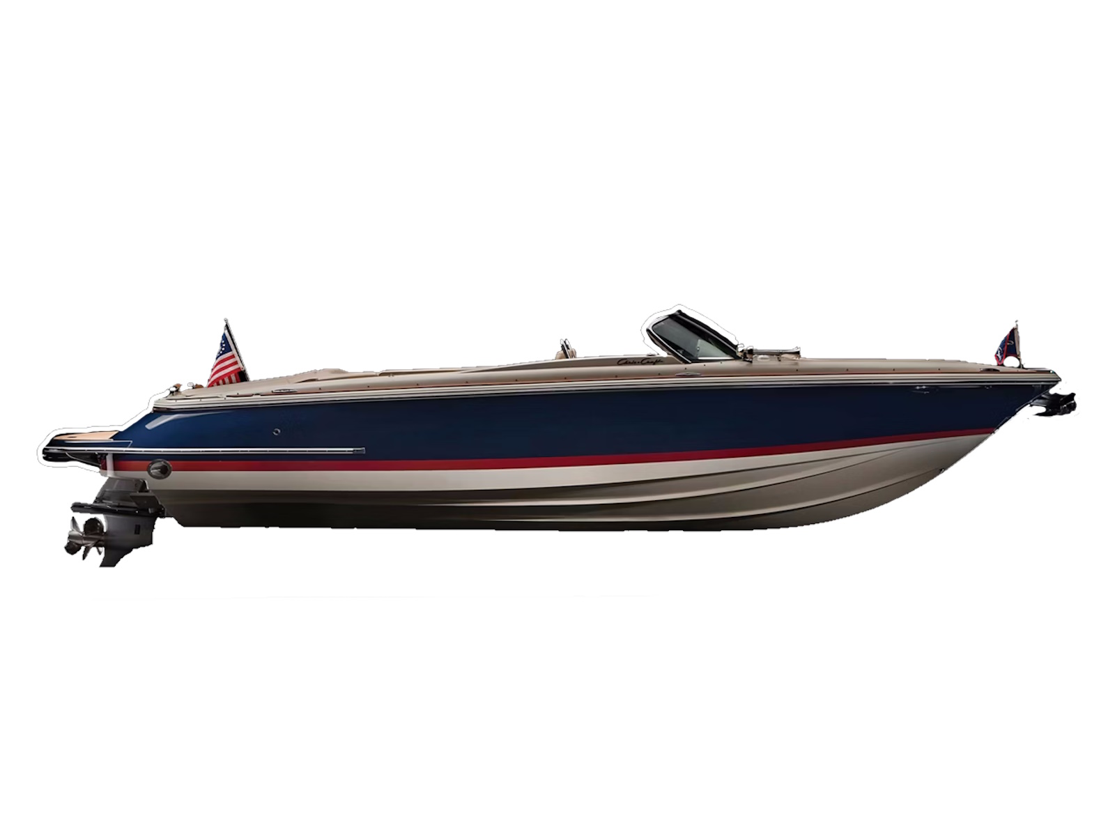 The Launch 27 artfully blends iconic Chris-Craft design with exceptional performance. Its exclusive hull design, featuring a reverse transom and signature flared bow, provides a legendary ride. You'll also find unique design and practical functionality from bow to stern.