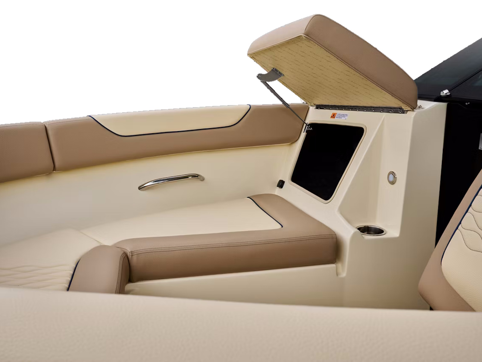 Configure the Sportster's seating layout with dual reversible helm seats. These multi-position seats offer the option to face either forward or backward. Convert these to face aft for optimal comfort while at rest.