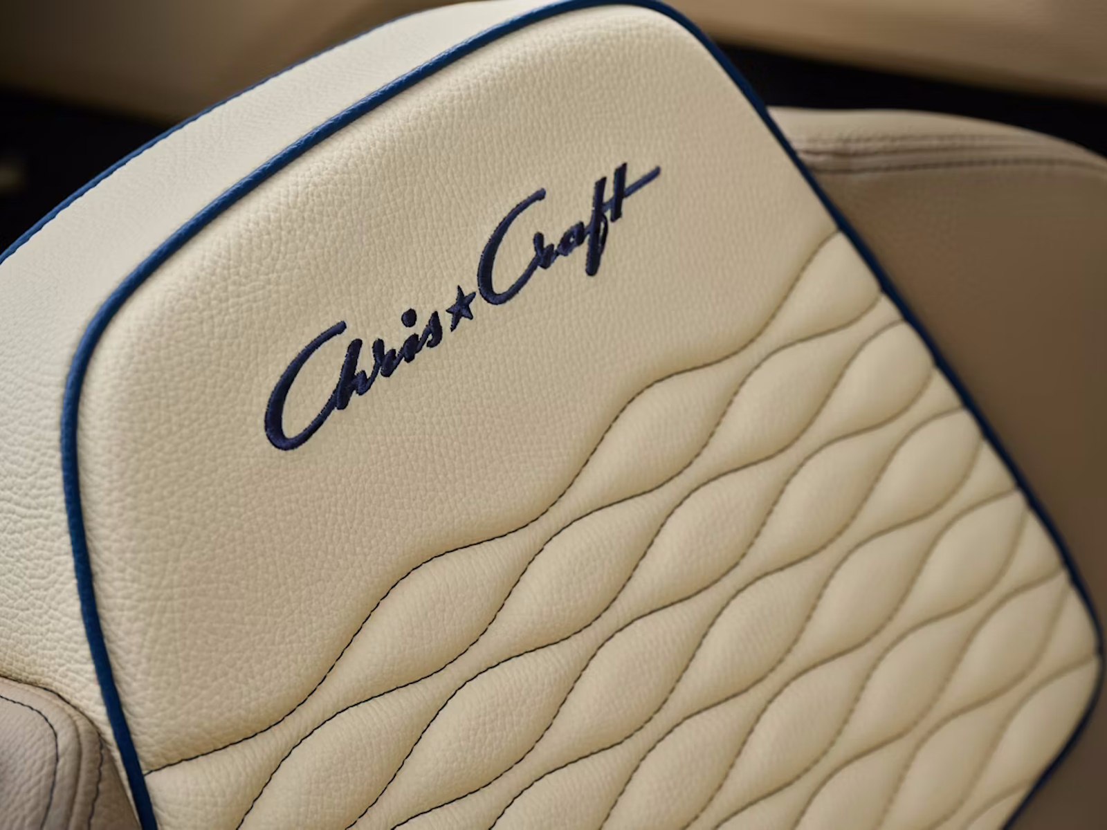 The Sportster 25 features a sleek dashboard with a custom Chris-Craft user interface to streamline navigation and controls. Enjoy teak accents and a leather wrapped stainless steel steering wheel.