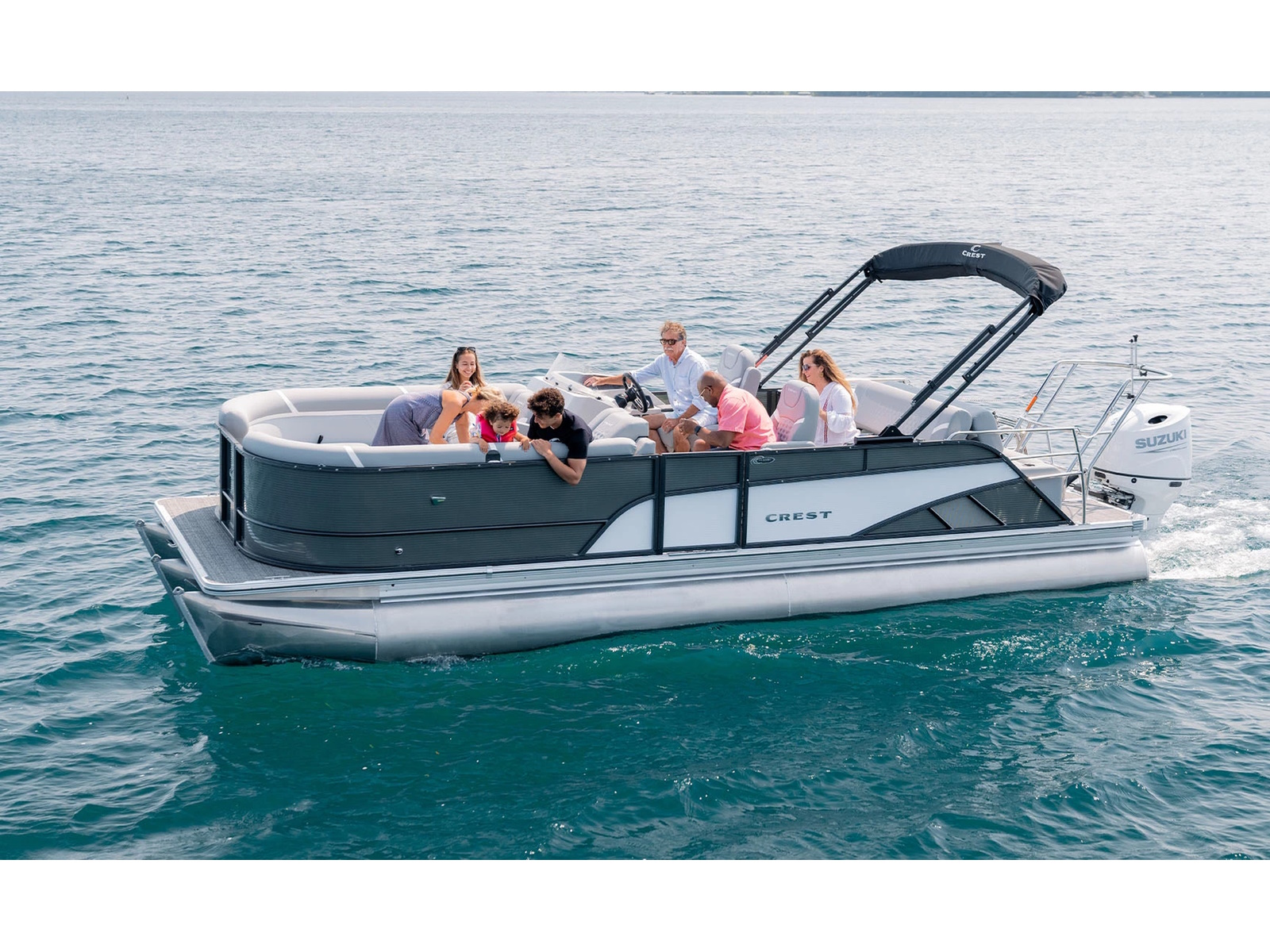 Designed with an abundance of amenities, the Classic Platinum delivers limitless possibilities to customize your ideal boat. Featuring a premium tow bar, higher horsepower options, and a larger fuel tank that can keep you out on the water longer, each boat delivers both performance and comfort. SoftTouch upholstery will keep your crew happy while quality tube, steering and power assist options help make the on-water experience even more enjoyable. Keeping the captain in mind, an elevated helm ensures docking and navigating your Crest with ease. This is your all-in-one solution for creating the best stories for every season.