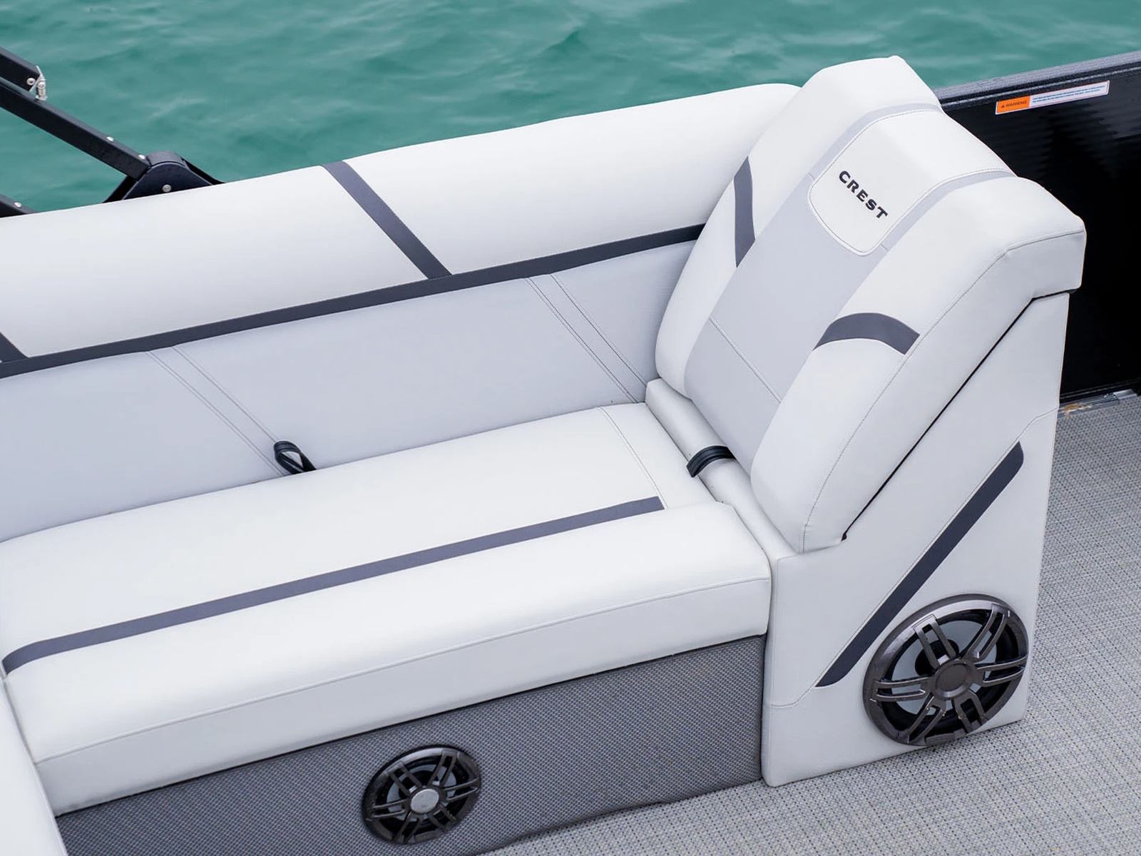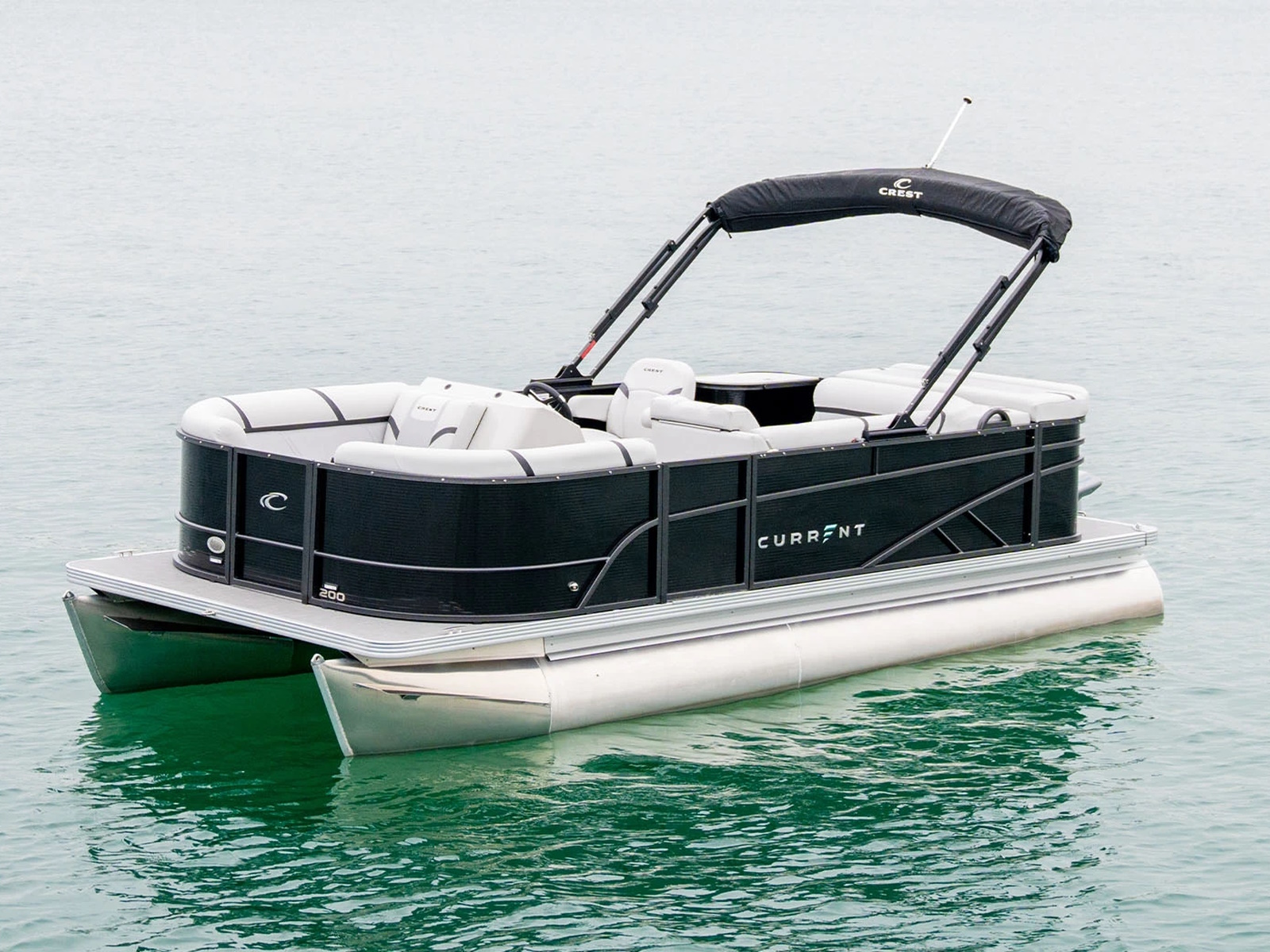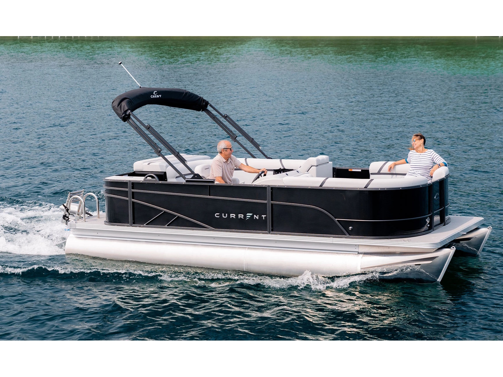 Both comfort and innovation are leveraged to deliver an electric pontoon that is superior to any other on the market. Direct-drive technology gives you efficient and clean power for less hassle and more time cruising quietly through your favorite waterways. The Crest Current comes well equipped with all the signature features, a spacious and comfortable captain’s chair, a roll-out bimini top, USB ports, and wireless phone chargers. You’ll find the same quality styling in the fencing and interior options to match. Also included is LED lighting all around so you can dock and take off safely and in style. With superior comfort and the highest quality construction, this electric pontoon boat delivers thoughtful and functional features only Crest can provide.