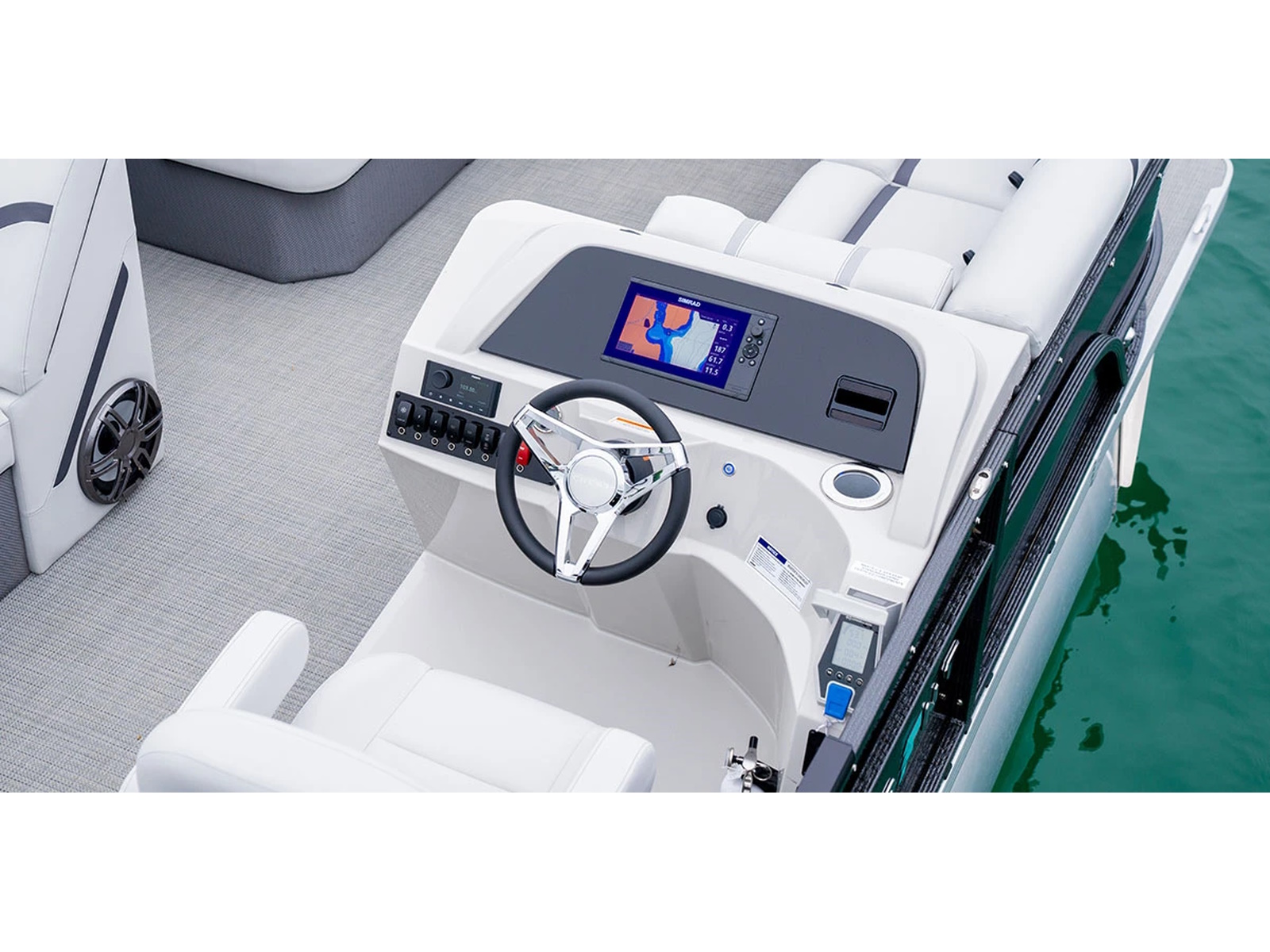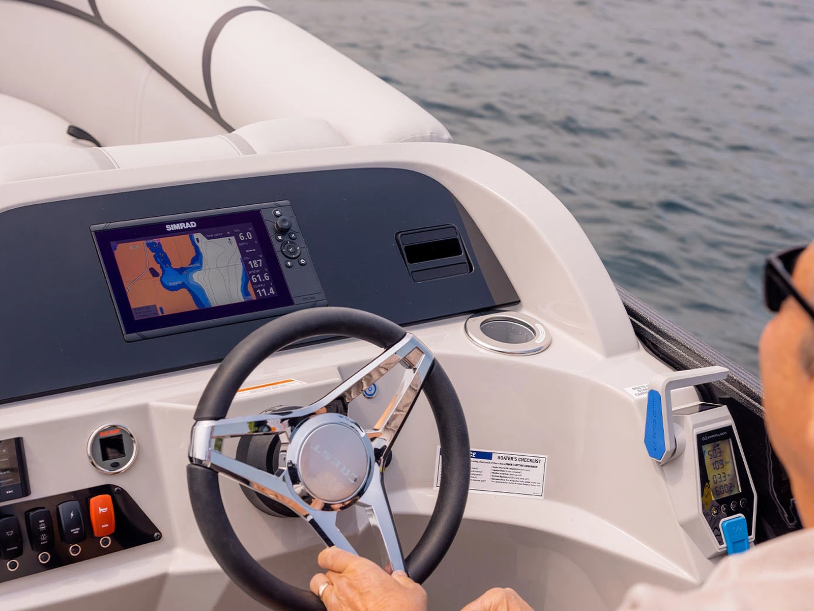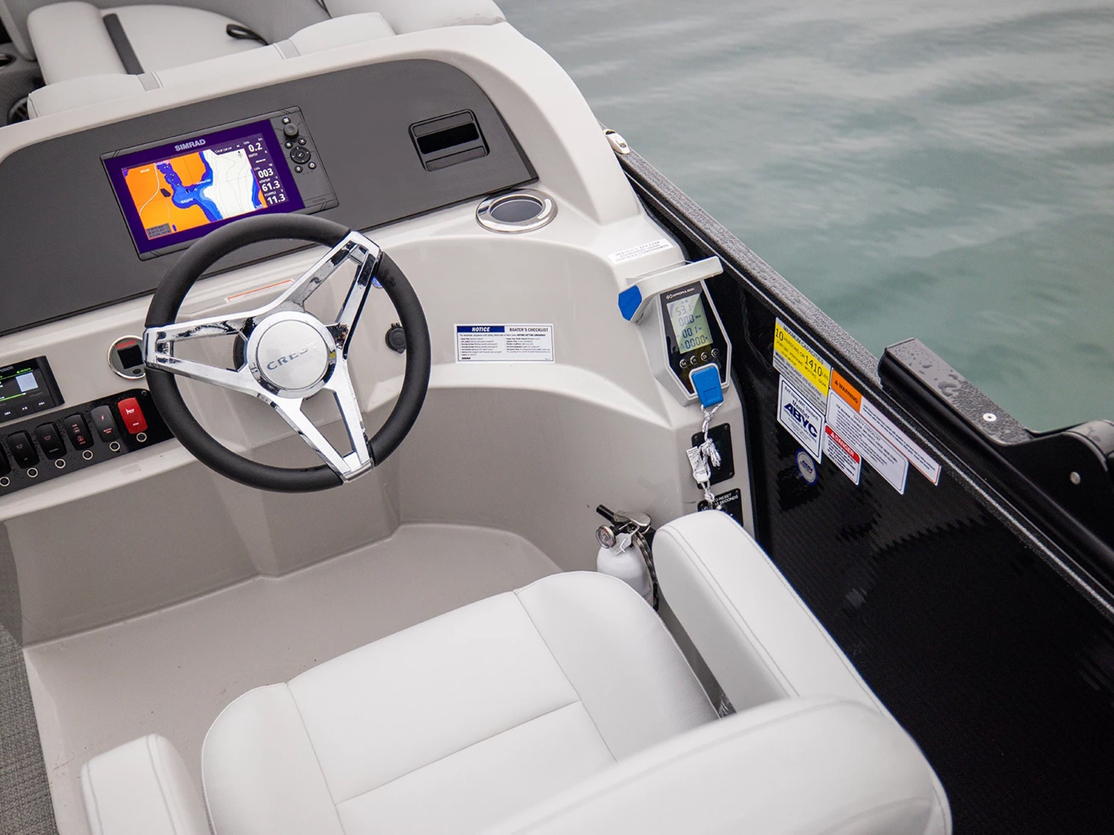 Both comfort and innovation are leveraged to deliver an electric pontoon that is superior to any other on the market. Direct-drive technology gives you efficient and clean power for less hassle and more time cruising quietly through your favorite waterways. The Crest Current comes well equipped with all the signature features, a spacious and comfortable captain’s chair, a roll-out bimini top, USB ports, and wireless phone chargers. You’ll find the same quality styling in the fencing and interior options to match. Also included is LED lighting all around so you can dock and take off safely and in style. With superior comfort and the highest quality construction, this electric pontoon boat delivers thoughtful and functional features only Crest can provide.