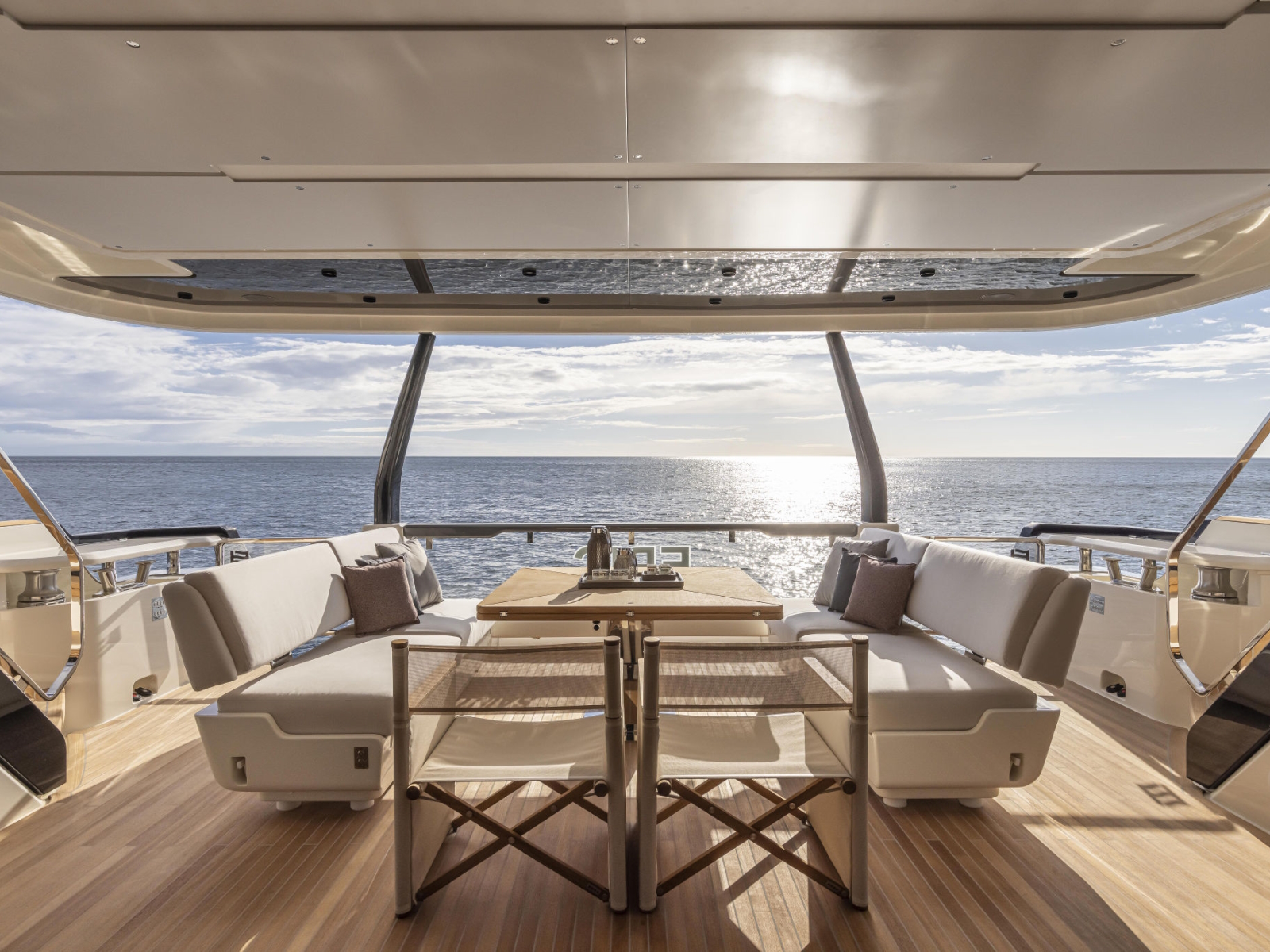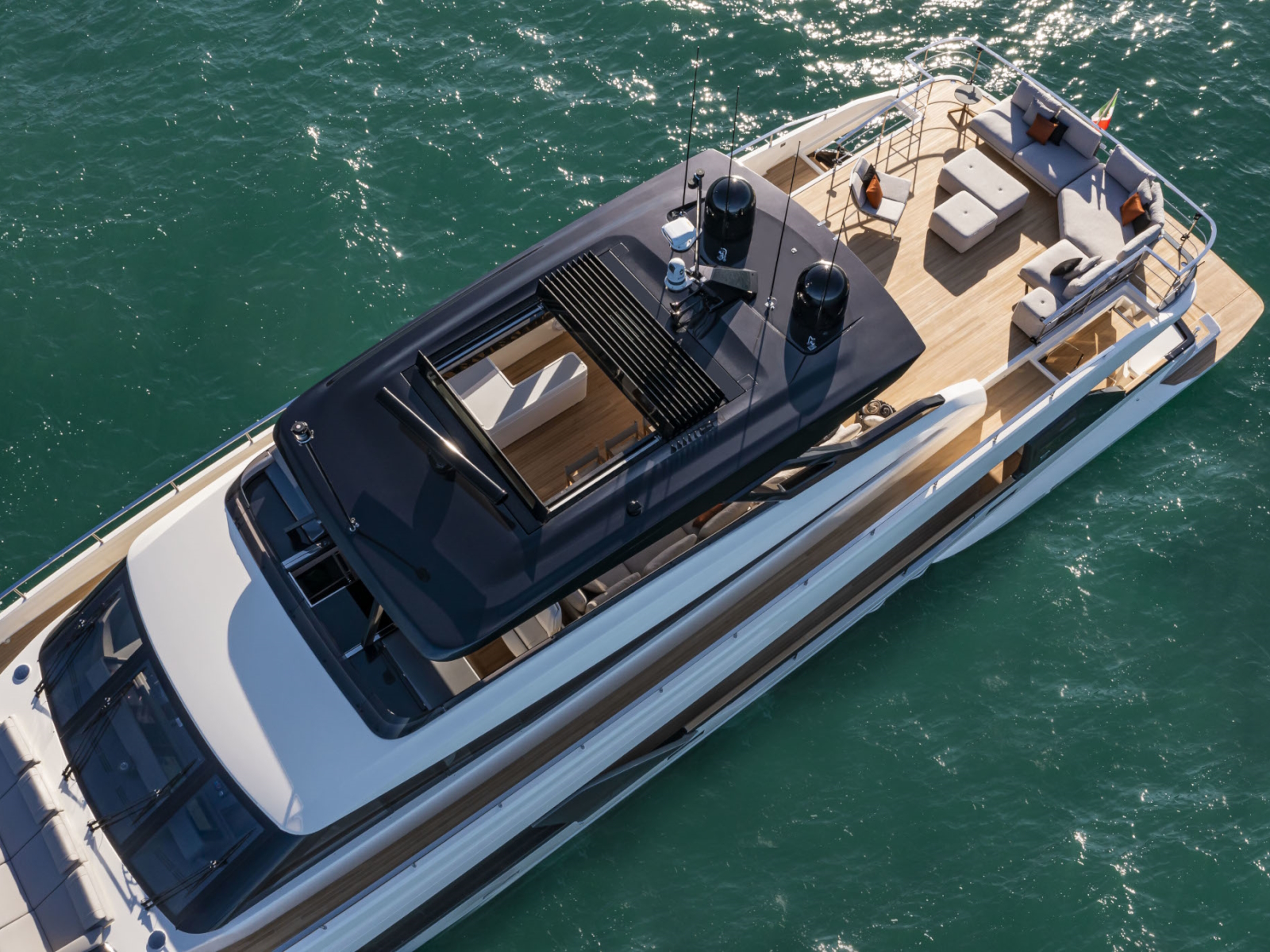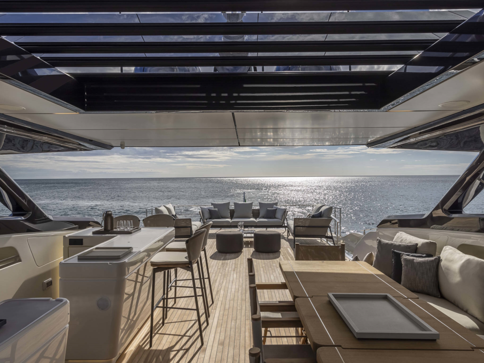 Developing the concept for a new project is, above all, a journey. It is an experience where the only limit is your imagination, on a quest for sensations, for materials, geometries and forms – to express the essence of a style that must be utterly unique, in every aspect. We have not settled for dreaming up an ingenious concept with state-of-the-art technical solutions, increasingly inspired interiors, and living spaces of unprecedented comfort. We pushed ahead, even further, in space and time. Until we were absolutely certain that we had found the new essence of Ferretti Yachts, the quintessence of wellbeing and style.