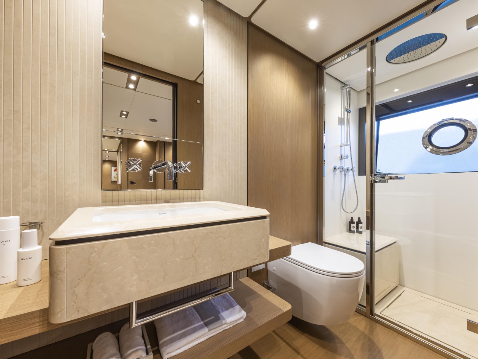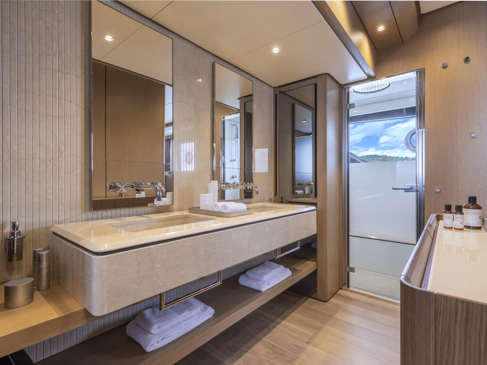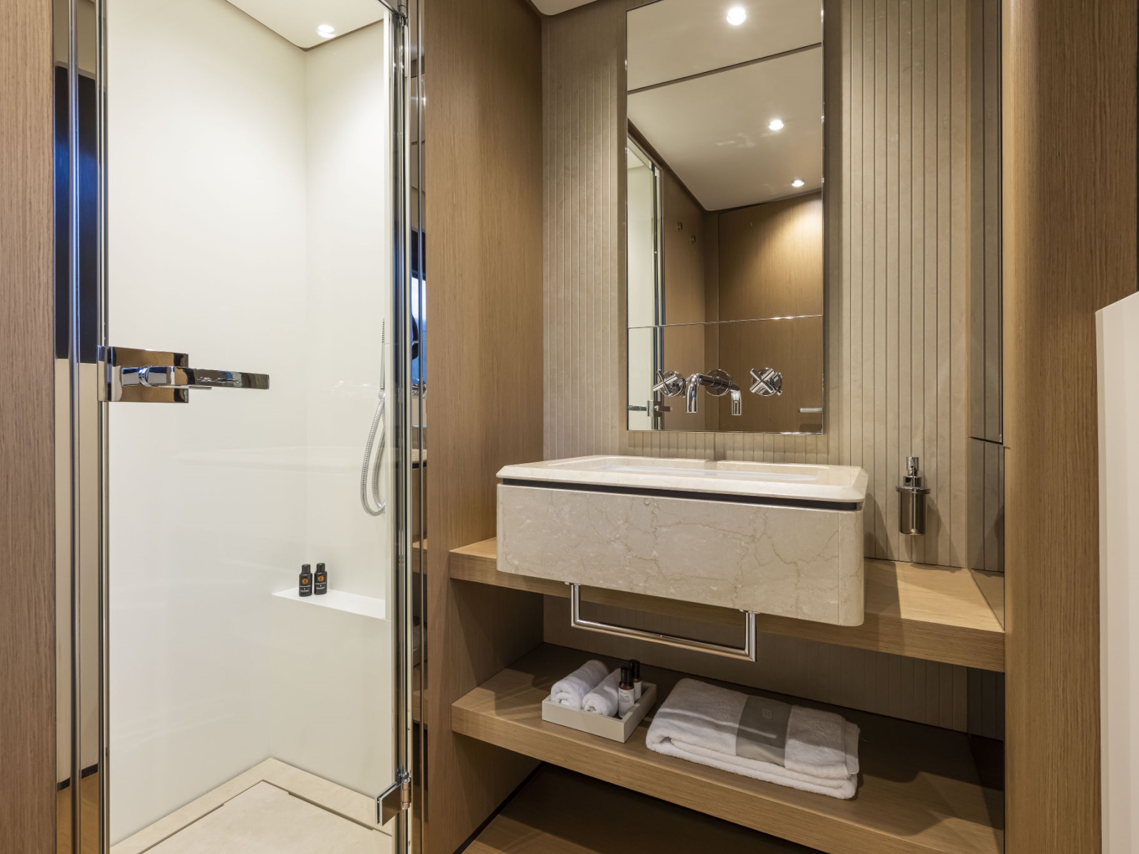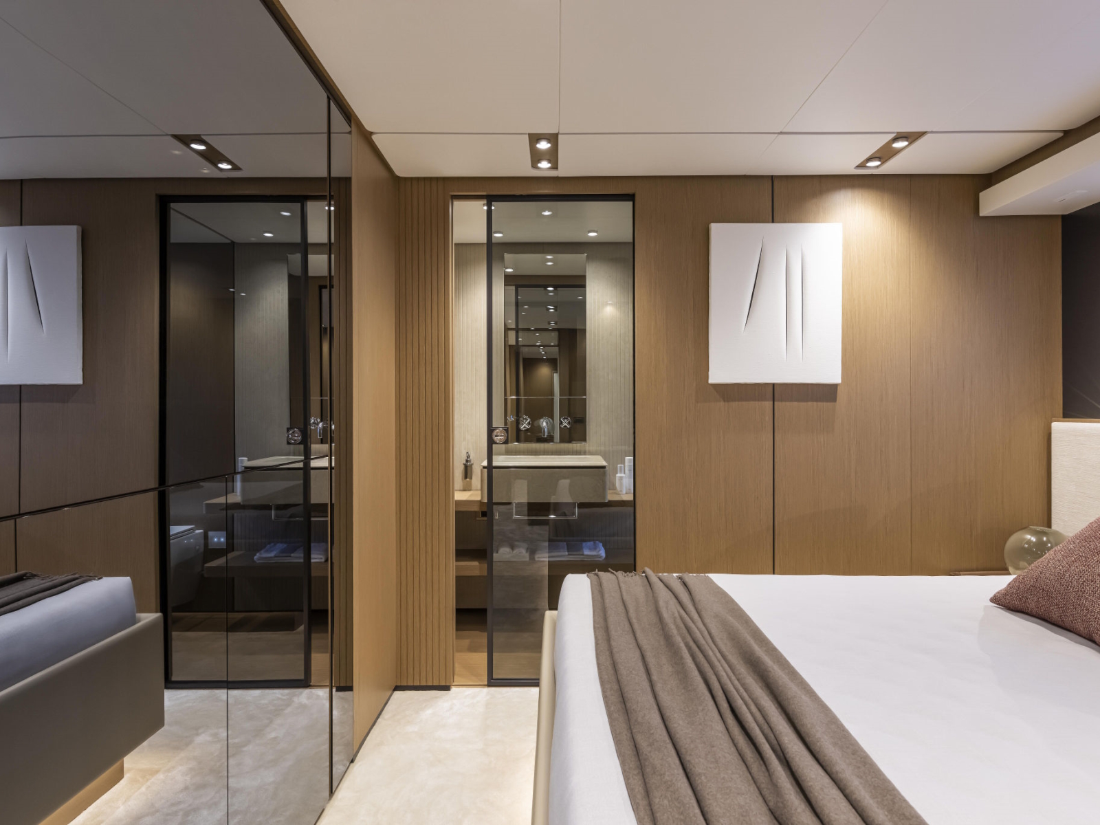 Developing the concept for a new project is, above all, a journey. It is an experience where the only limit is your imagination, on a quest for sensations, for materials, geometries and forms – to express the essence of a style that must be utterly unique, in every aspect. We have not settled for dreaming up an ingenious concept with state-of-the-art technical solutions, increasingly inspired interiors, and living spaces of unprecedented comfort. We pushed ahead, even further, in space and time. Until we were absolutely certain that we had found the new essence of Ferretti Yachts, the quintessence of wellbeing and style.