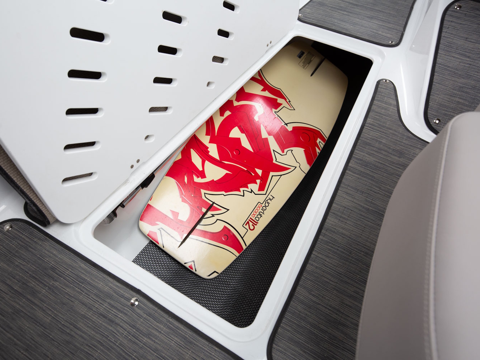 - Ski locker, in-floor, molded fiberglass finish, w/mat