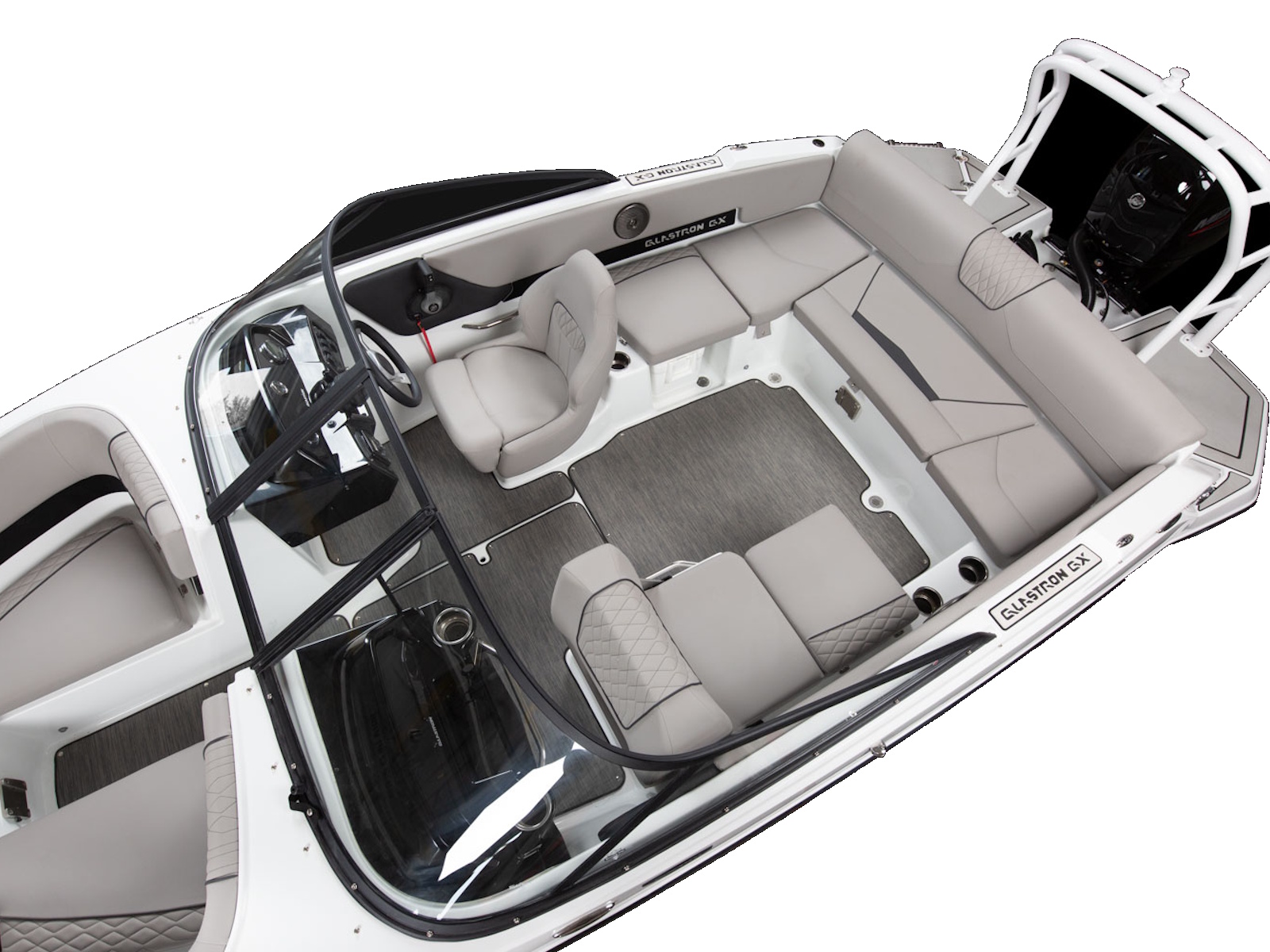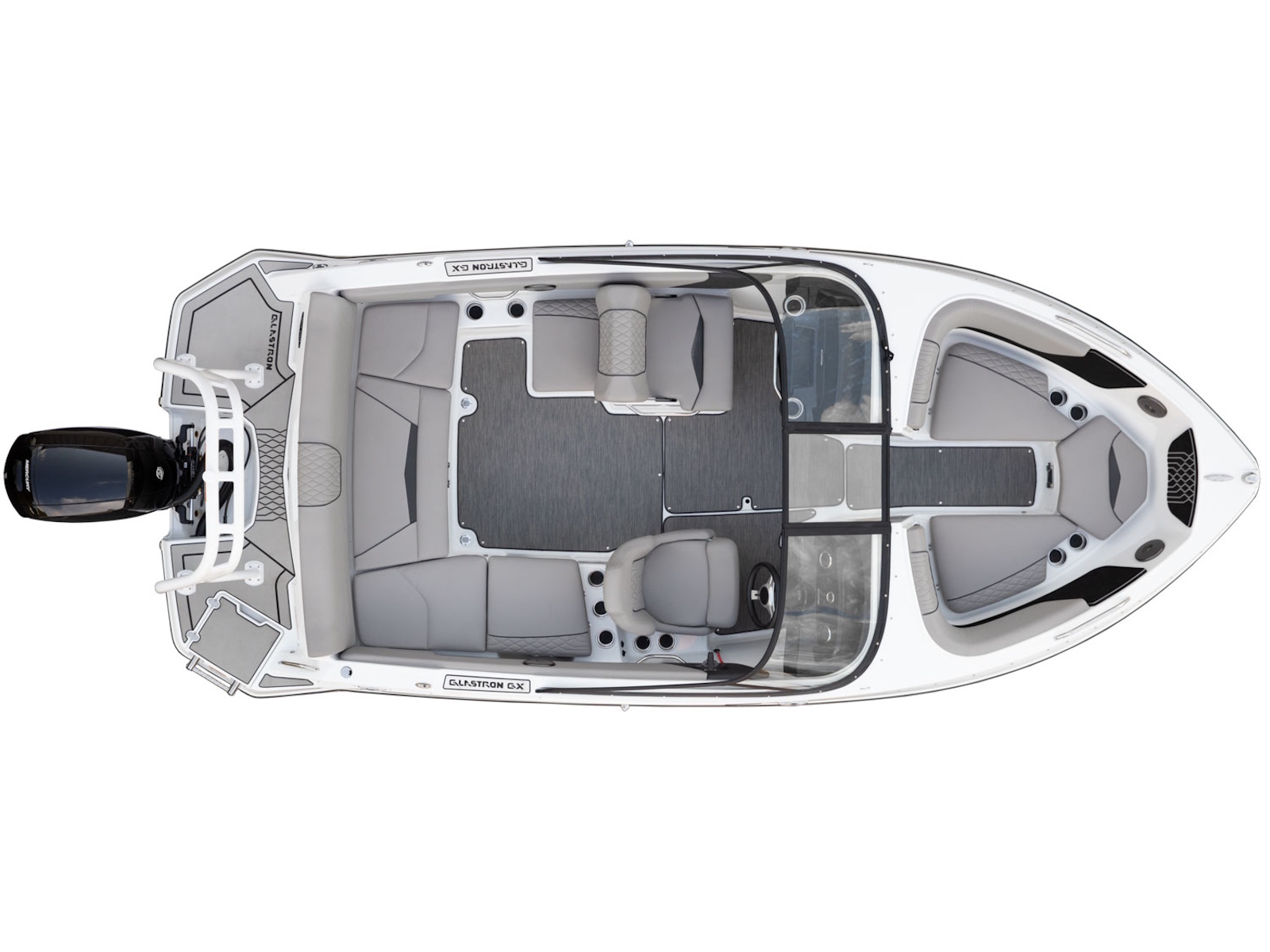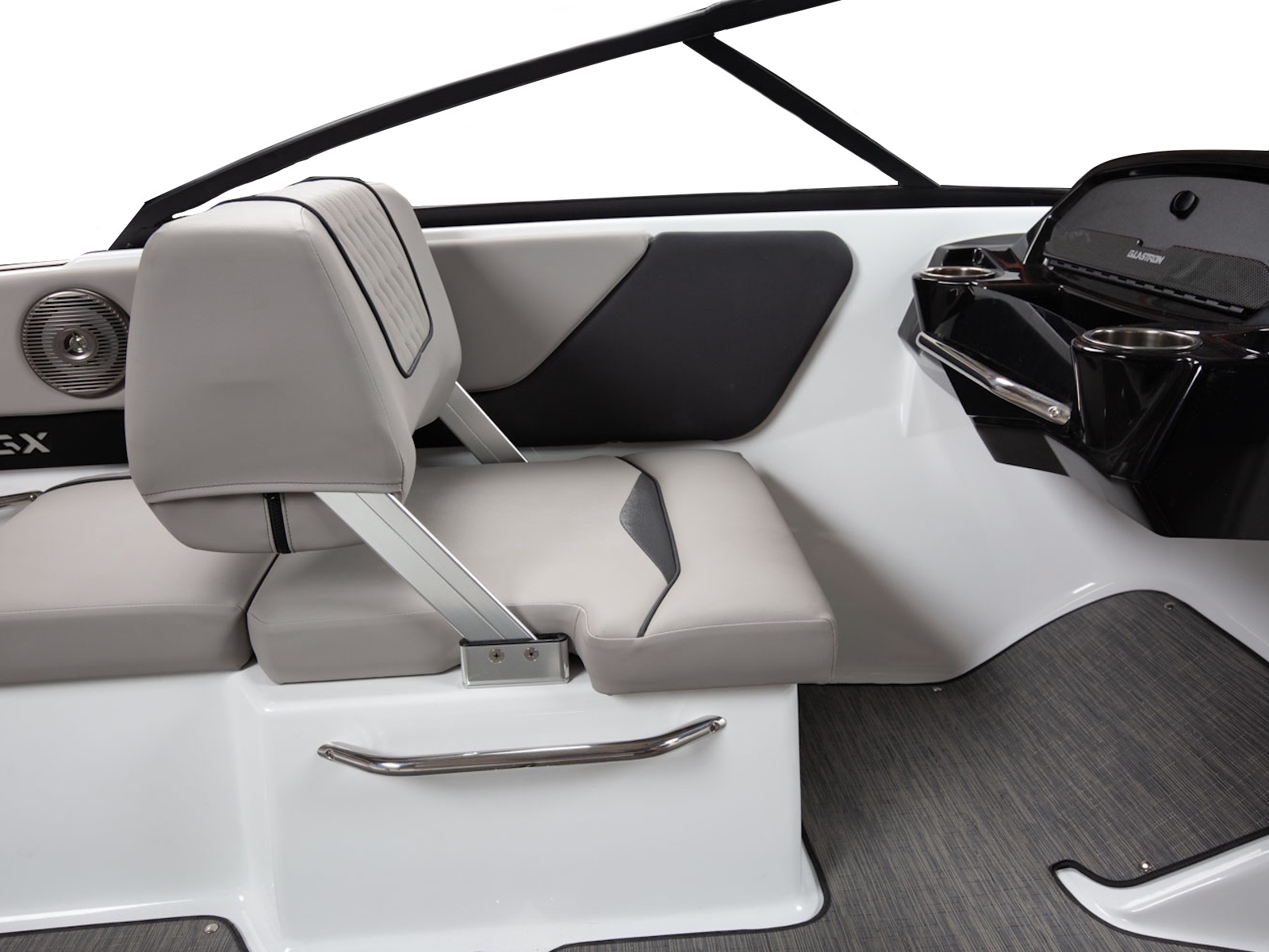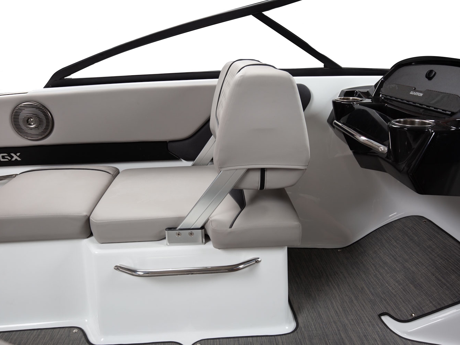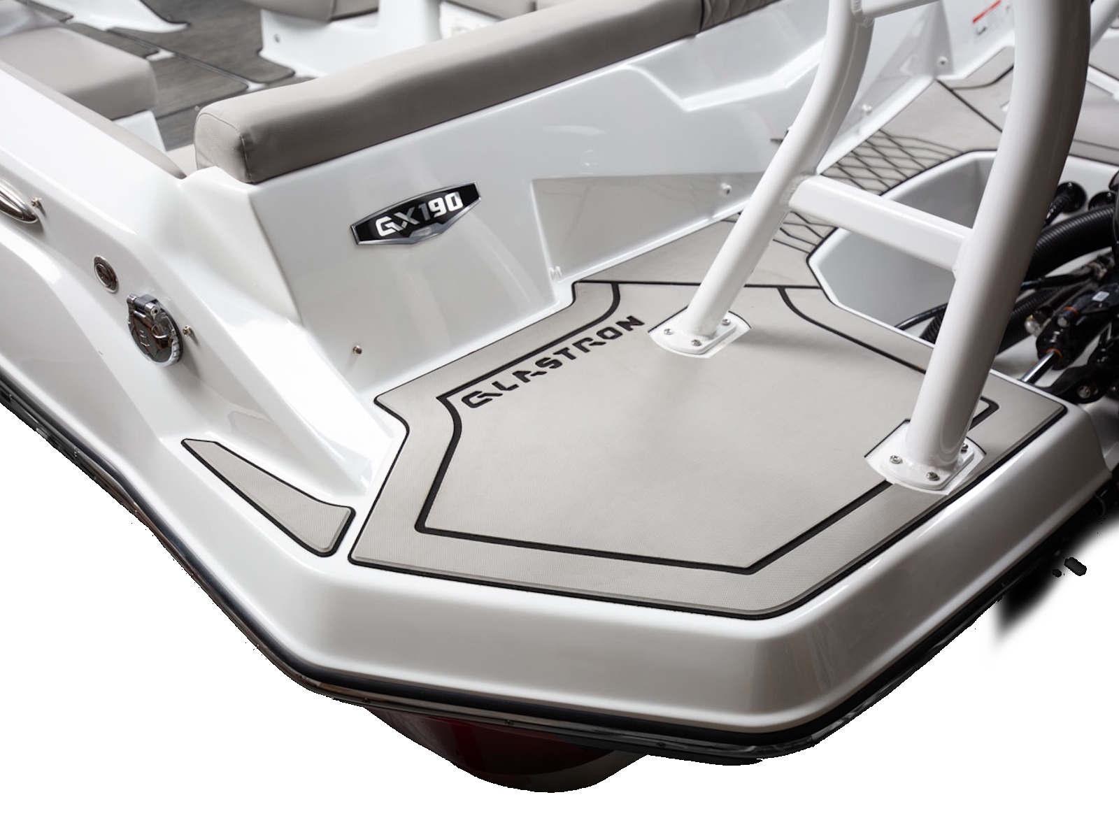 The GX 190 respects Glastron's legacy with the classic sweep spear we all love. And comfort is king with wrap-around backrest in the bow, a spacious cockpit, and a swim platform; you can walk all the way across – indeed, a rare find on an OB!