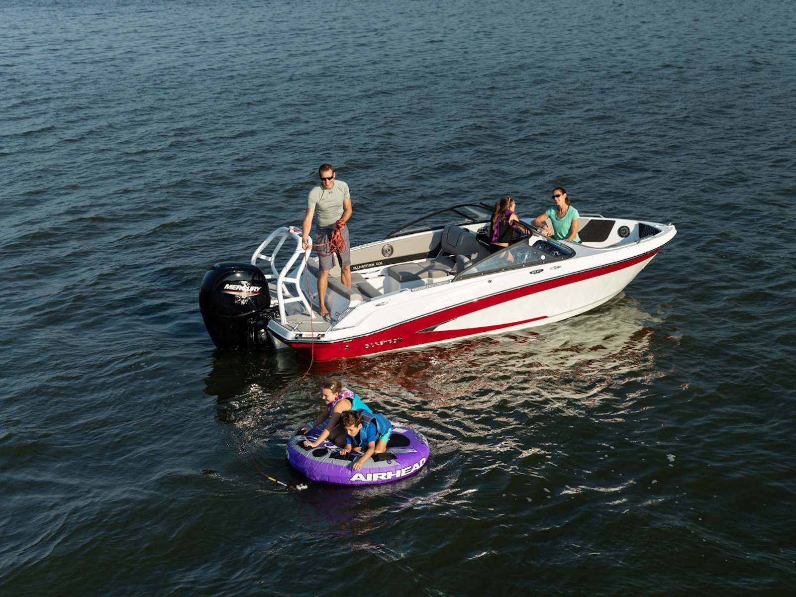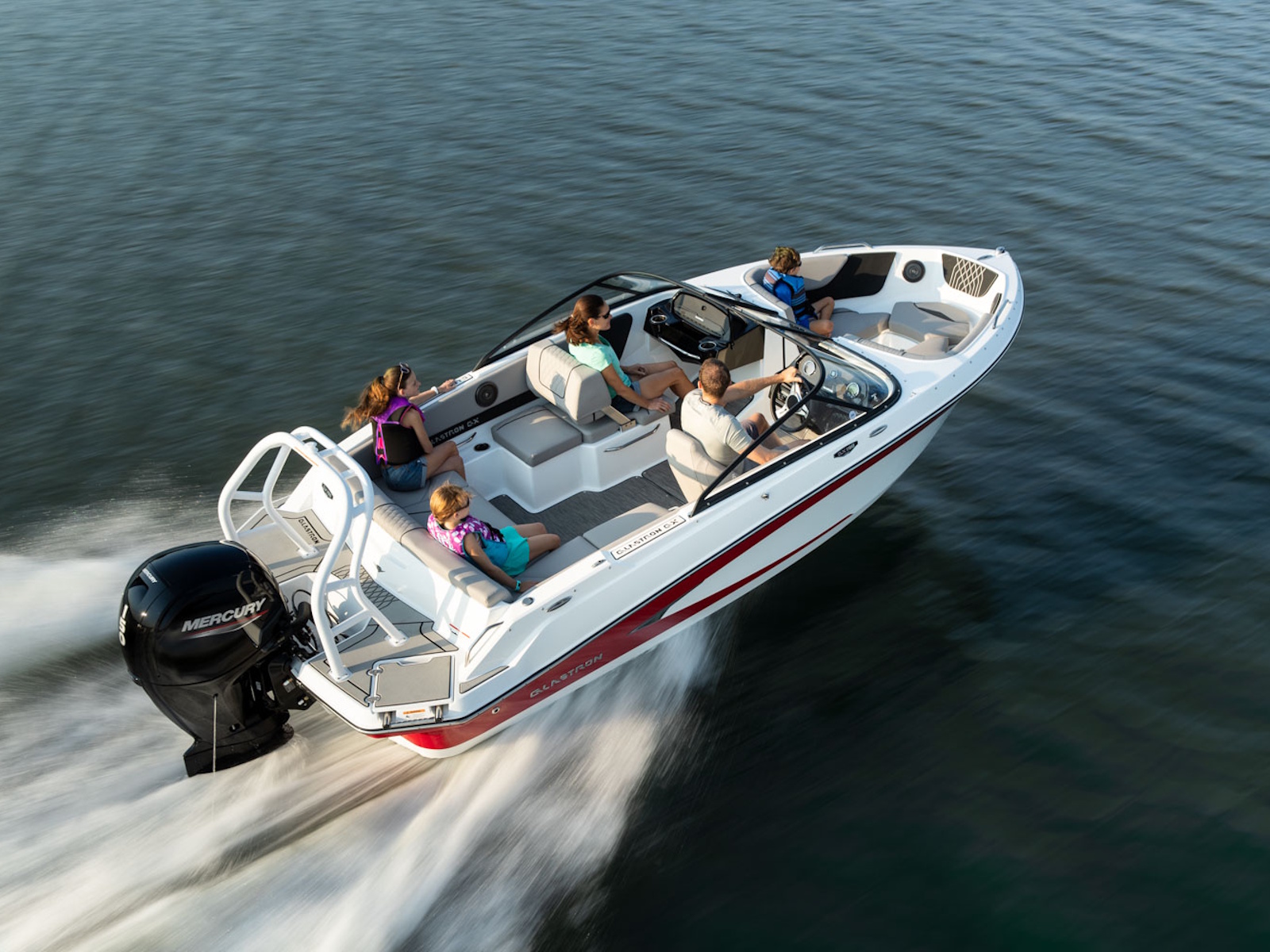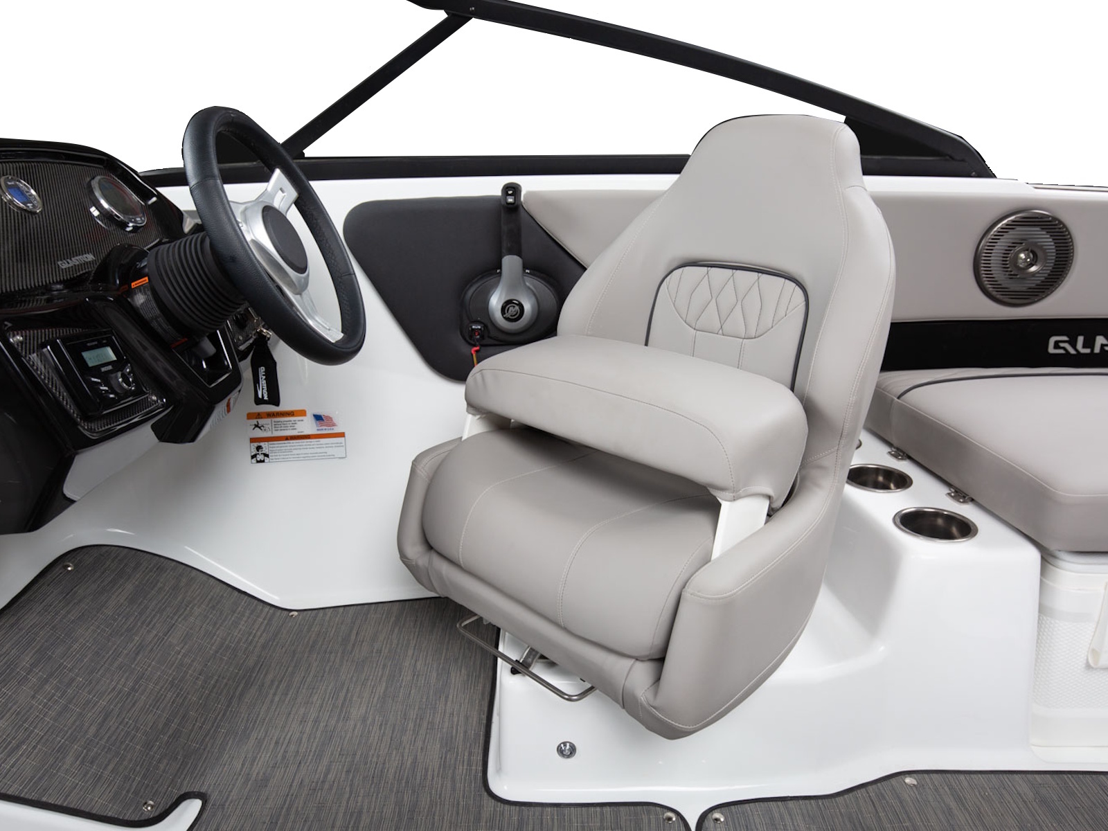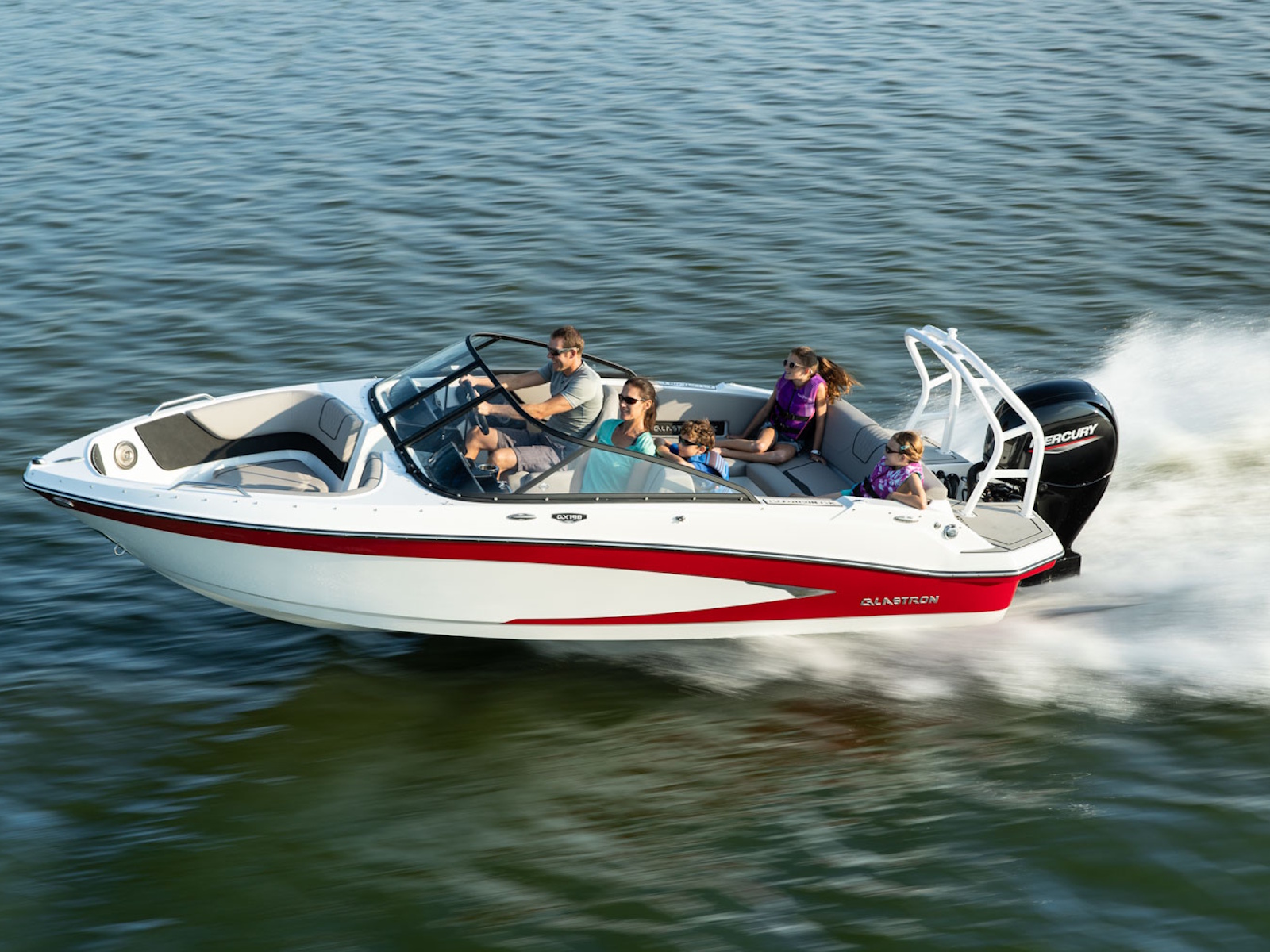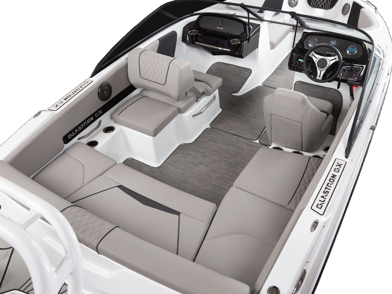 The GX 190 respects Glastron's legacy with the classic sweep spear we all love. And comfort is king with wrap-around backrest in the bow, a spacious cockpit, and a swim platform; you can walk all the way across – indeed, a rare find on an OB!