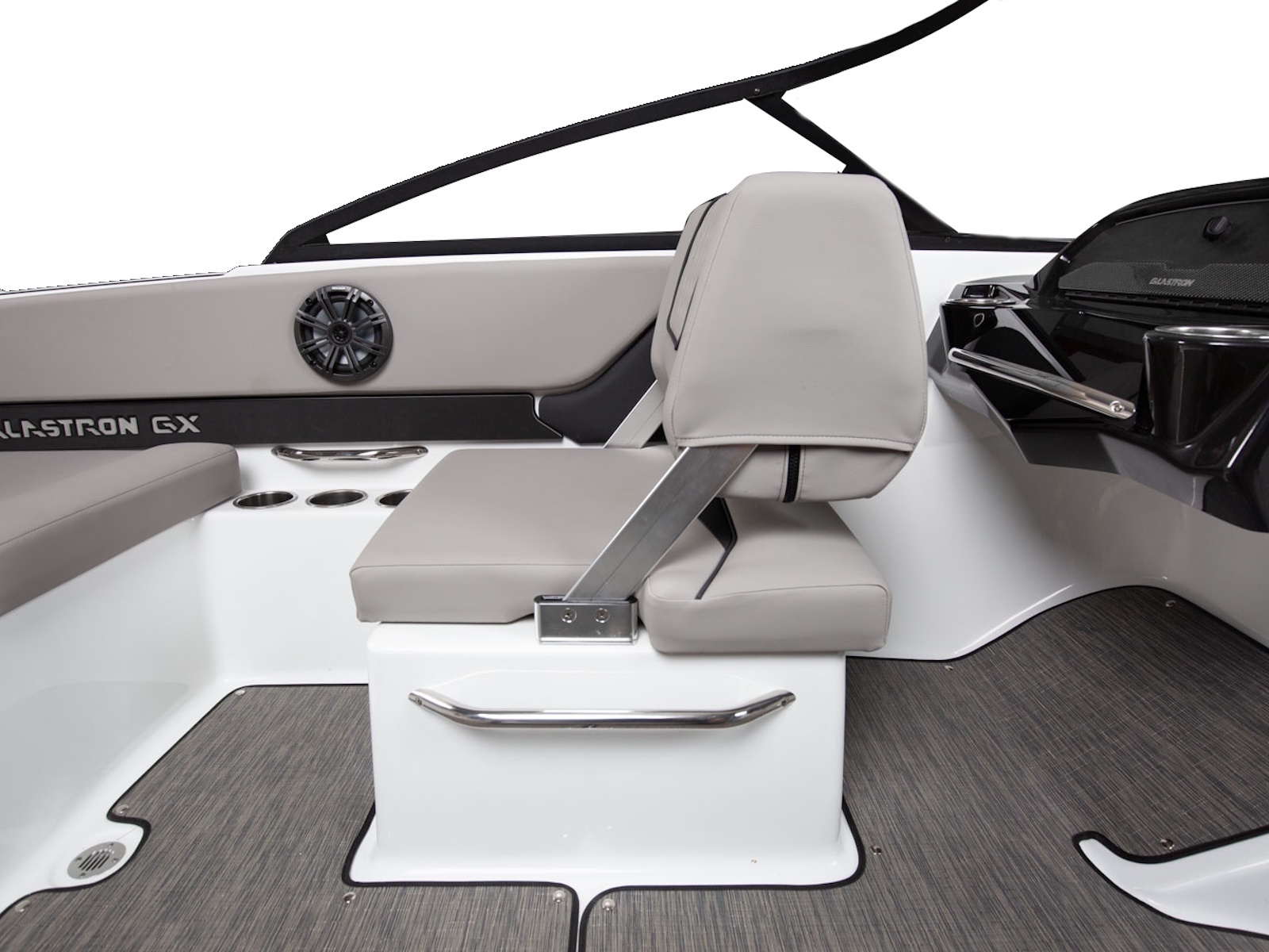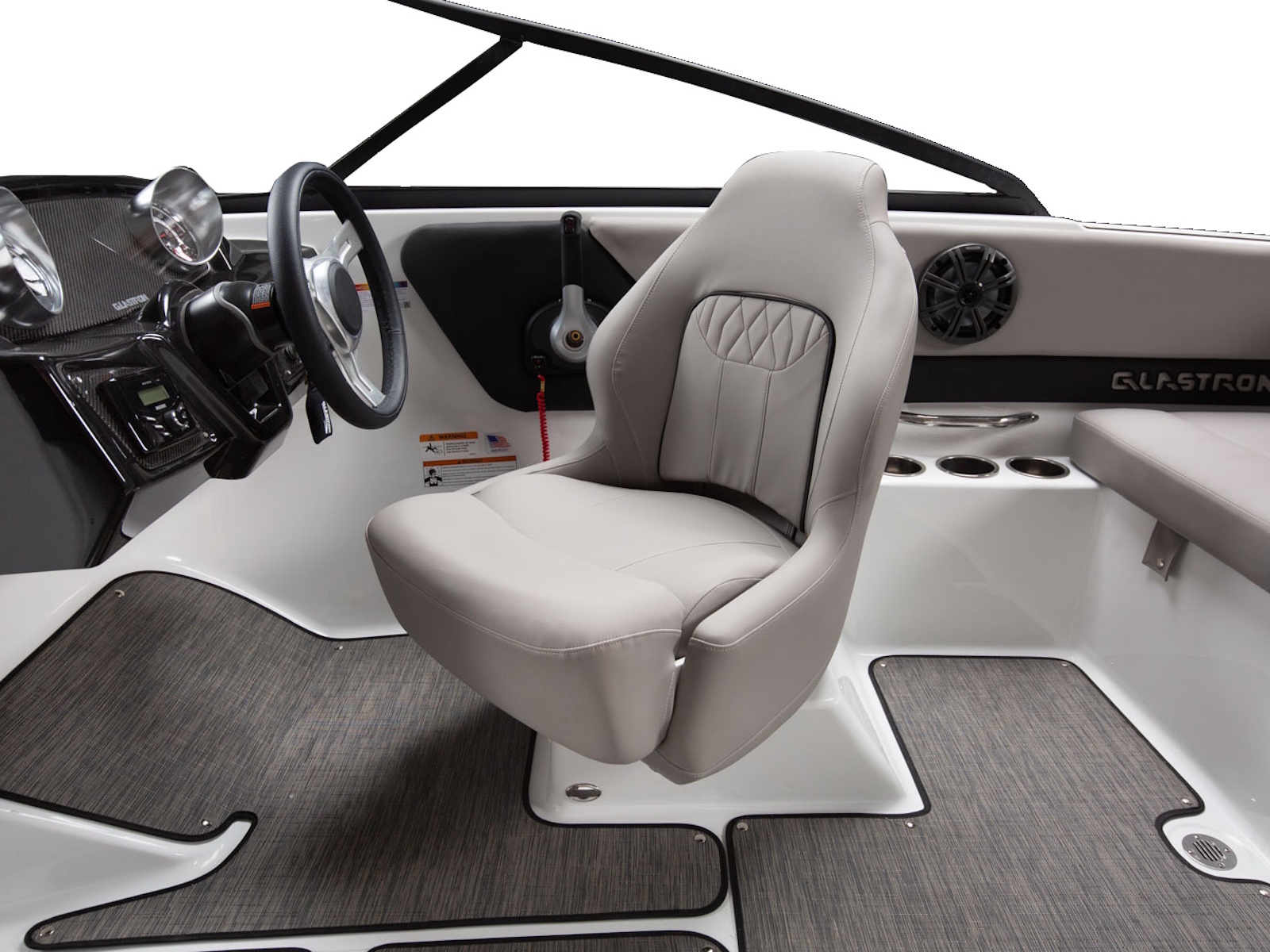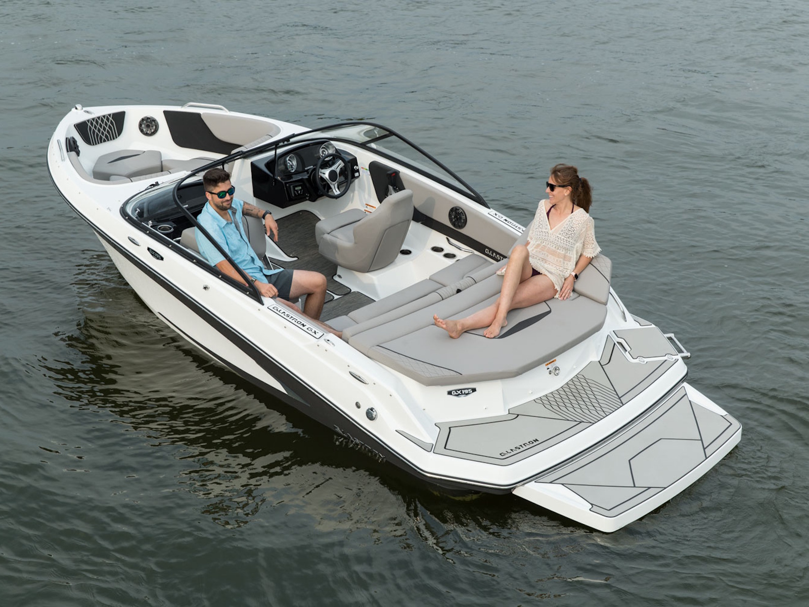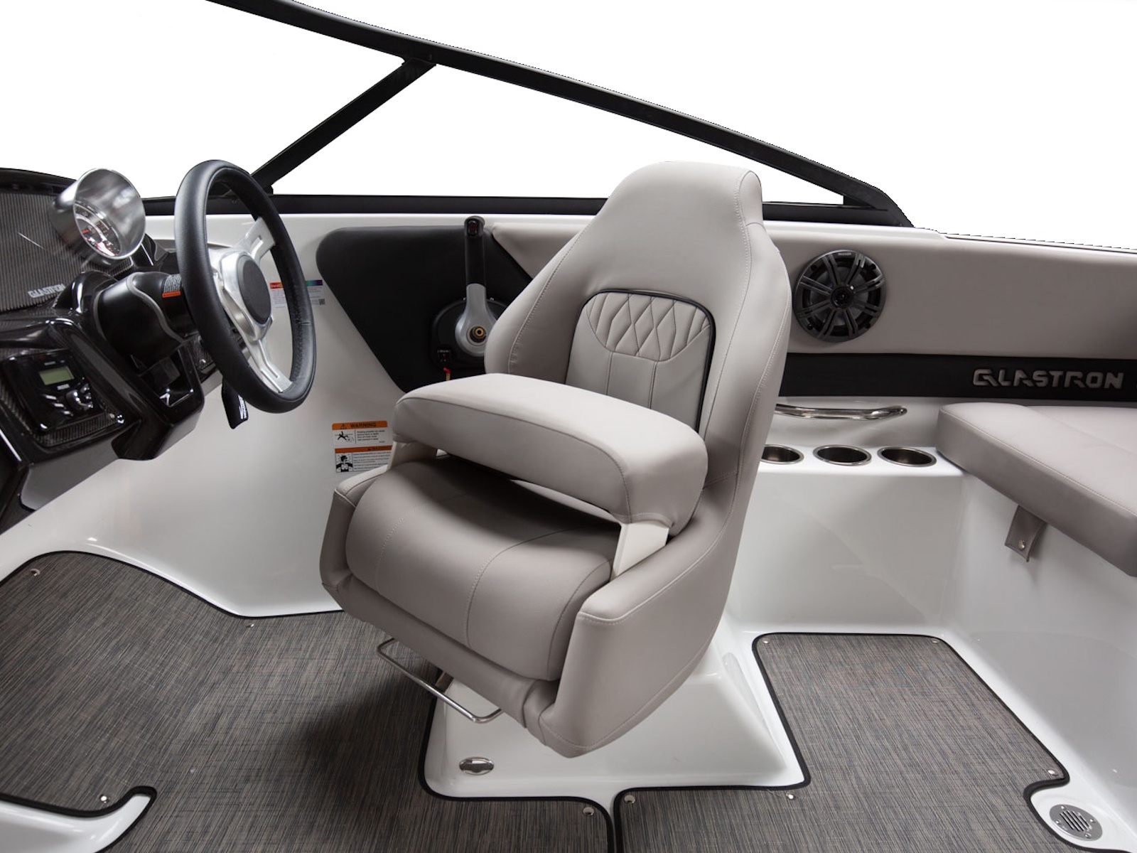 Glastron makes your time on the water enjoyable by thinking about all the small details, built-in cooler and cushion storage, finished under-seat storage, stainless hardware, beautiful, resilient upholstery, full-width swim platform with side-step and ladder. Simple. Comfortable. Usable.