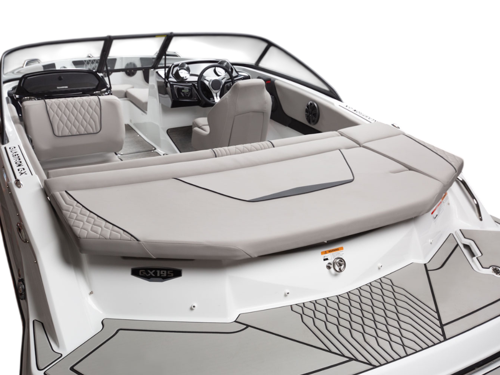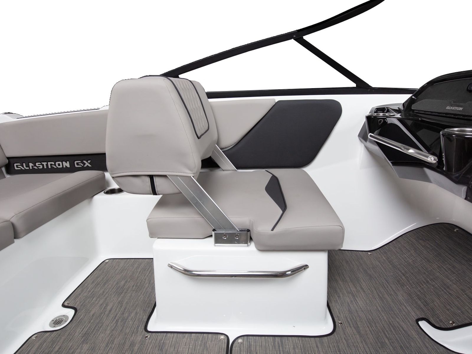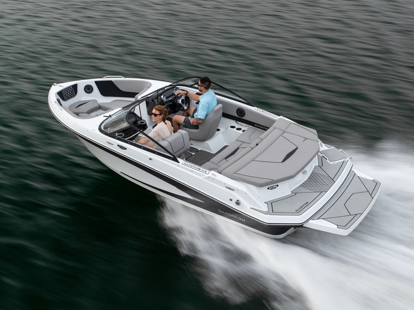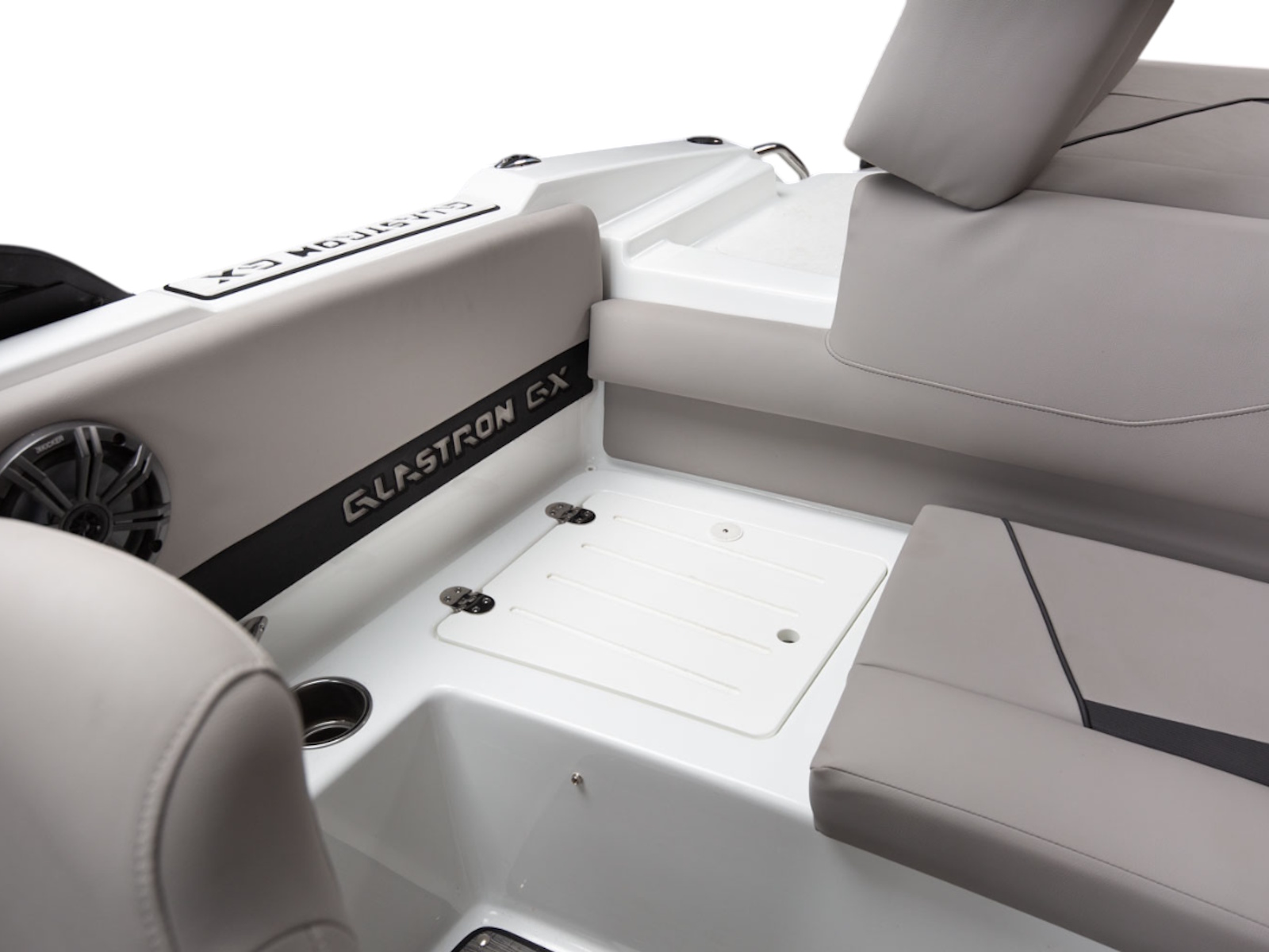 Glastron makes your time on the water enjoyable by thinking about all the small details, built-in cooler and cushion storage, finished under-seat storage, stainless hardware, beautiful, resilient upholstery, full-width swim platform with side-step and ladder. Simple. Comfortable. Usable.
