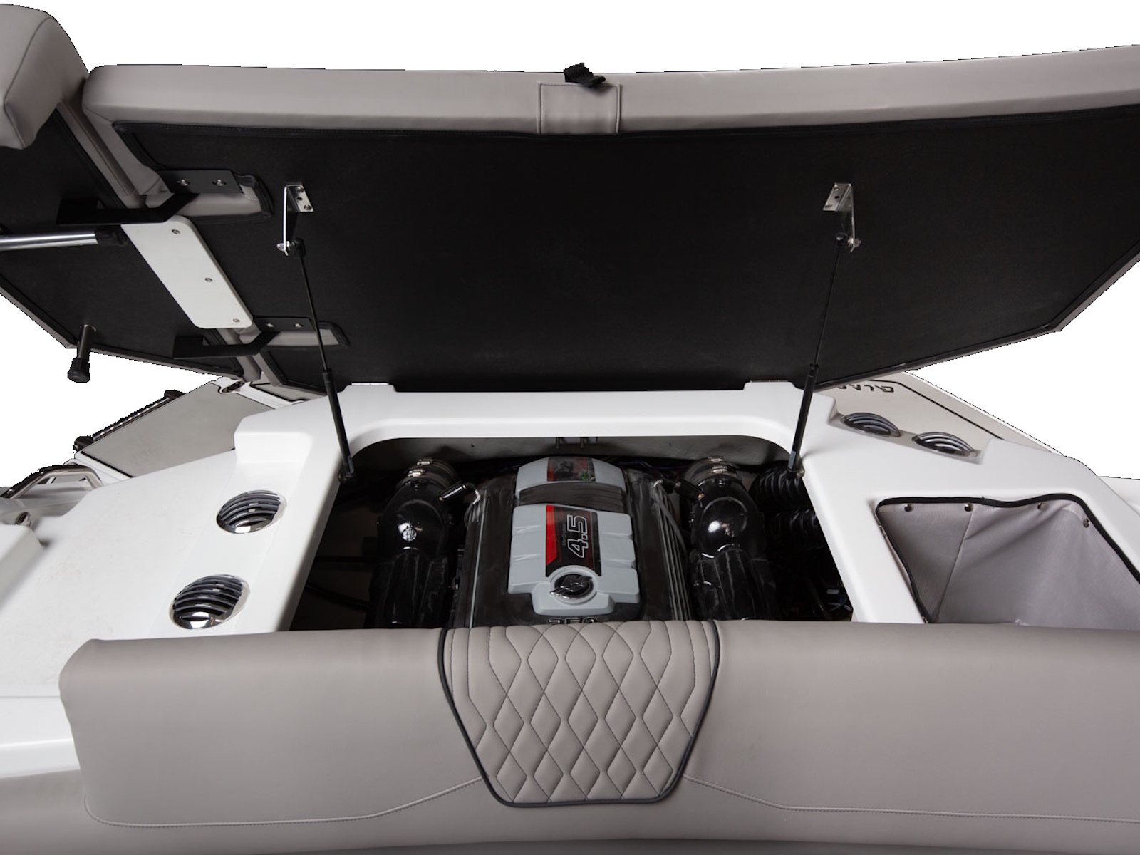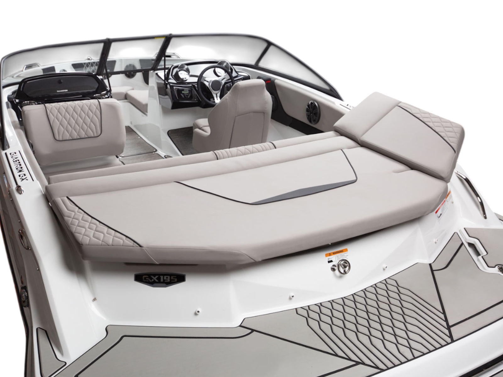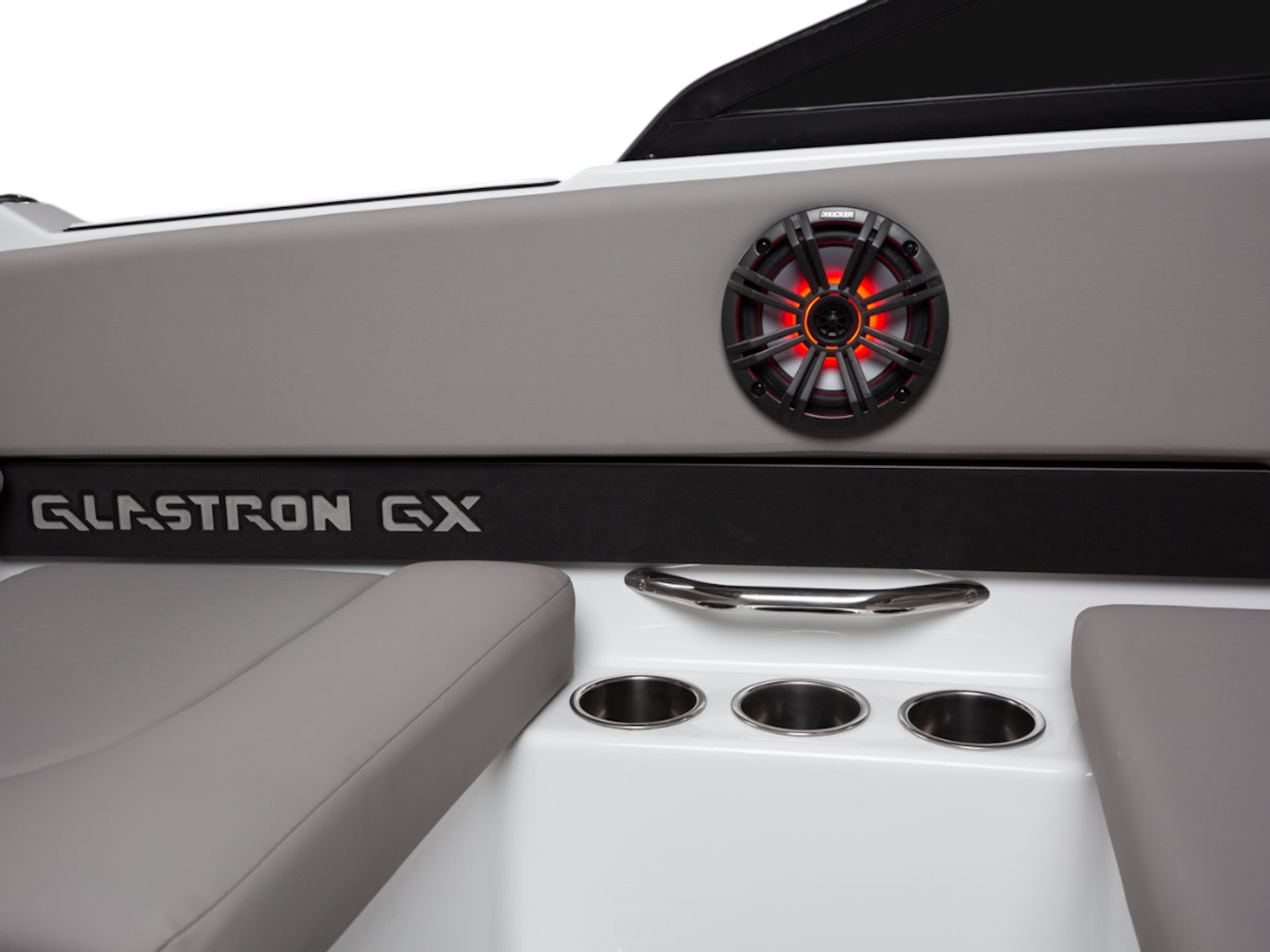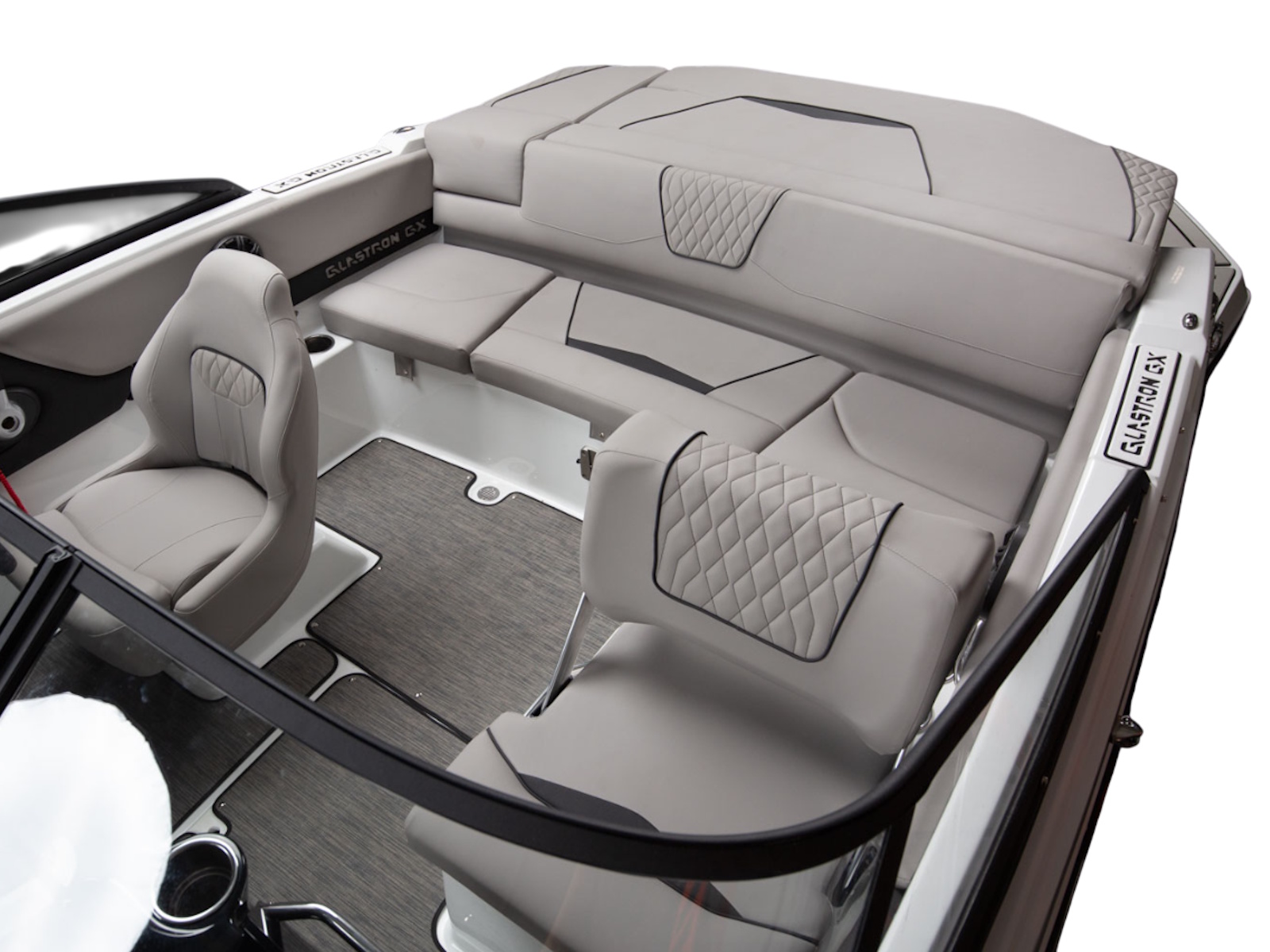 Glastron makes your time on the water enjoyable by thinking about all the small details, built-in cooler and cushion storage, finished under-seat storage, stainless hardware, beautiful, resilient upholstery, full-width swim platform with side-step and ladder. Simple. Comfortable. Usable.