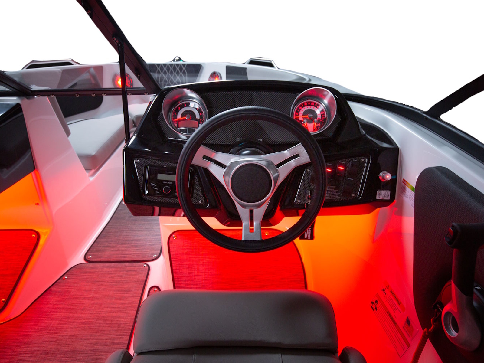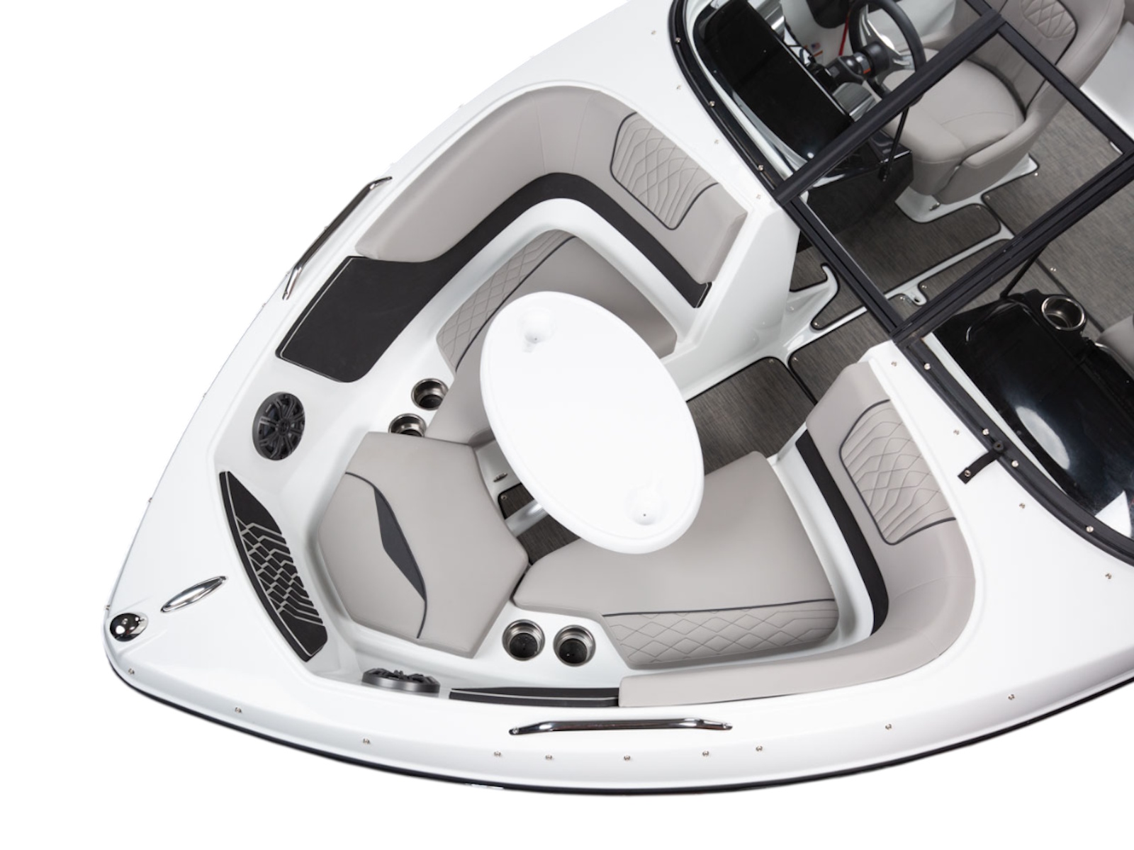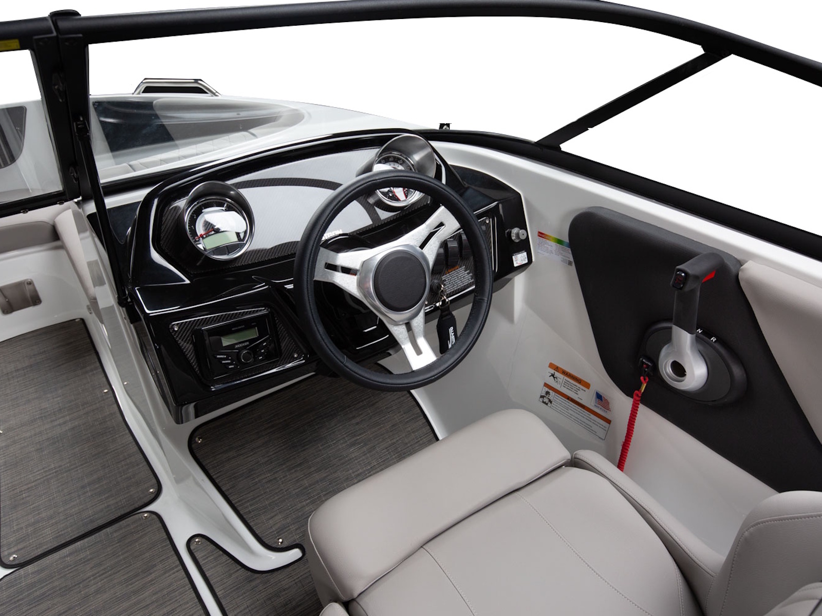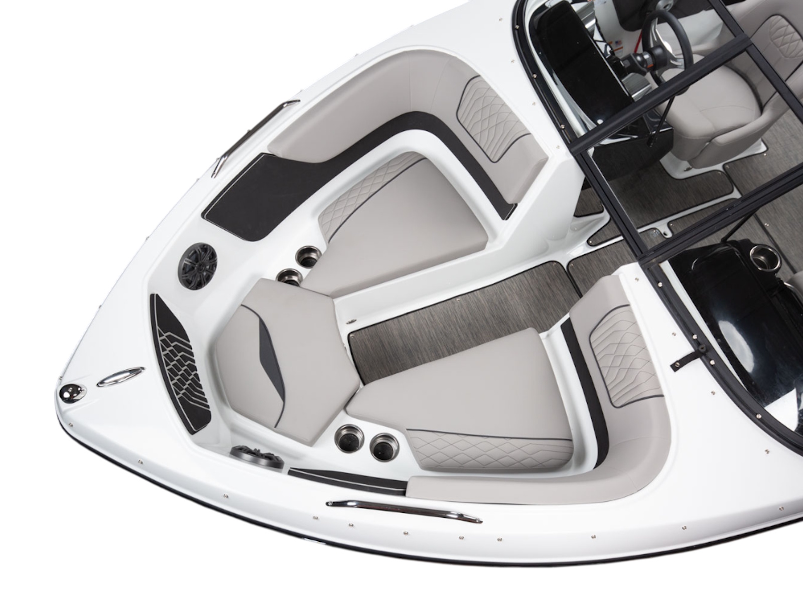 Glastron makes your time on the water enjoyable by thinking about all the small details, built-in cooler and cushion storage, finished under-seat storage, stainless hardware, beautiful, resilient upholstery, full-width swim platform with side-step and ladder. Simple. Comfortable. Usable.