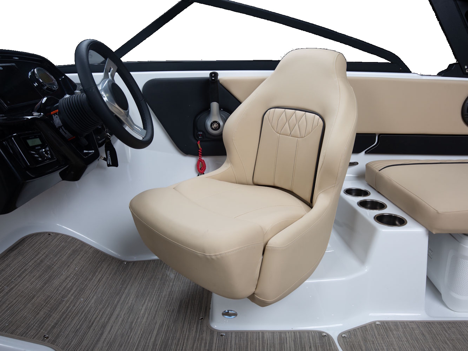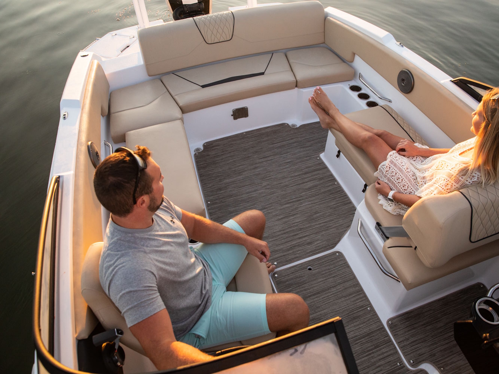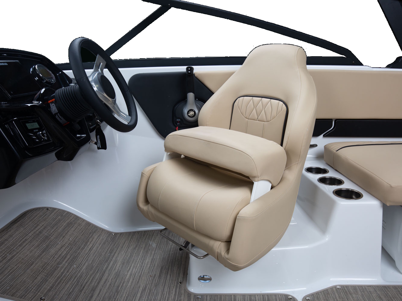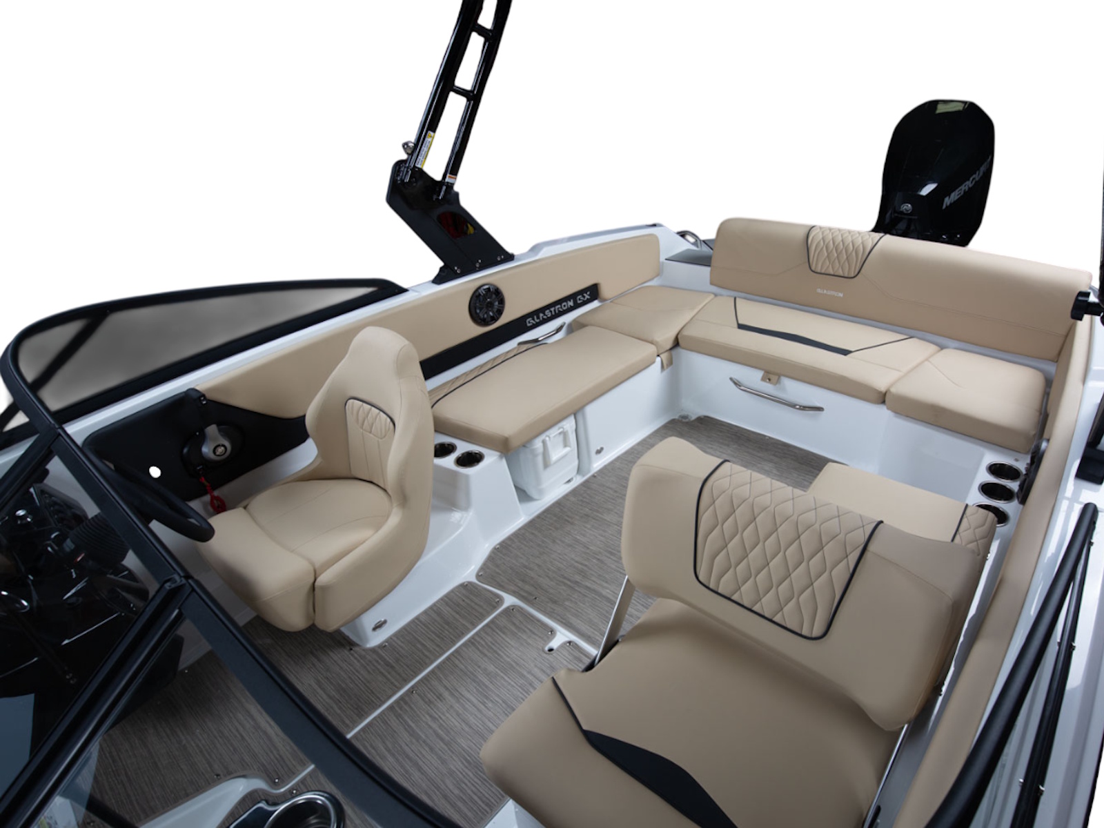 The lines so classic and sleek, make the boat look longer as it moves on the legendary SSV (Super Stable Vee®) hull. Built-in storage on the interior and wrap-around custom upholstery make it clear why you chose Glastron.