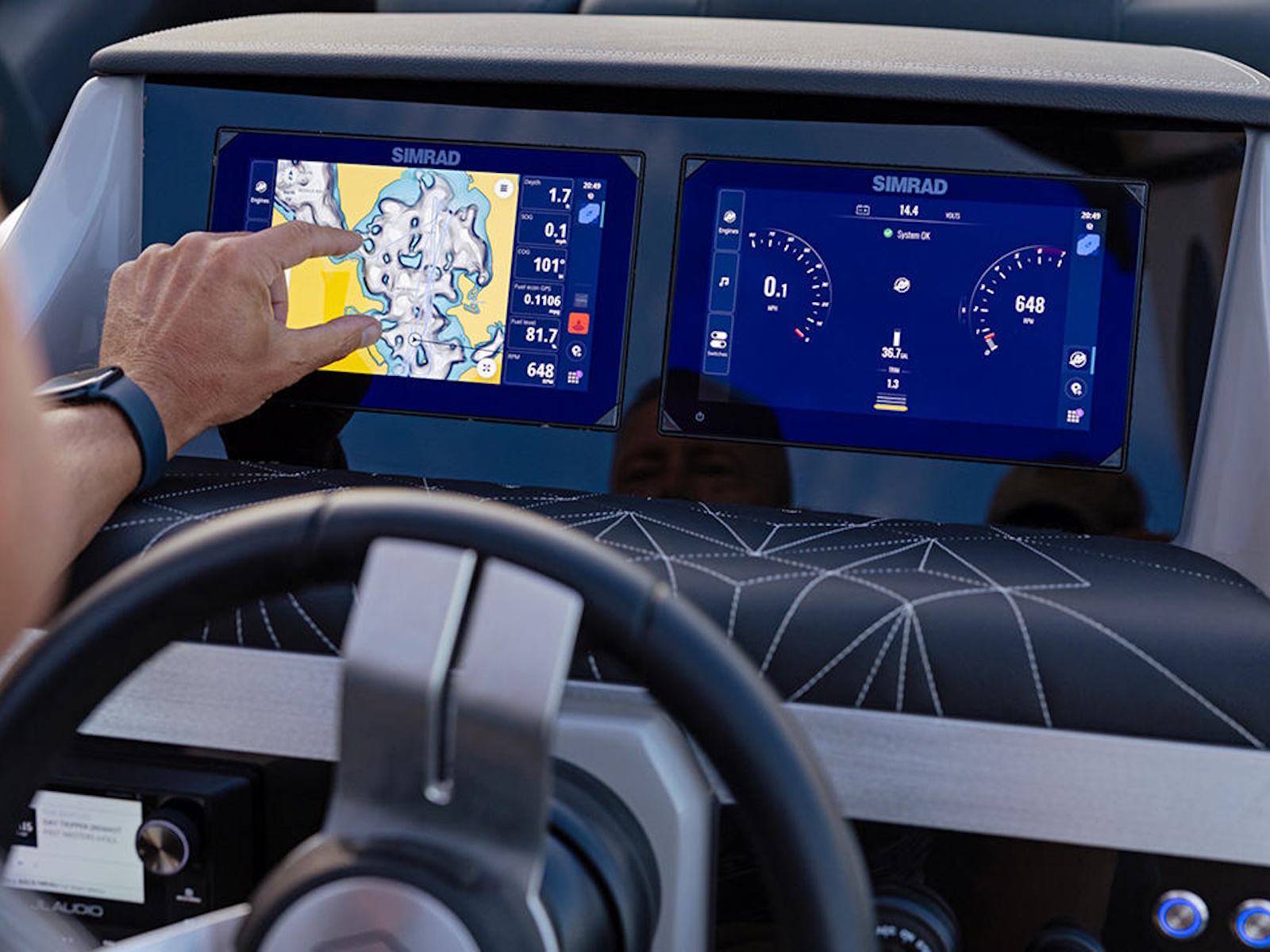 With the sleek look and high tech of an all-electric tower and C-Zone helm, you have ultimate control of your Grand Mariner—whether you're managing your electric system or illuminating the night with a signature light show.