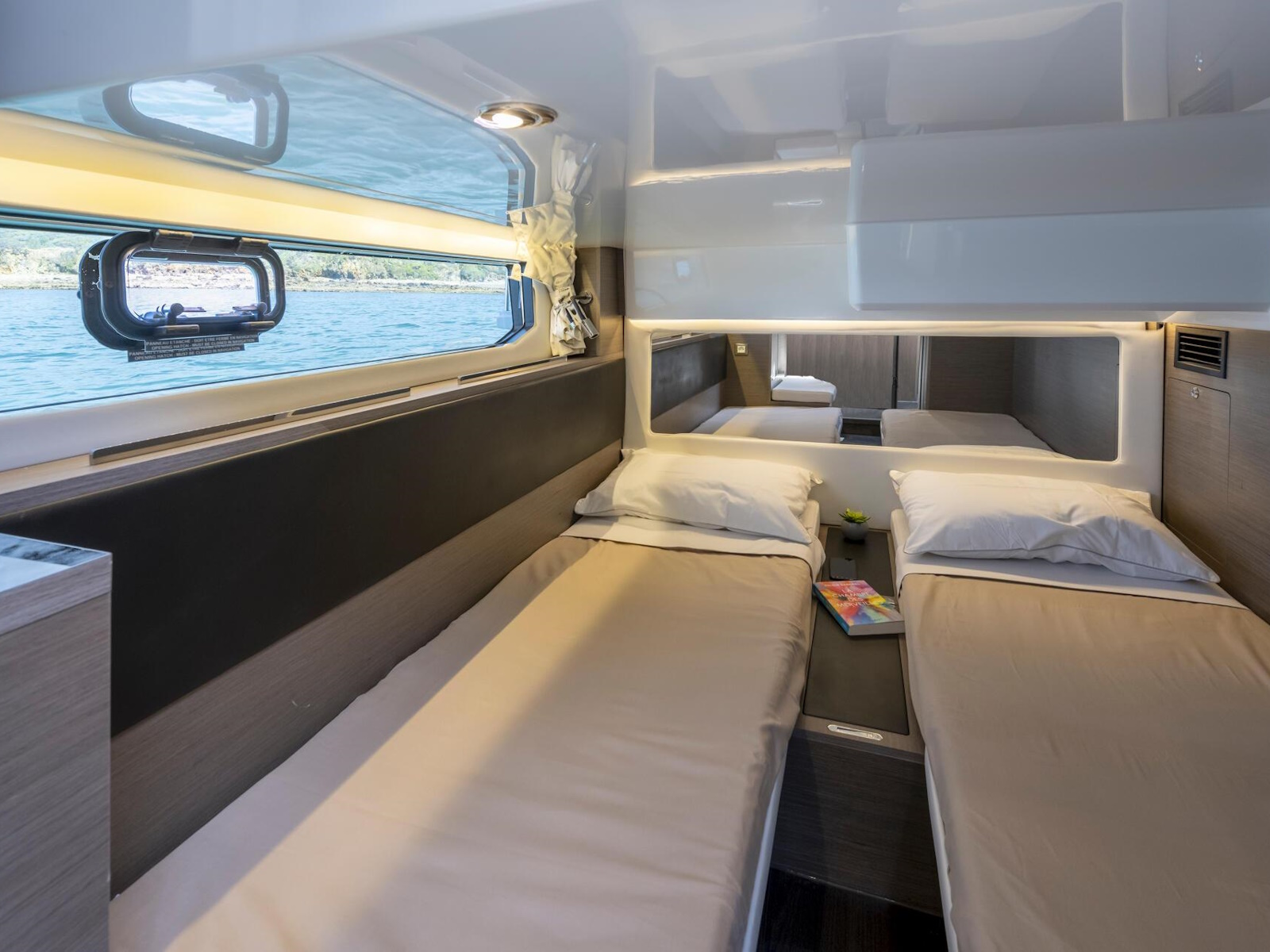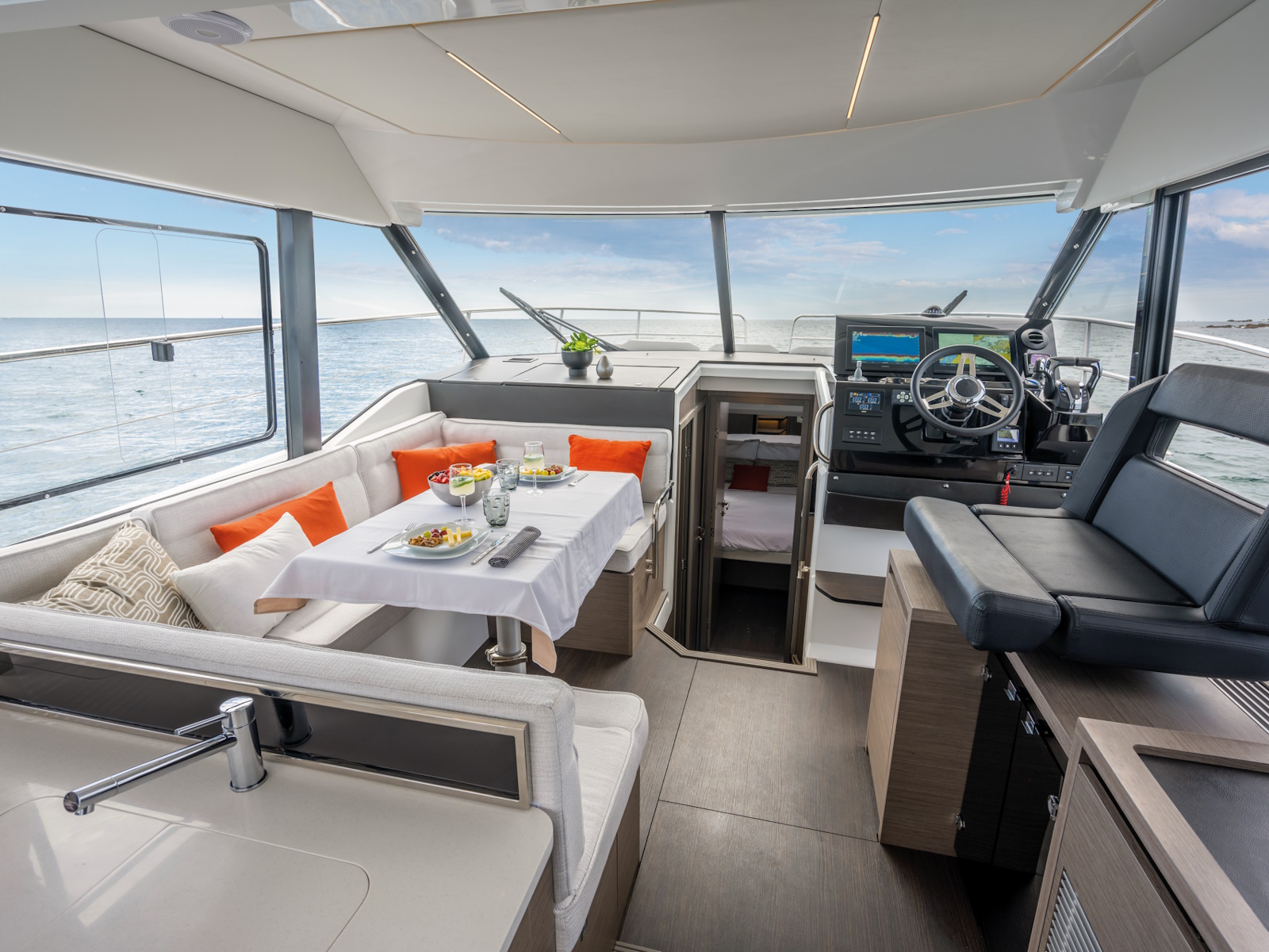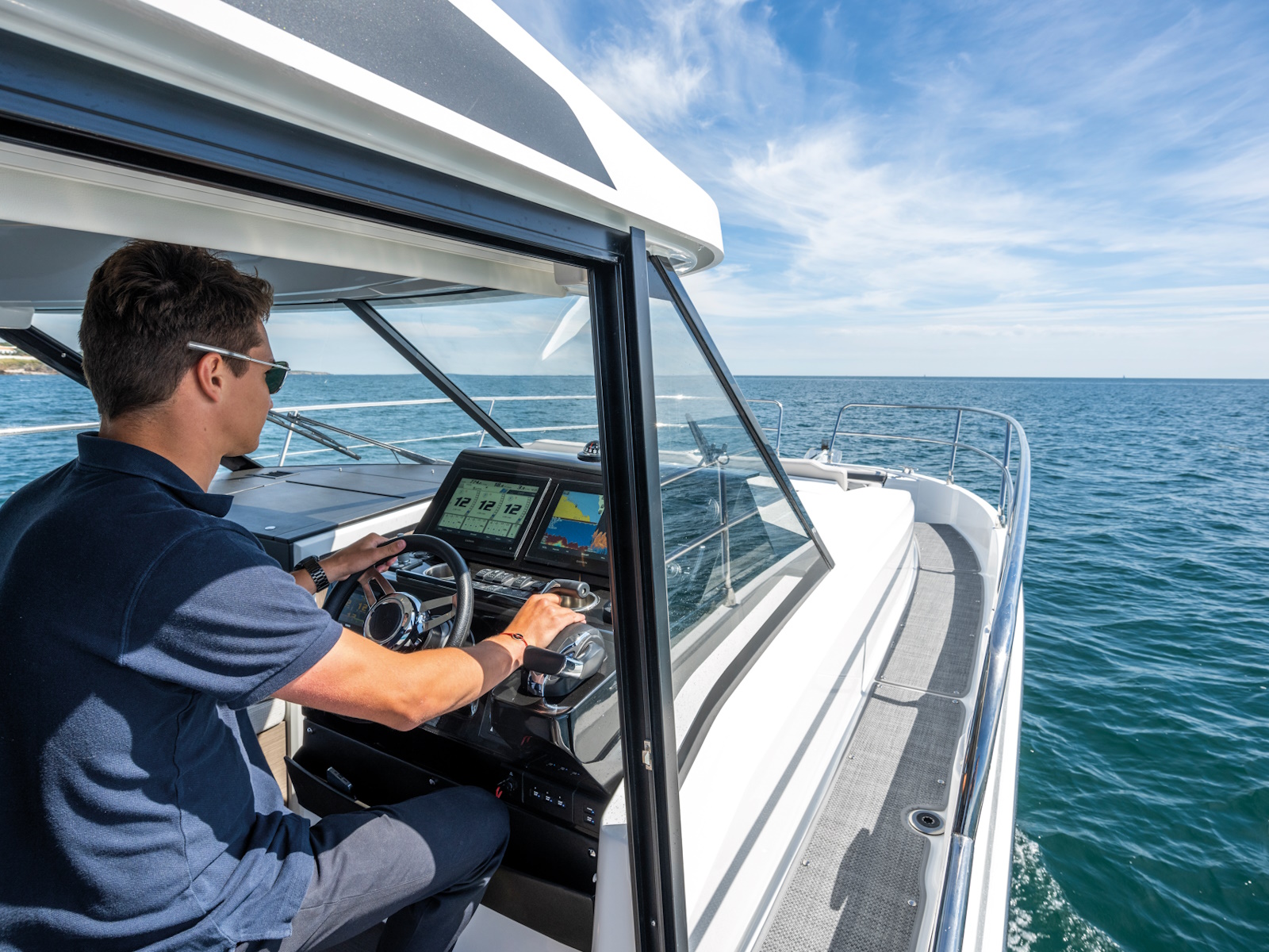 Welcome aboard the new NC 1295 Flybridge, a boat designed to offer you comfort whether cruising or at anchor, with three cozy cabins!