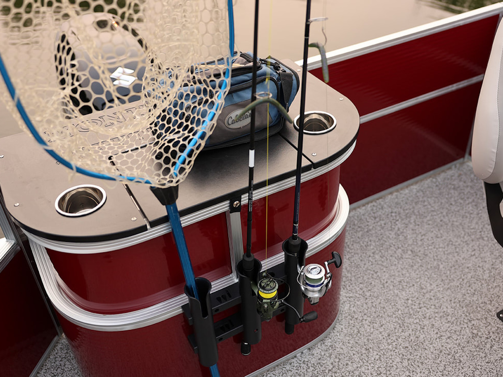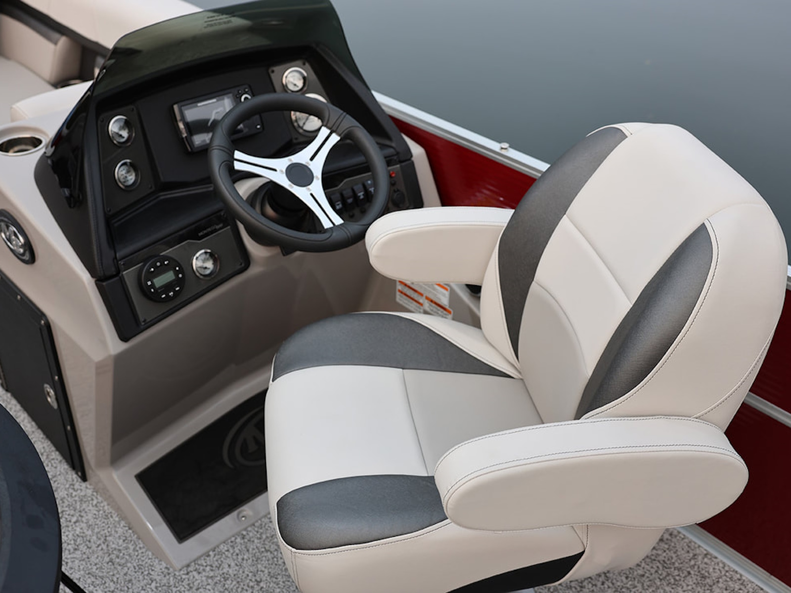 We have designed the perfect pontoon for the families that love to fish and cruise. These luxury crossover fishing and cruising models come standard with premium fish seats in the back or front, along with a livewell and rod holders. Rear entry with asiago vinyl, bluetooth stereo and comfortable helm chair are also standard features in these party barges.