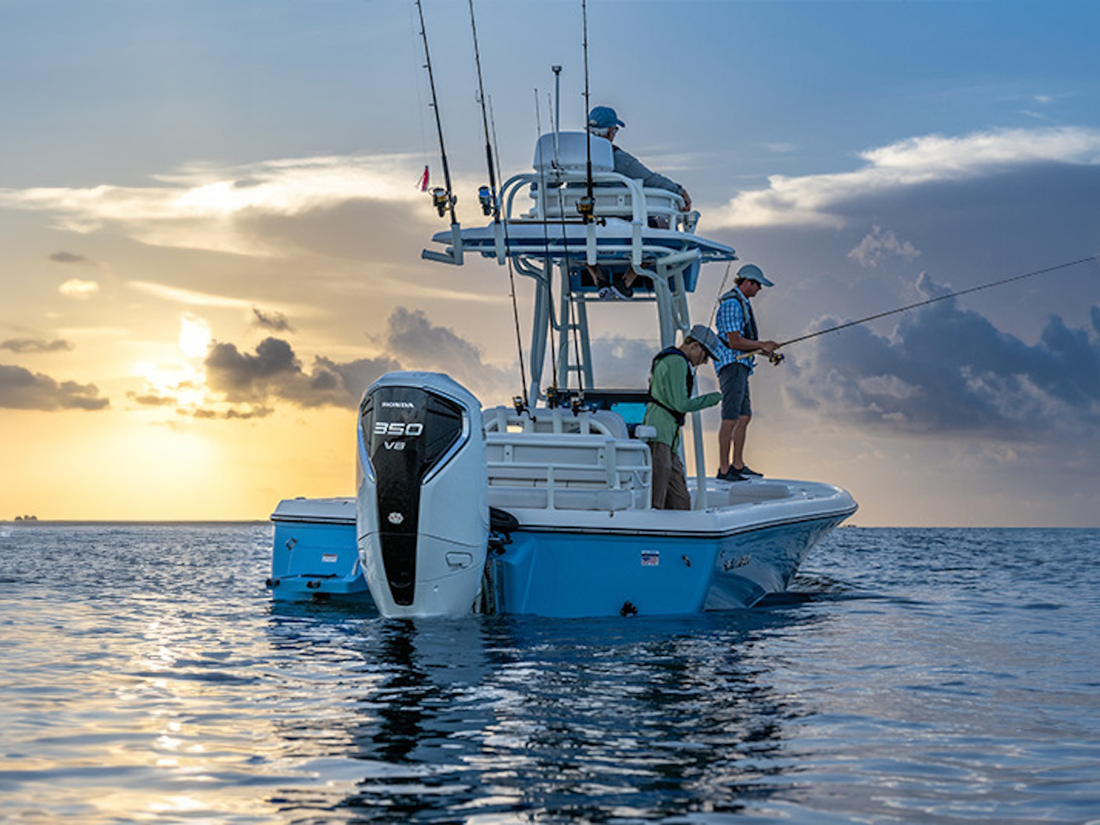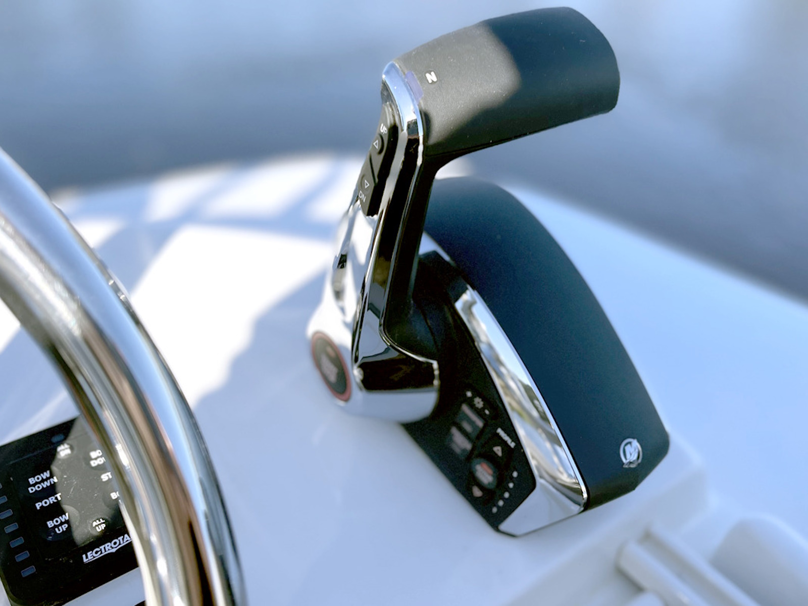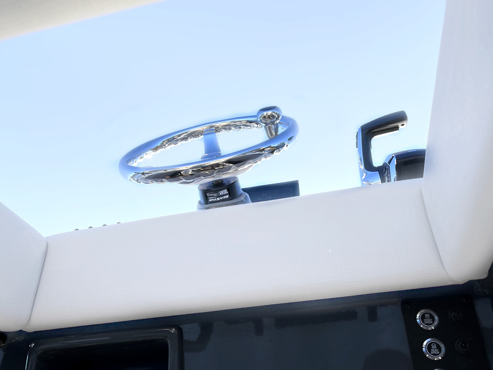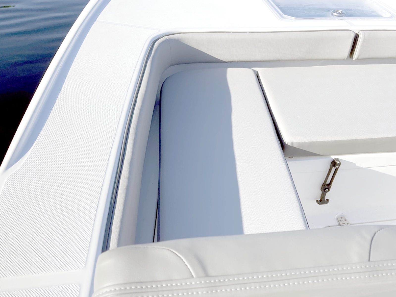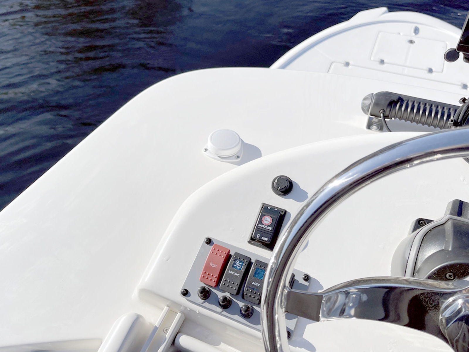 The flagship of the Sea Born bay boat lineup, the FX25 turns heads as one of our most sought-after models for the serious angler. Built on a stable 105″ beam with a single-step hull for improving performance, the FX25’s sportfish-style transom and large forward casting deck make it a true hybrid and dual threat for both inshore or offshore.