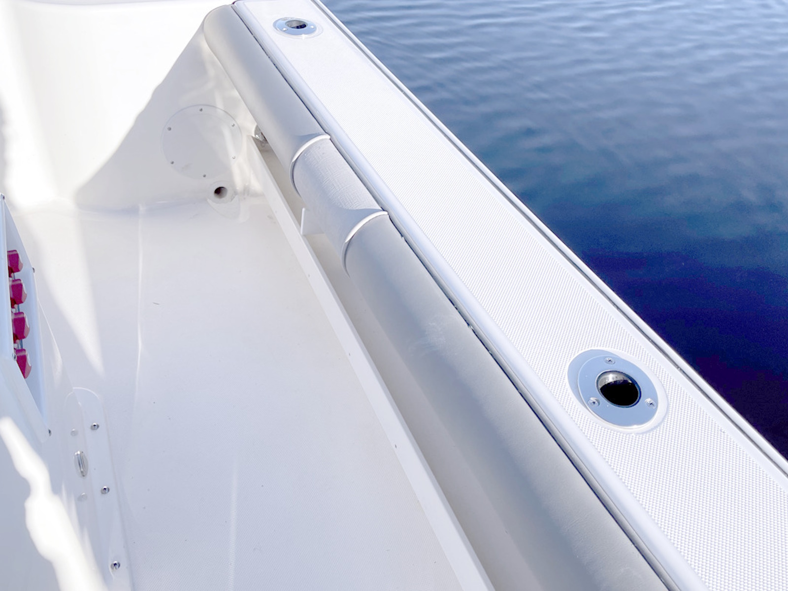 The flagship of the Sea Born bay boat lineup, the FX25 turns heads as one of our most sought-after models for the serious angler. Built on a stable 105″ beam with a single-step hull for improving performance, the FX25’s sportfish-style transom and large forward casting deck make it a true hybrid and dual threat for both inshore or offshore.