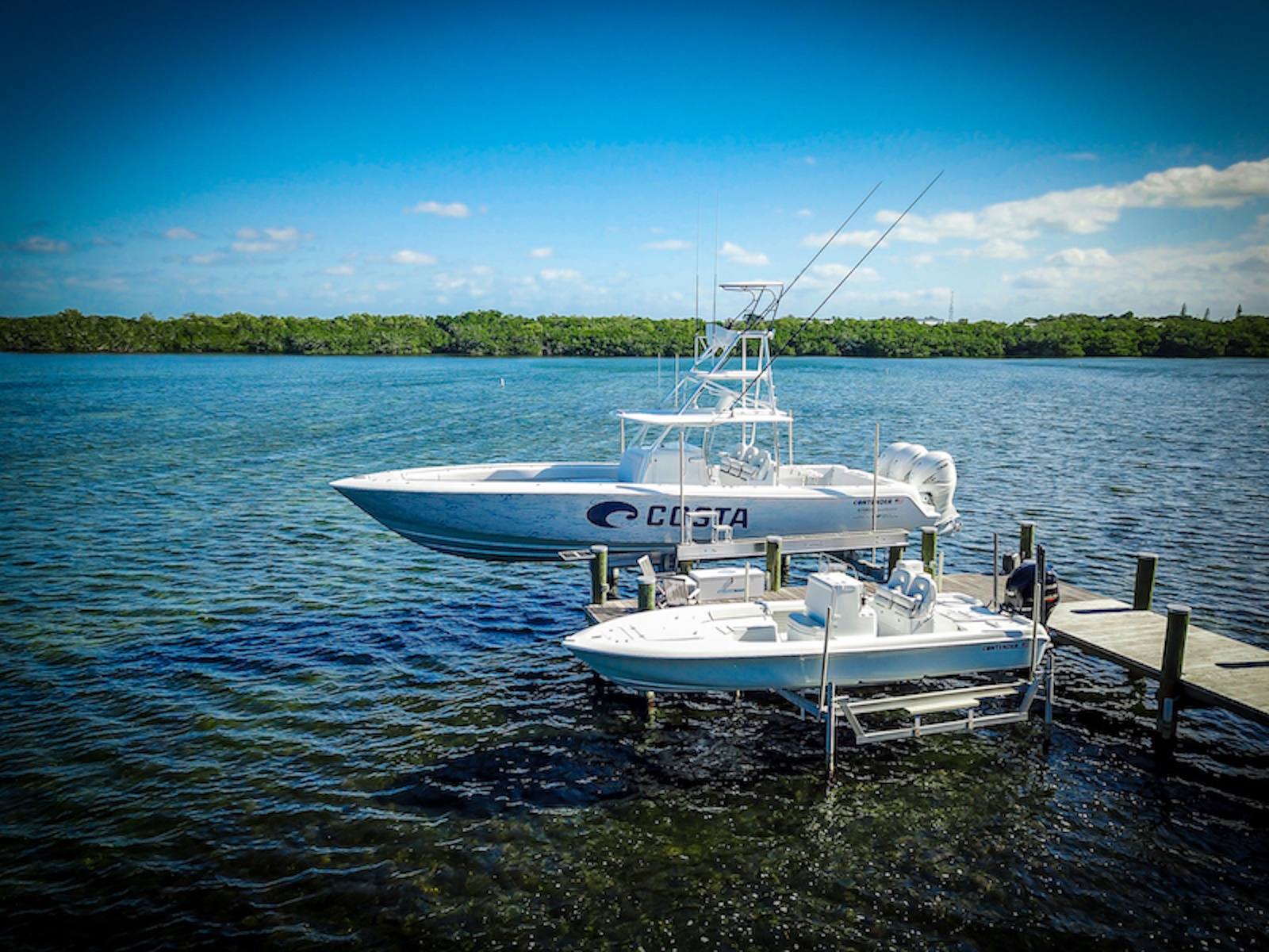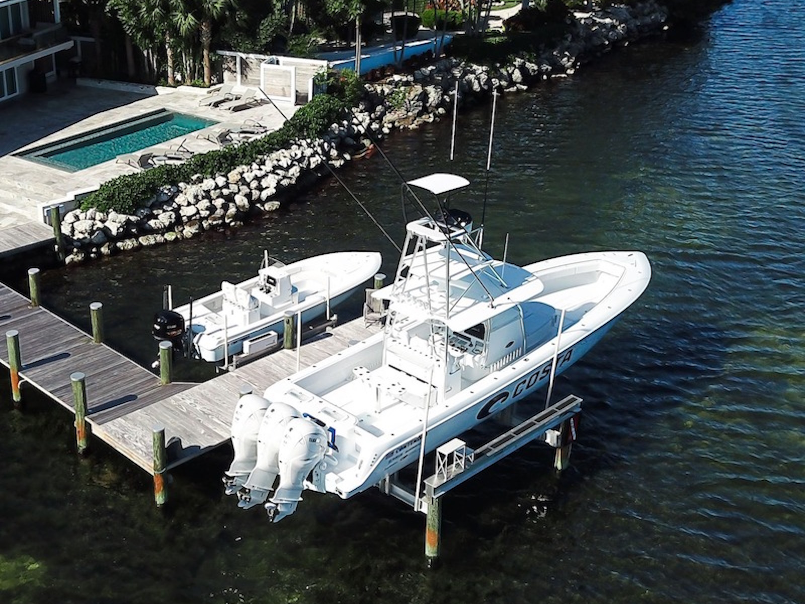 This isn’t your typical boat lift! Our unique above-the- water hydraulic design allows you to get creative so your shore-style complements your lifestyle. Install high for tidal fluctuation, deck level for a low profile look, or deck over the platform. Hang it from the ceiling, hide it in the roof or mount it under the deck.