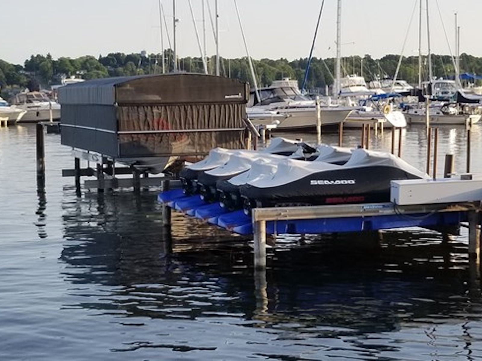 This lift design is a traditional approach. Install the lift tubes high for tidal fluctuation or deck-level for a low profile look that doesn’t interfere with accessing your boat.