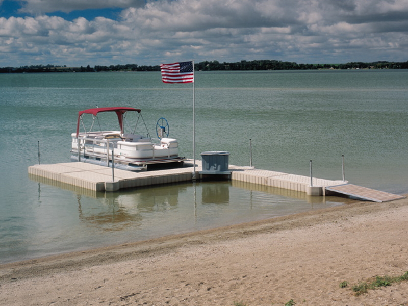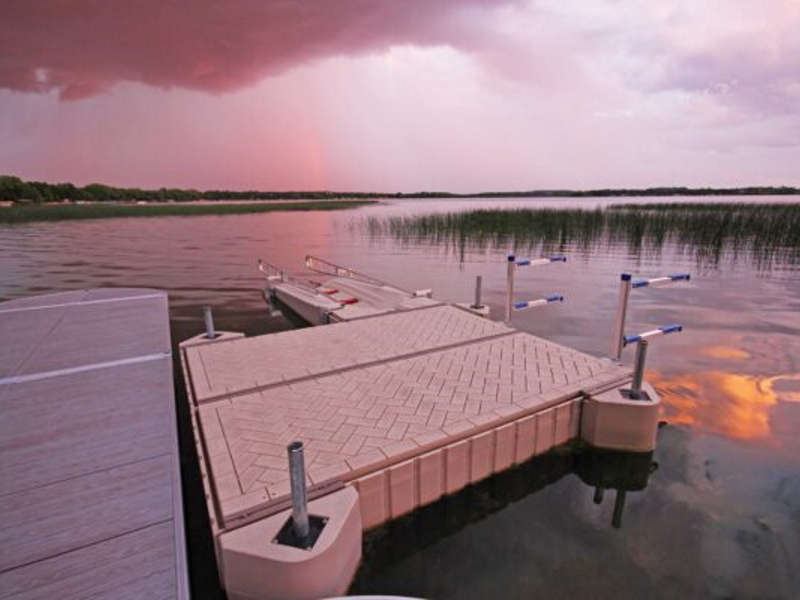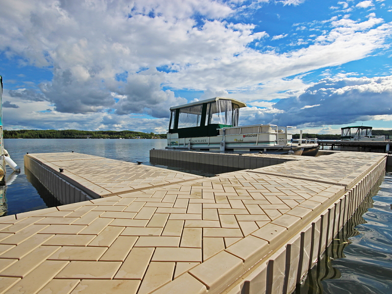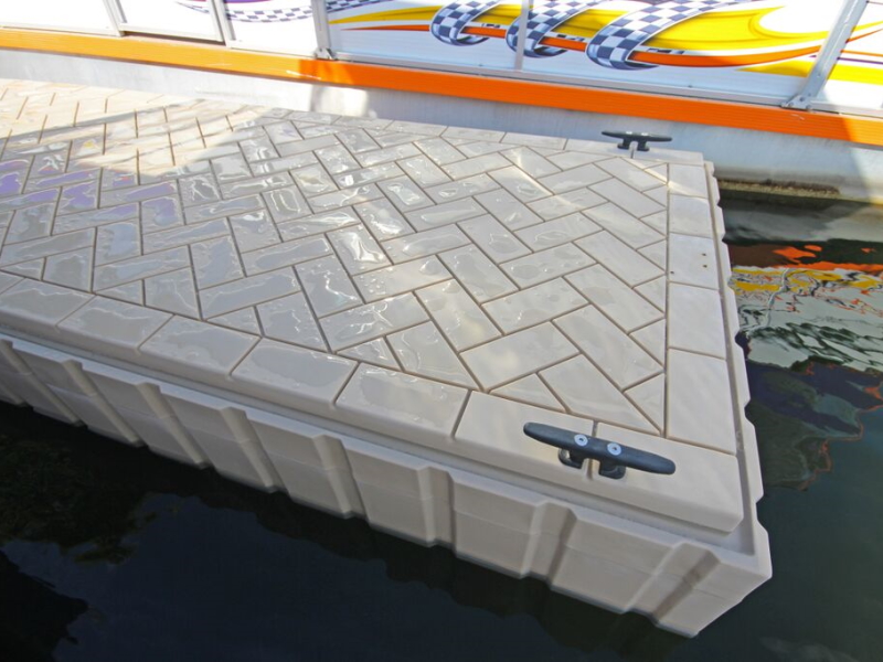 PolyDock is a modular, rotationally molded, polyethylene floating dock system designed to look great at your shoreline, and provide you with exceptional value for years. The recessed areas on the bottom of each section help to provide stability between the dock and the surface of the water. This means less movement as you walk the length and width of your dock system. PolyDock is designed to feel firm underfoot along the length and width of its slip-resistant brick patterned surface, so you and your family will enjoy every day spent on your PolyDock modular floating dock system.