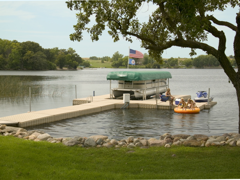 PolyDock is a modular, rotationally molded, polyethylene floating dock system designed to look great at your shoreline, and provide you with exceptional value for years. The recessed areas on the bottom of each section help to provide stability between the dock and the surface of the water. This means less movement as you walk the length and width of your dock system. PolyDock is designed to feel firm underfoot along the length and width of its slip-resistant brick patterned surface, so you and your family will enjoy every day spent on your PolyDock modular floating dock system.