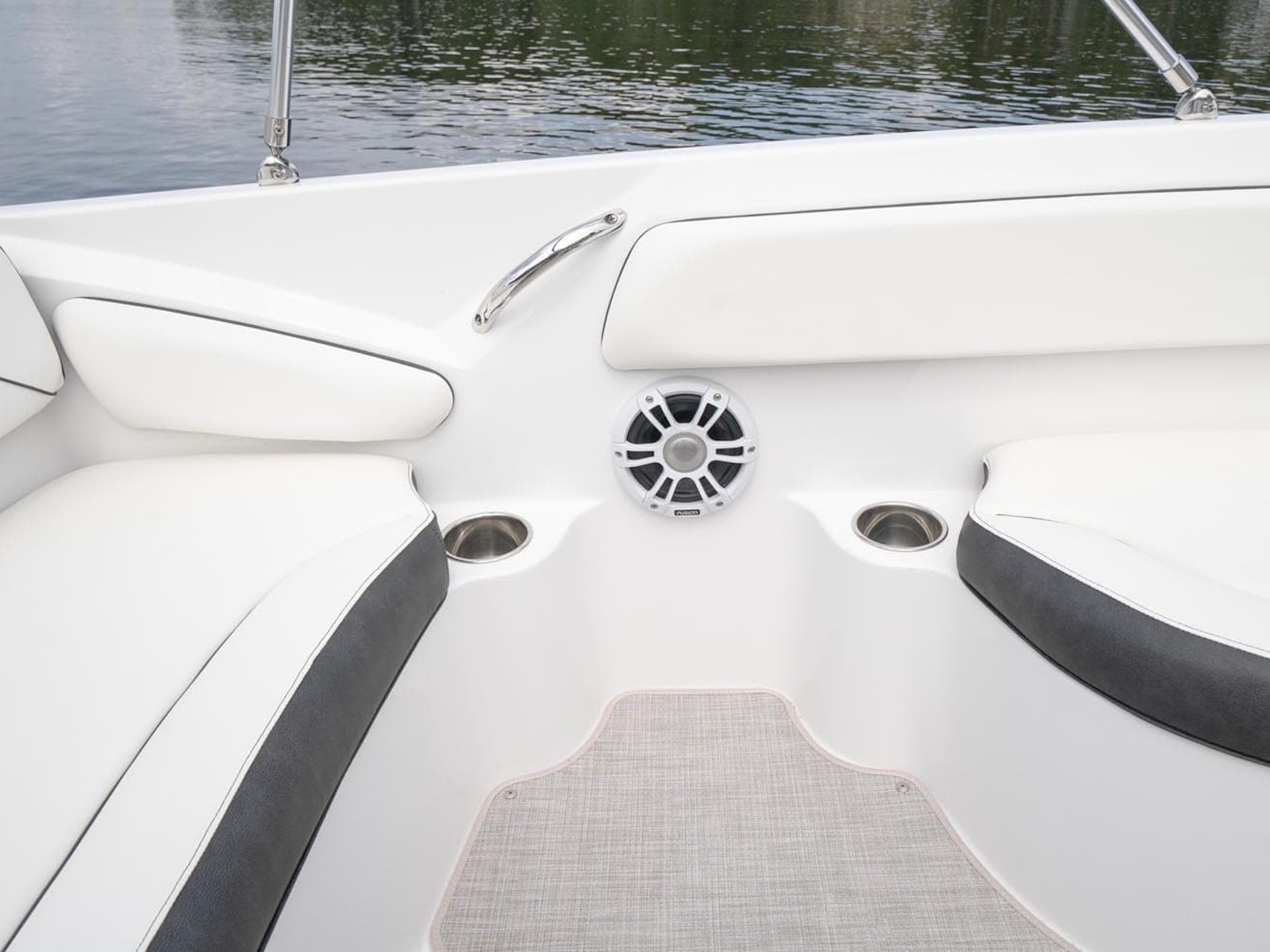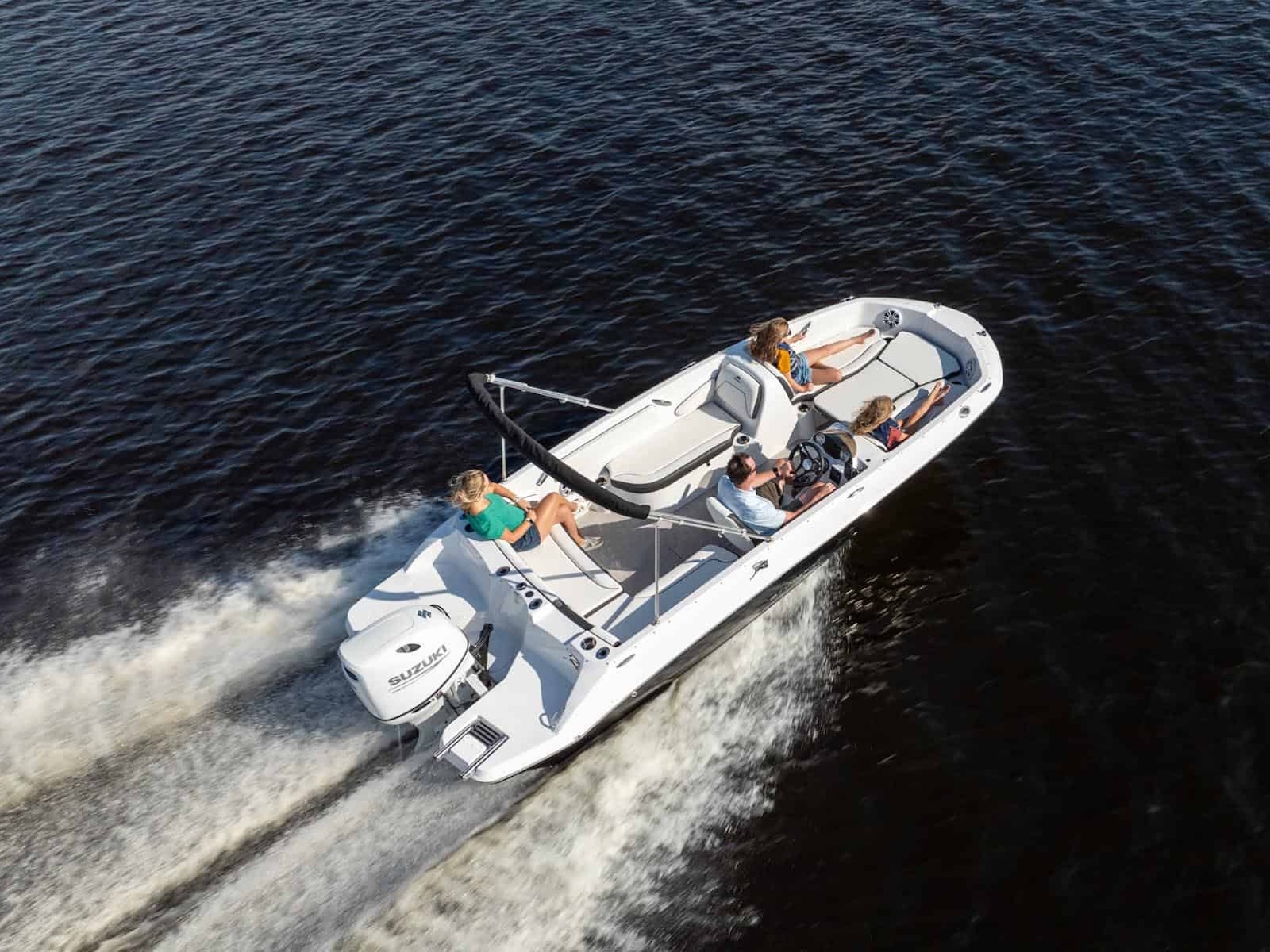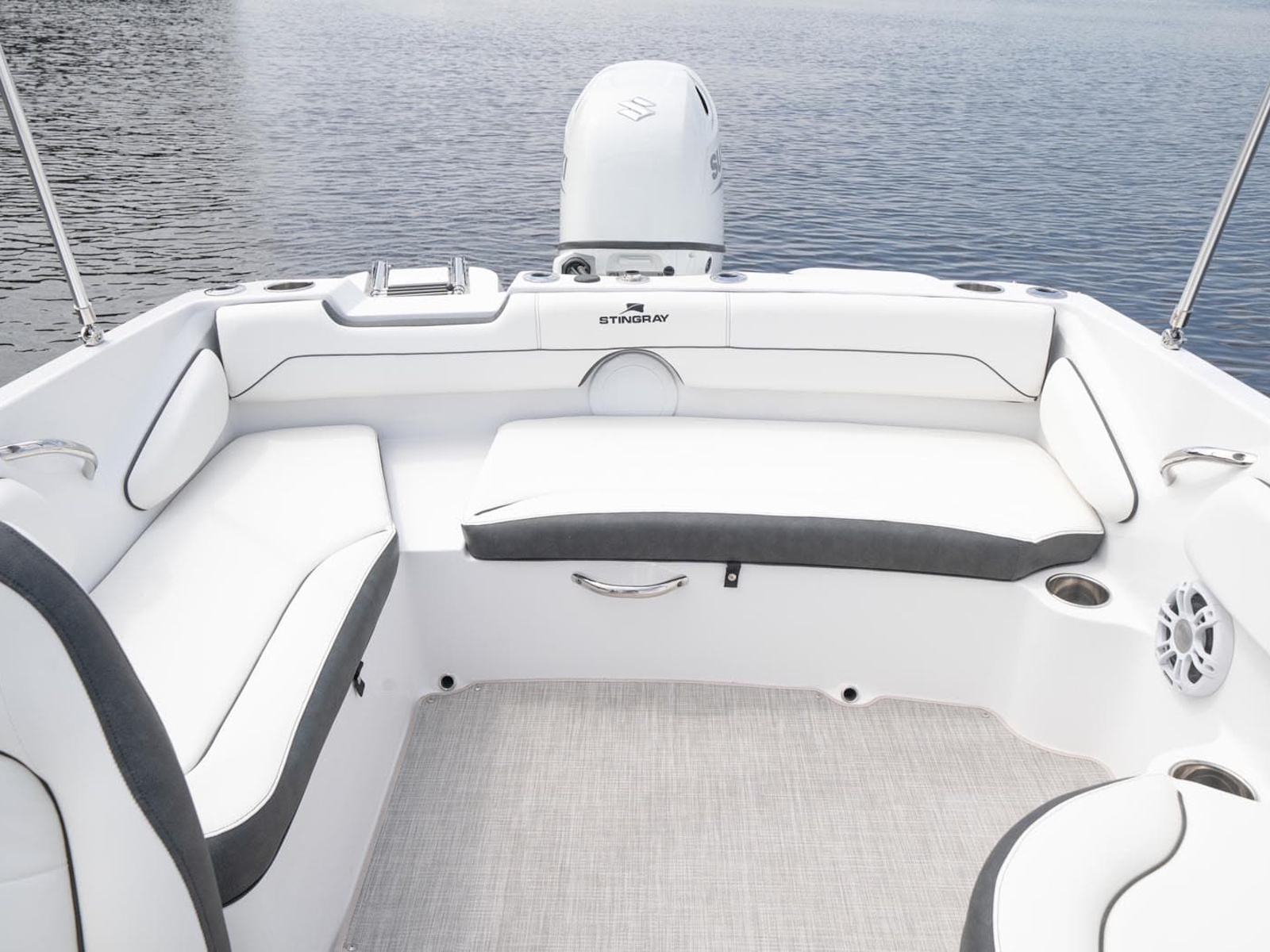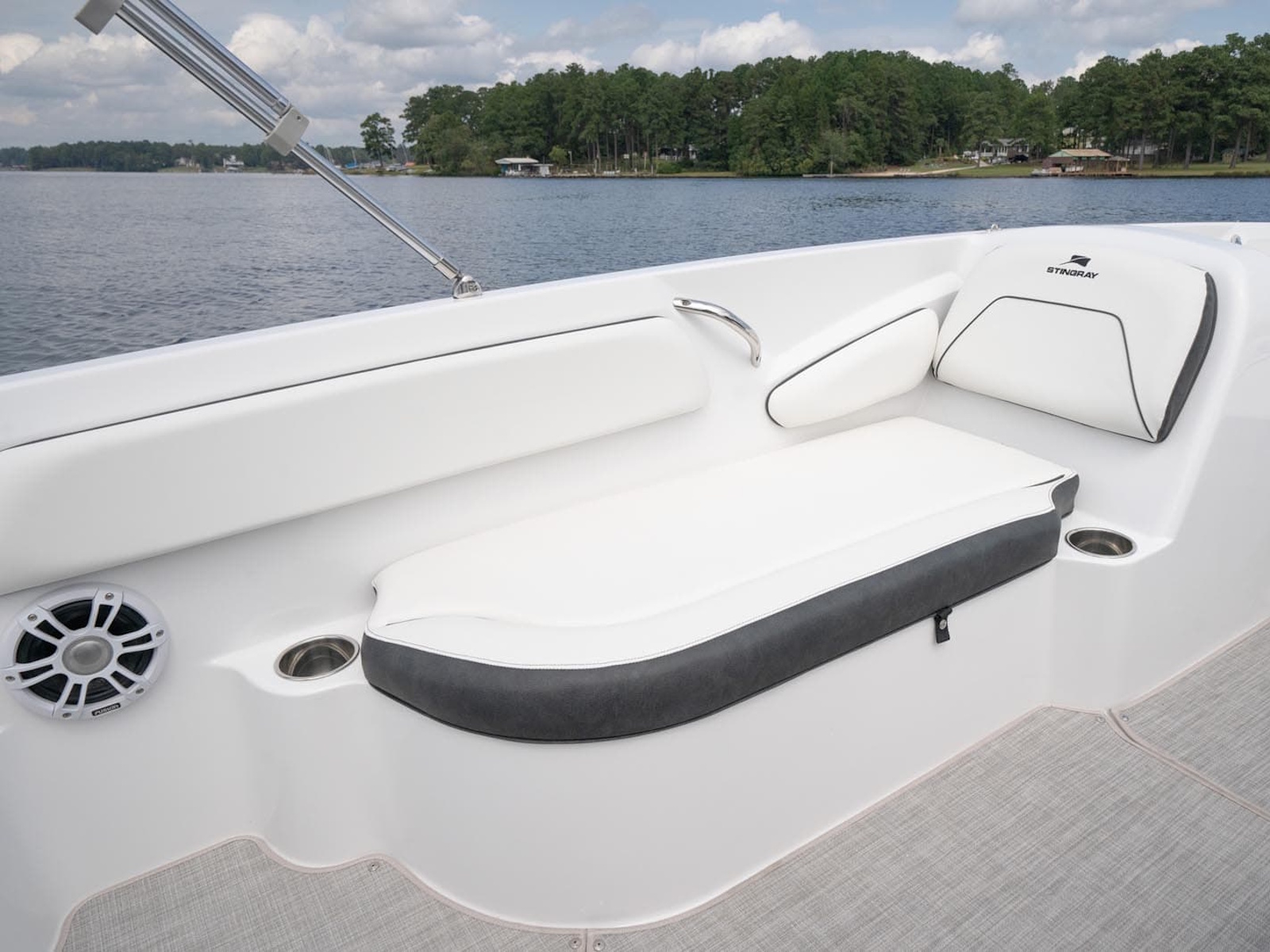 The 182SC Deck Boat -- you won't believe this boat until you take it for a test drive. Not only is it just plain fun to drive, but it's also almost effortless. Seasoned boaters and first time boaters alike remark at how easy and fun the 182SC is when they try it out for the first time. In addition to its fun factor, the 182SC is loaded with storage, has plenty of room for all your passengers, water toys, and supplies, and it proves to be very functional. Seating is abundant. The stern area features wrap-around seating for your passengers to stretch out and enjoy the ride. Opposite the captain's chair is a rear-facing lounge so your co-captain can keep an eye on your tubers and wake boarders. See your local dealer today to reserve your 182SC. You don't want to miss out on the fun!