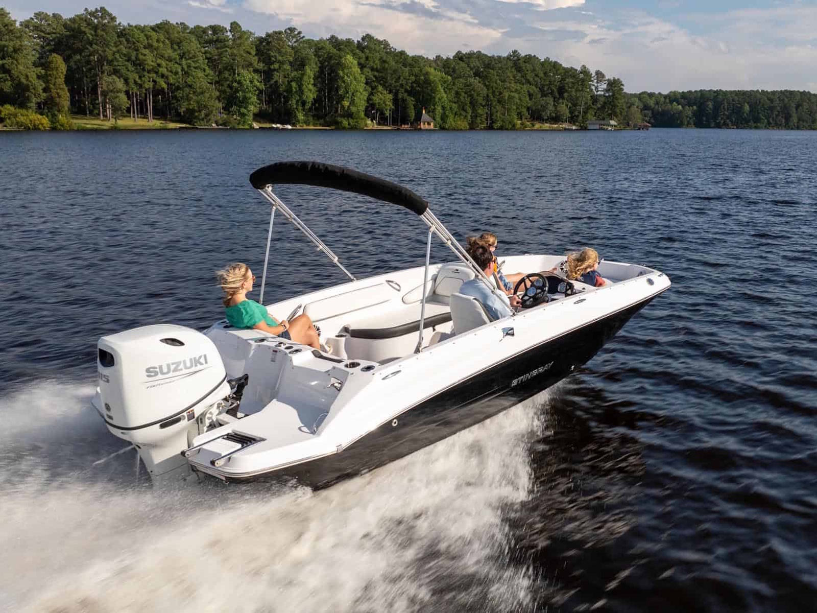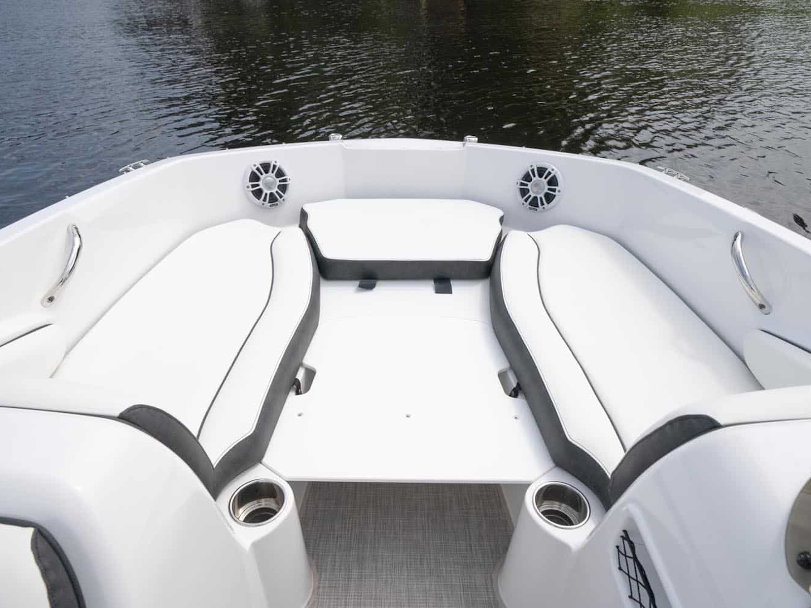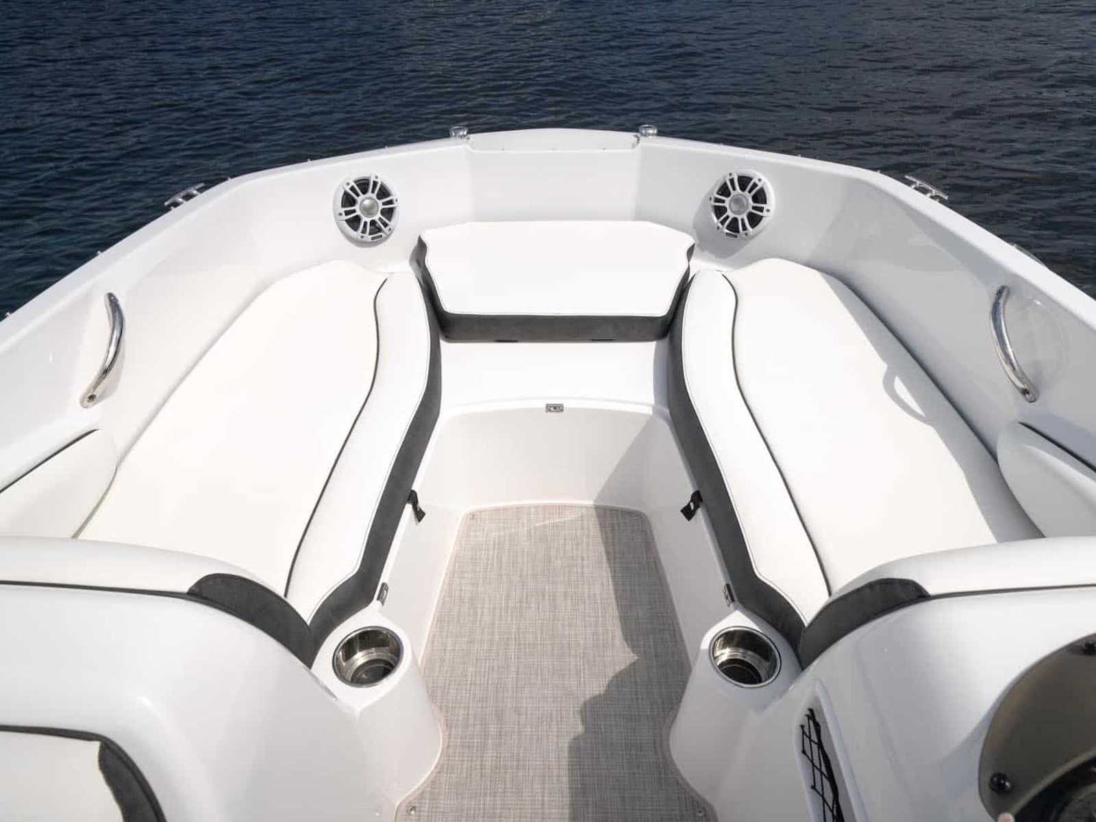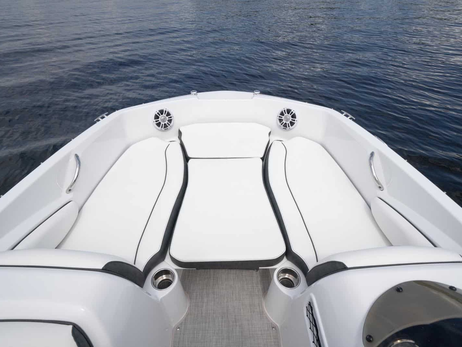 The 182SC Deck Boat -- you won't believe this boat until you take it for a test drive. Not only is it just plain fun to drive, but it's also almost effortless. Seasoned boaters and first time boaters alike remark at how easy and fun the 182SC is when they try it out for the first time. In addition to its fun factor, the 182SC is loaded with storage, has plenty of room for all your passengers, water toys, and supplies, and it proves to be very functional. Seating is abundant. The stern area features wrap-around seating for your passengers to stretch out and enjoy the ride. Opposite the captain's chair is a rear-facing lounge so your co-captain can keep an eye on your tubers and wake boarders. See your local dealer today to reserve your 182SC. You don't want to miss out on the fun!