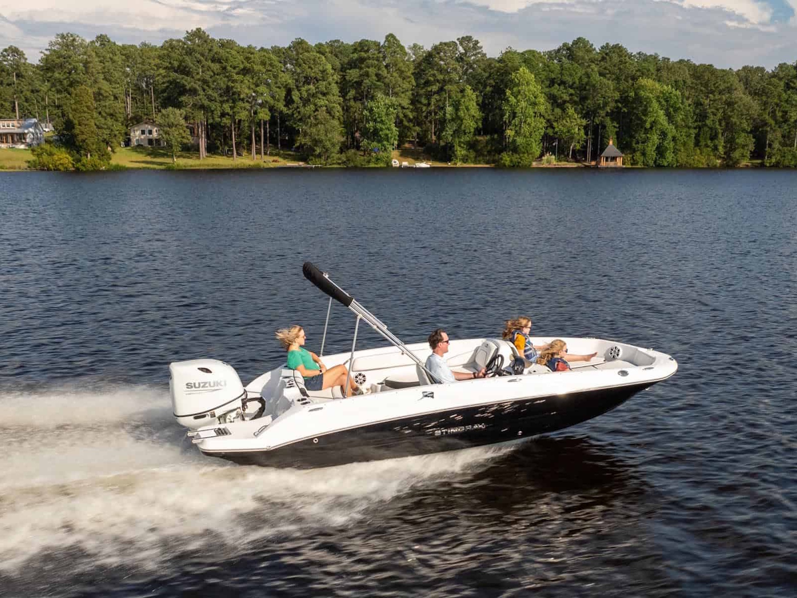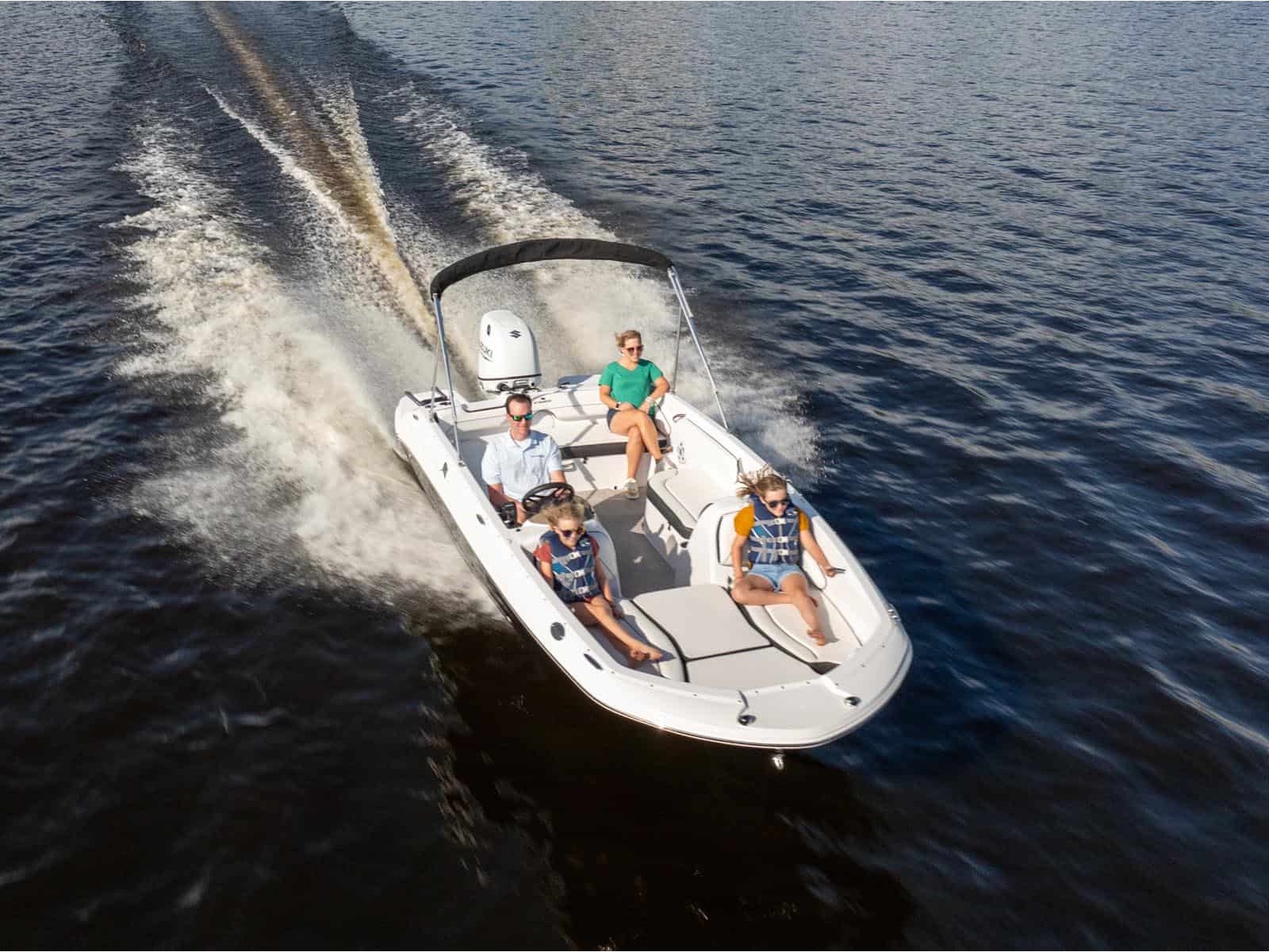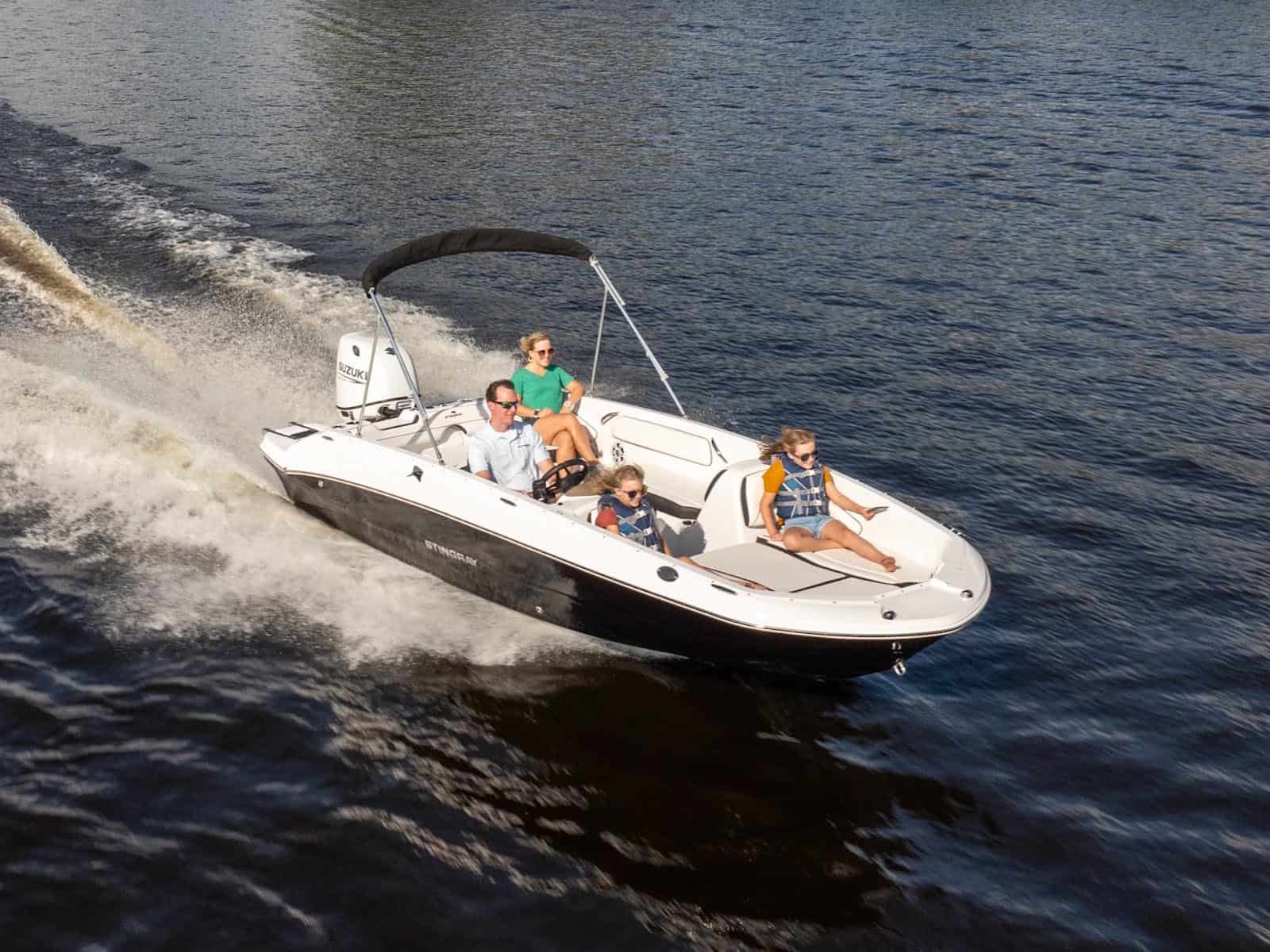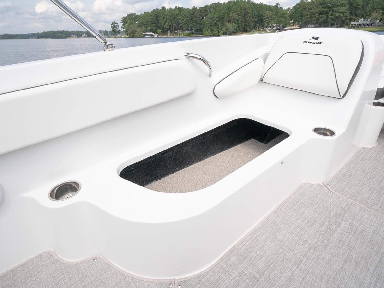 The 182SC Deck Boat -- you won't believe this boat until you take it for a test drive. Not only is it just plain fun to drive, but it's also almost effortless. Seasoned boaters and first time boaters alike remark at how easy and fun the 182SC is when they try it out for the first time. In addition to its fun factor, the 182SC is loaded with storage, has plenty of room for all your passengers, water toys, and supplies, and it proves to be very functional. Seating is abundant. The stern area features wrap-around seating for your passengers to stretch out and enjoy the ride. Opposite the captain's chair is a rear-facing lounge so your co-captain can keep an eye on your tubers and wake boarders. See your local dealer today to reserve your 182SC. You don't want to miss out on the fun!