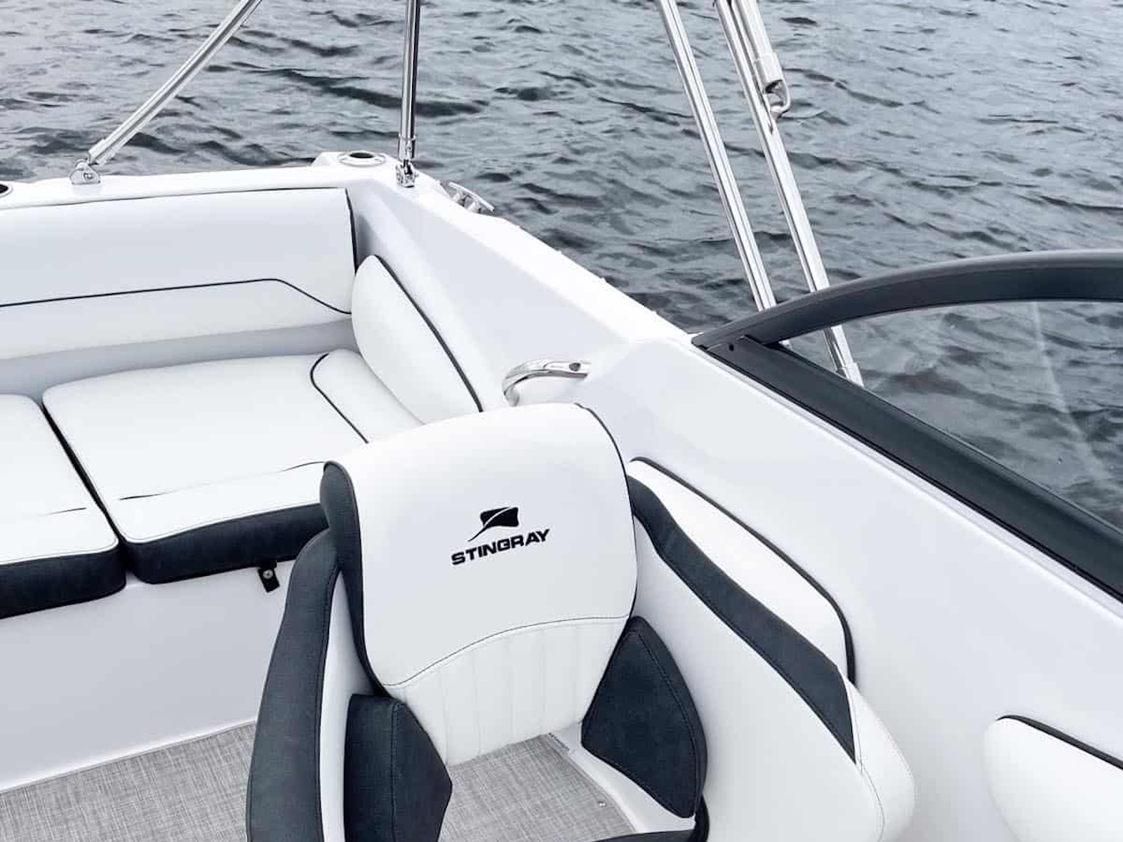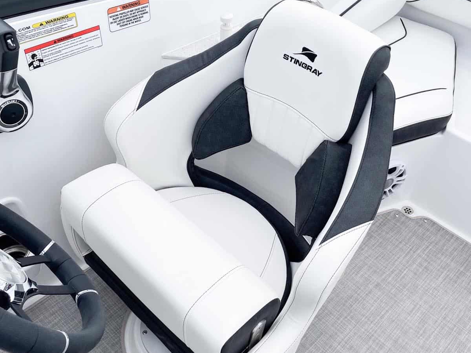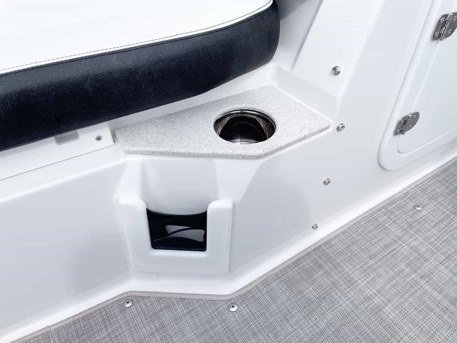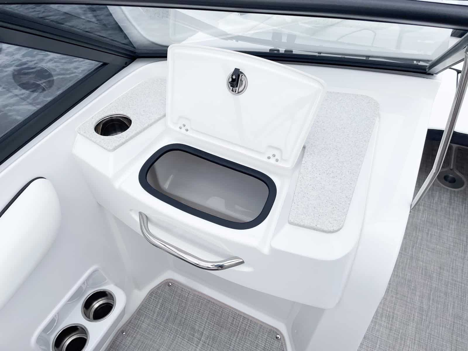 If you love the open feel of a deck boat, but like your boat to have a full windshield, you shouldn't have to choose. The 201DC Dual Console gives you all the interior room and storage space of our 192SC and the added full wrap-around windshield provides a nice shield from the wind while underway. This version gives you two sport bucket seats with bolsters. Deep cockpit and bow areas provide extra safety and security for your passengers. Behind the captain is a solid-surface countertop with a sink and faucet. A mix of dual console deck boat and traditional runabout seating works together to give you a roomy boat with seating for up to 10 passengers.