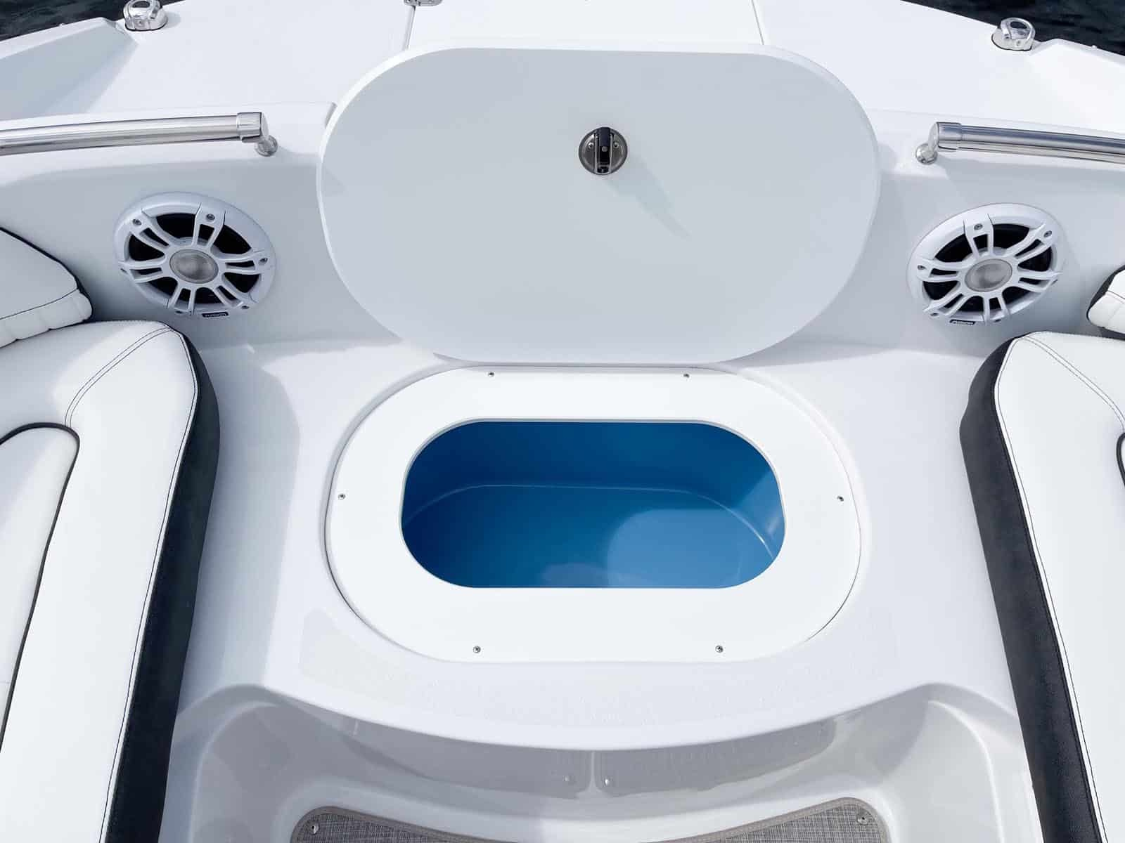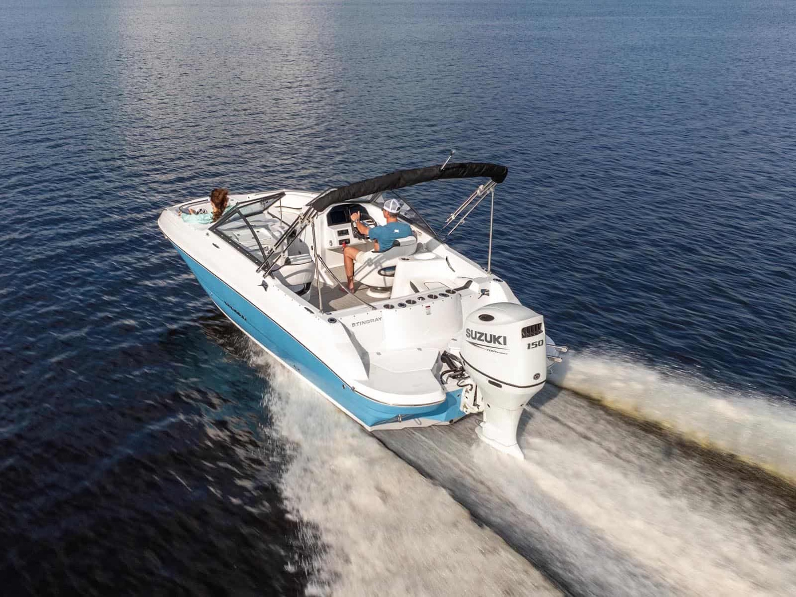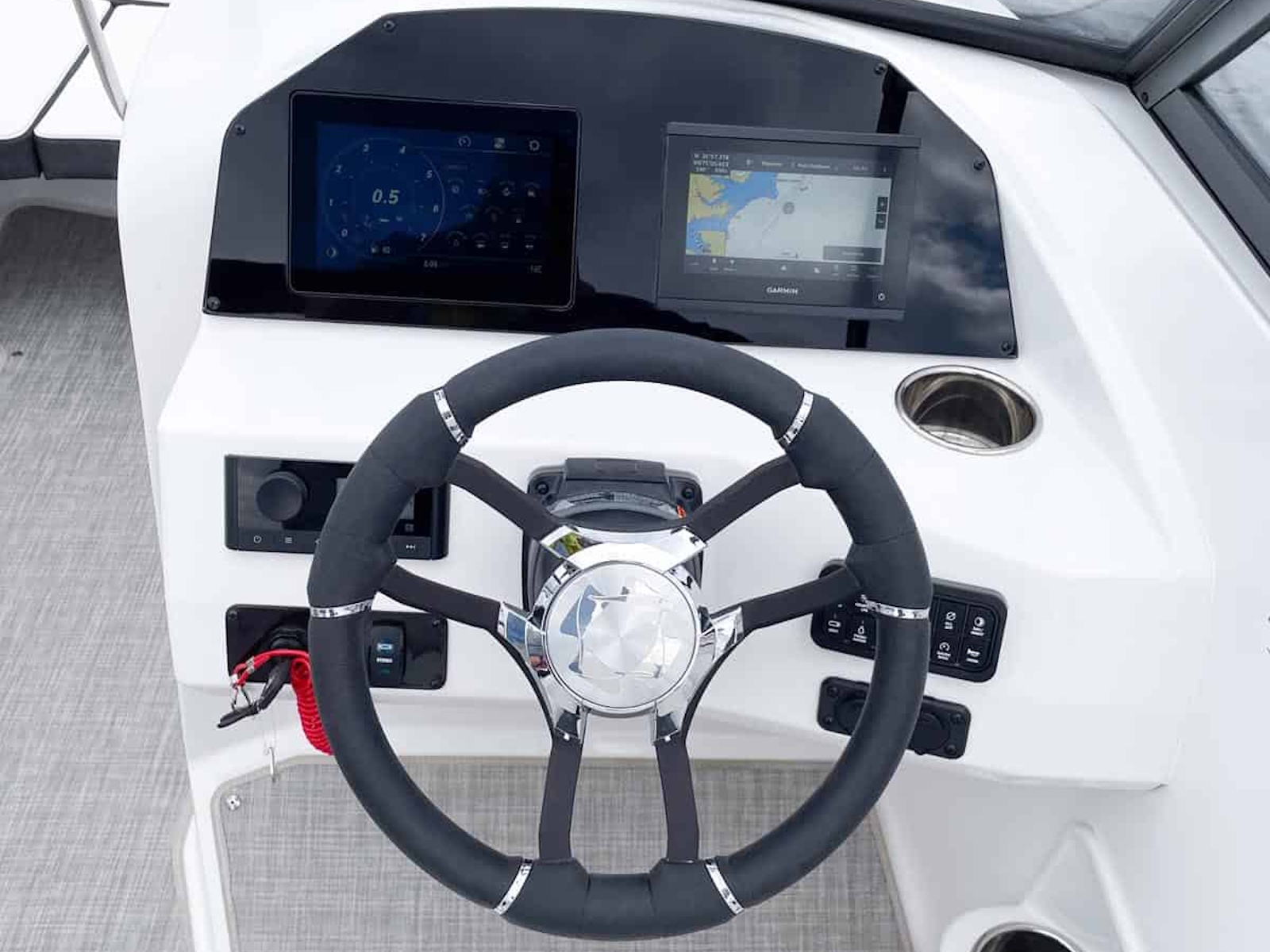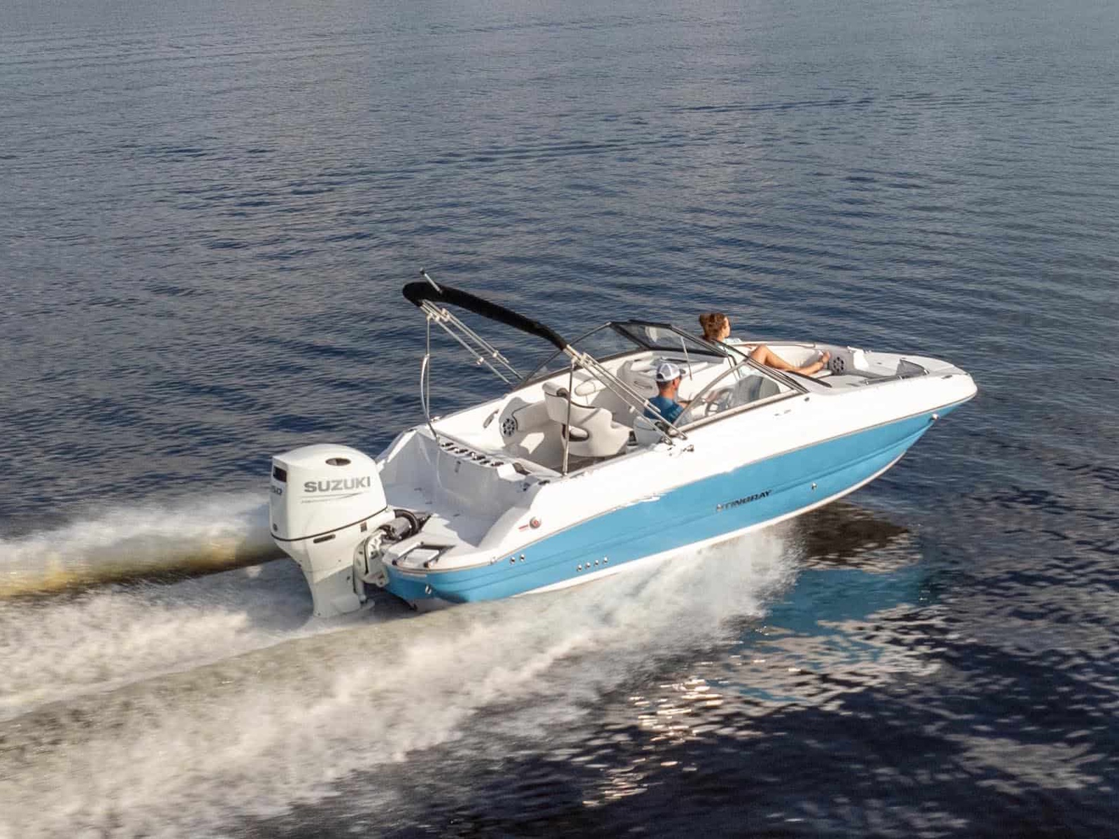 If you love the open feel of a deck boat, but like your boat to have a full windshield, you shouldn't have to choose. The 201DC Dual Console gives you all the interior room and storage space of our 192SC and the added full wrap-around windshield provides a nice shield from the wind while underway. This version gives you two sport bucket seats with bolsters. Deep cockpit and bow areas provide extra safety and security for your passengers. Behind the captain is a solid-surface countertop with a sink and faucet. A mix of dual console deck boat and traditional runabout seating works together to give you a roomy boat with seating for up to 10 passengers.