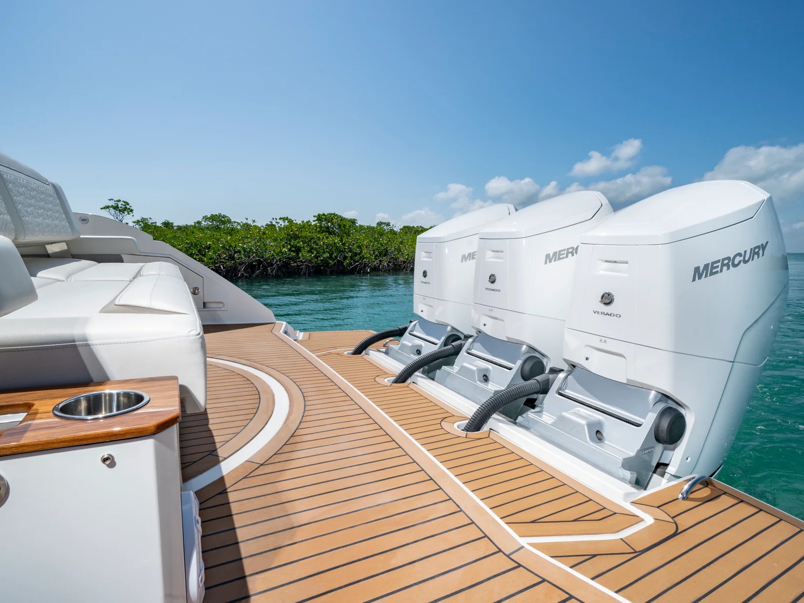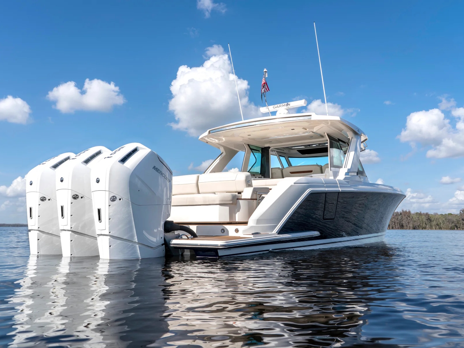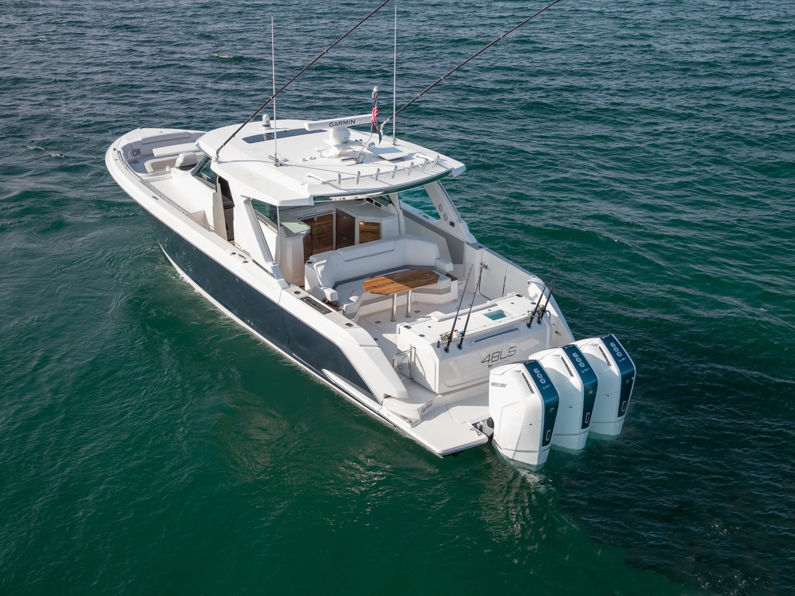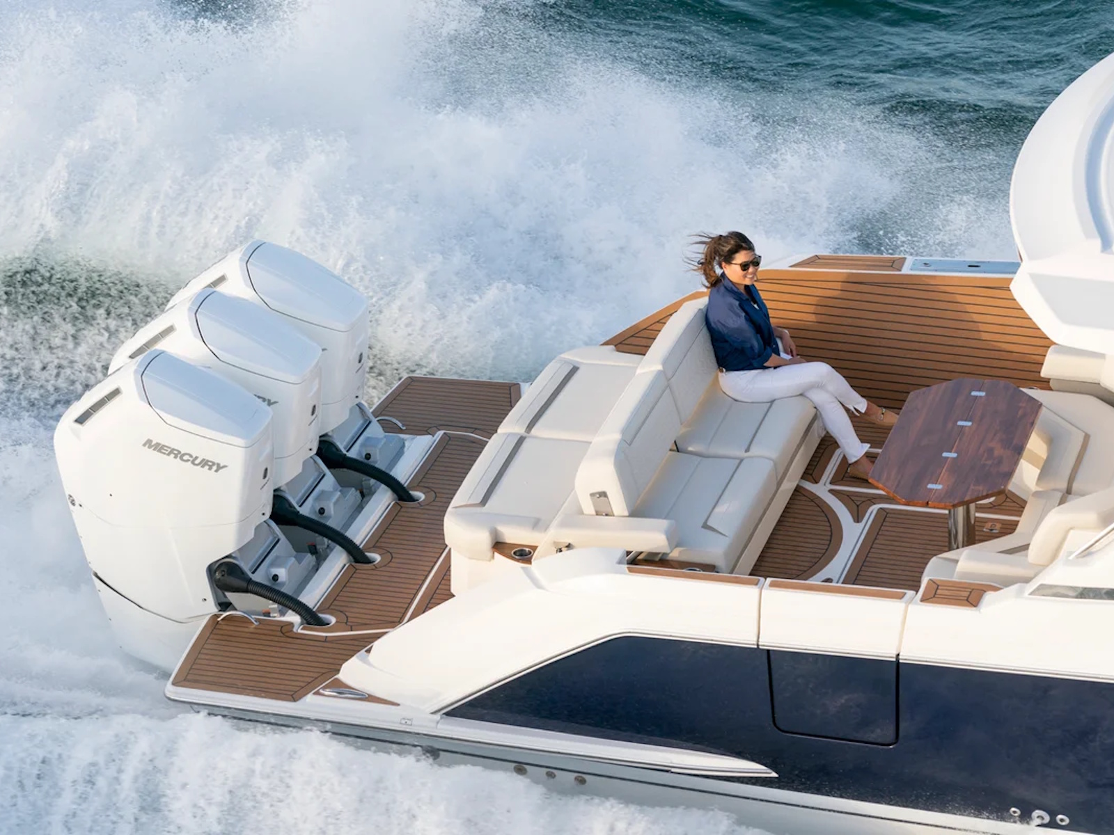 In partnership with Mercury, the 48 LS boasts the unwavering strength of the Verado® V12 600hp outboard engines. Combined with Tiara Yachts’ integrated electronics package and Garmin Marine navigation, the 600hp Verado® engines’ sophisticated, sound-dampening technology and innovative advancements in steering and control deliver the ultimate outboard-driving experience.