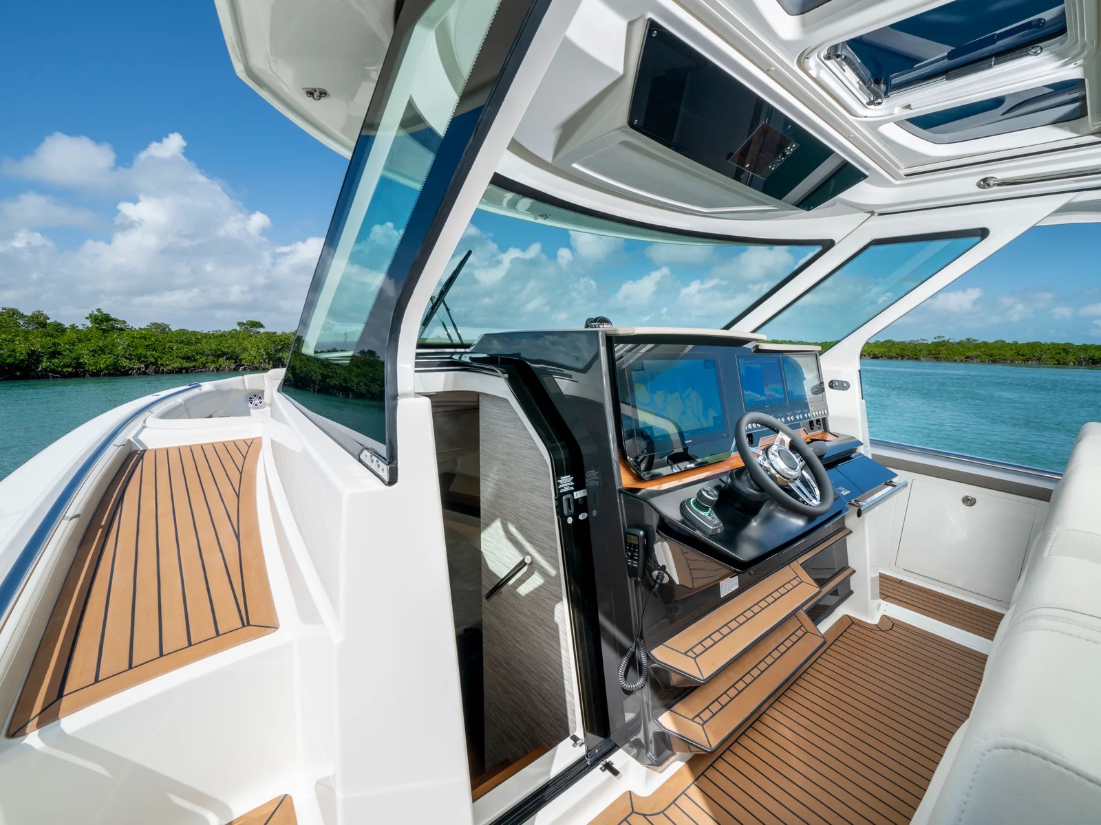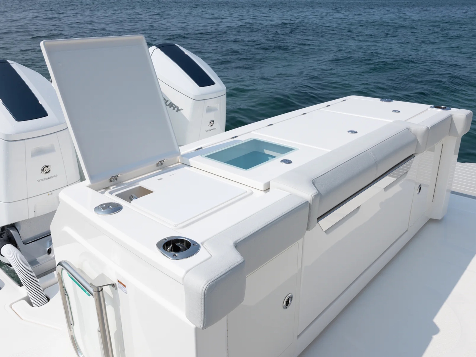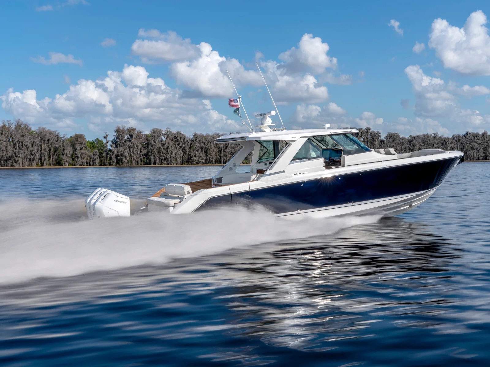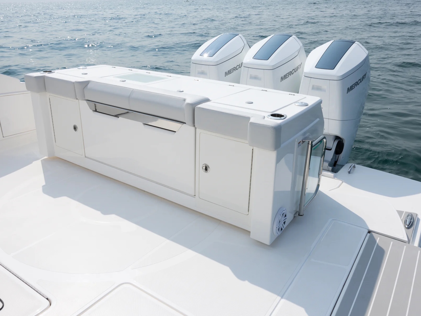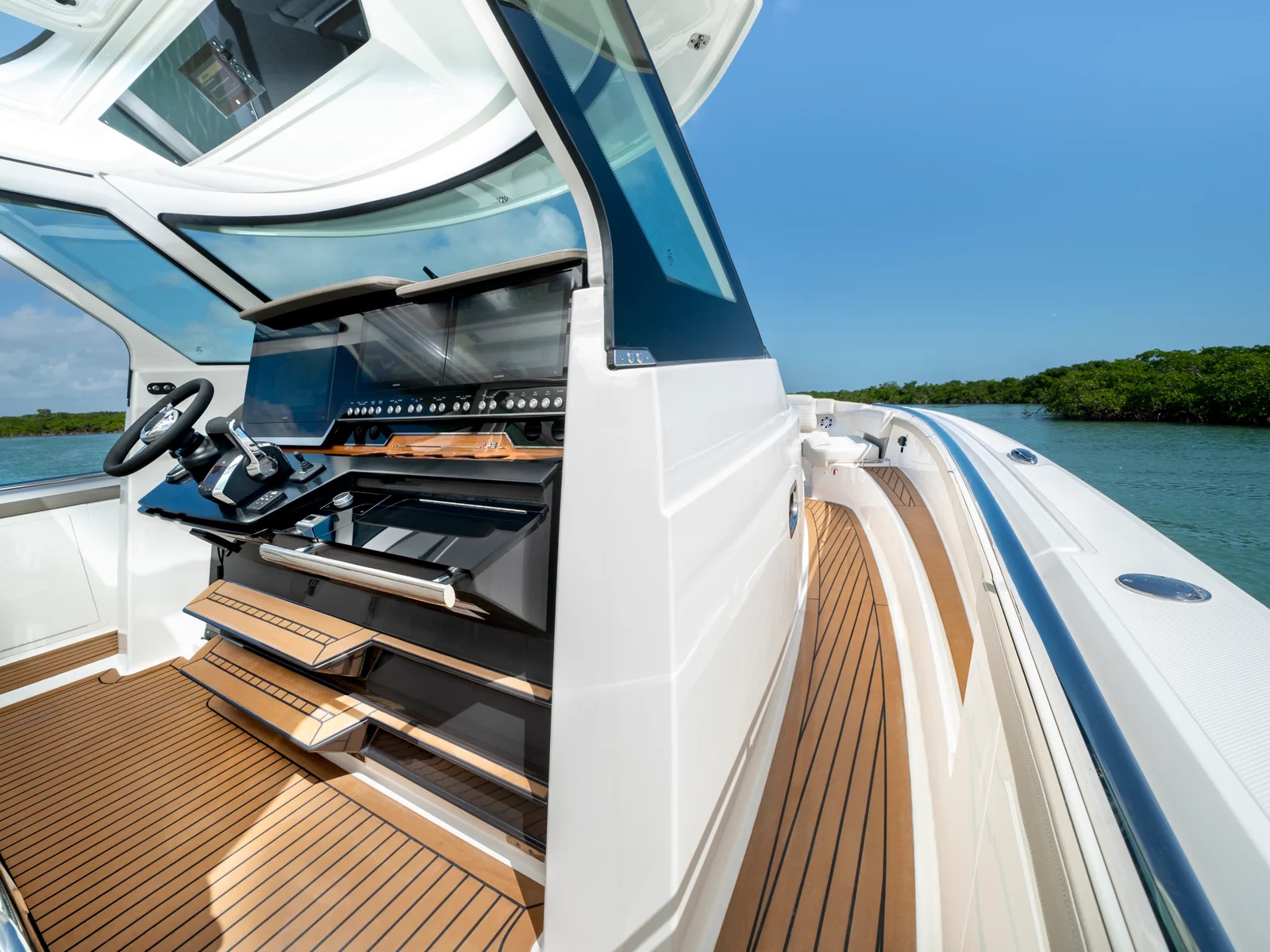 In partnership with Mercury, the 48 LS boasts the unwavering strength of the Verado® V12 600hp outboard engines. Combined with Tiara Yachts’ integrated electronics package and Garmin Marine navigation, the 600hp Verado® engines’ sophisticated, sound-dampening technology and innovative advancements in steering and control deliver the ultimate outboard-driving experience.